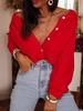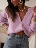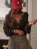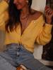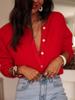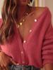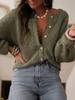 Cárdigan de Punto Afelpado de Color Sólido Retro Estilo Francés, Corto con Cuello en V, Holgado de Hombro Caído, Abotonado, Chaqueta Suéter Versátil de Moda