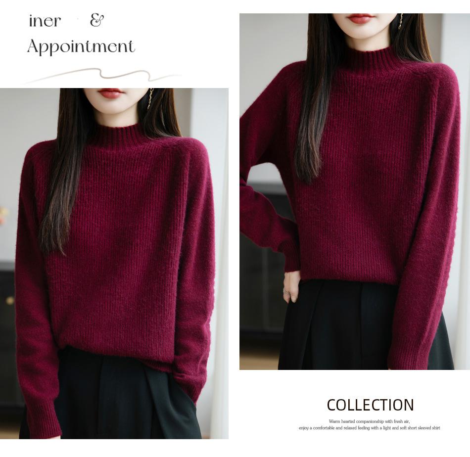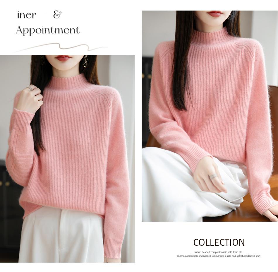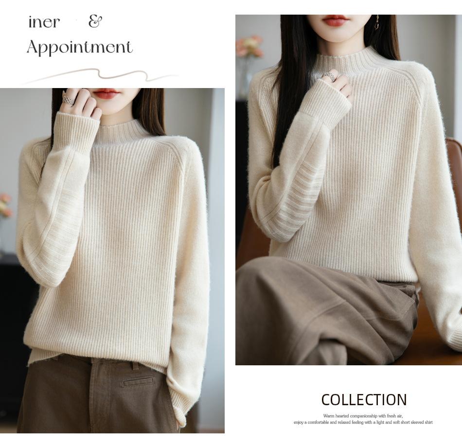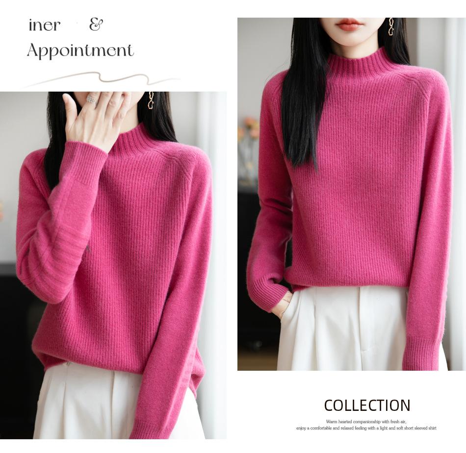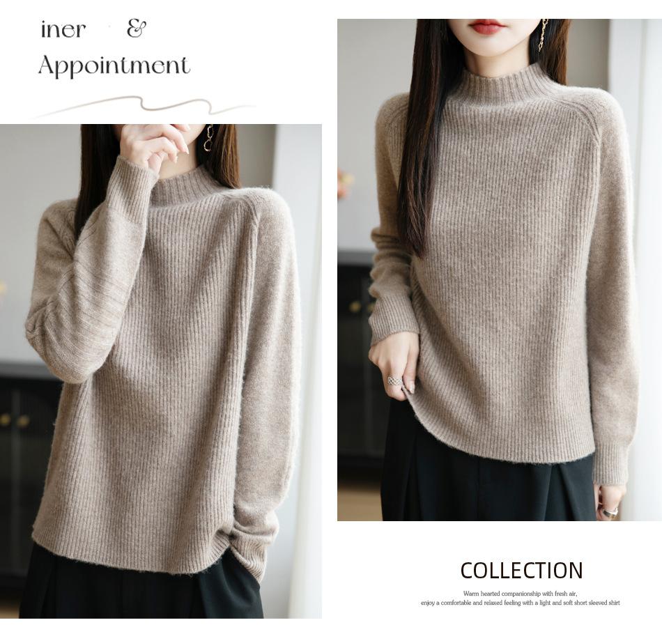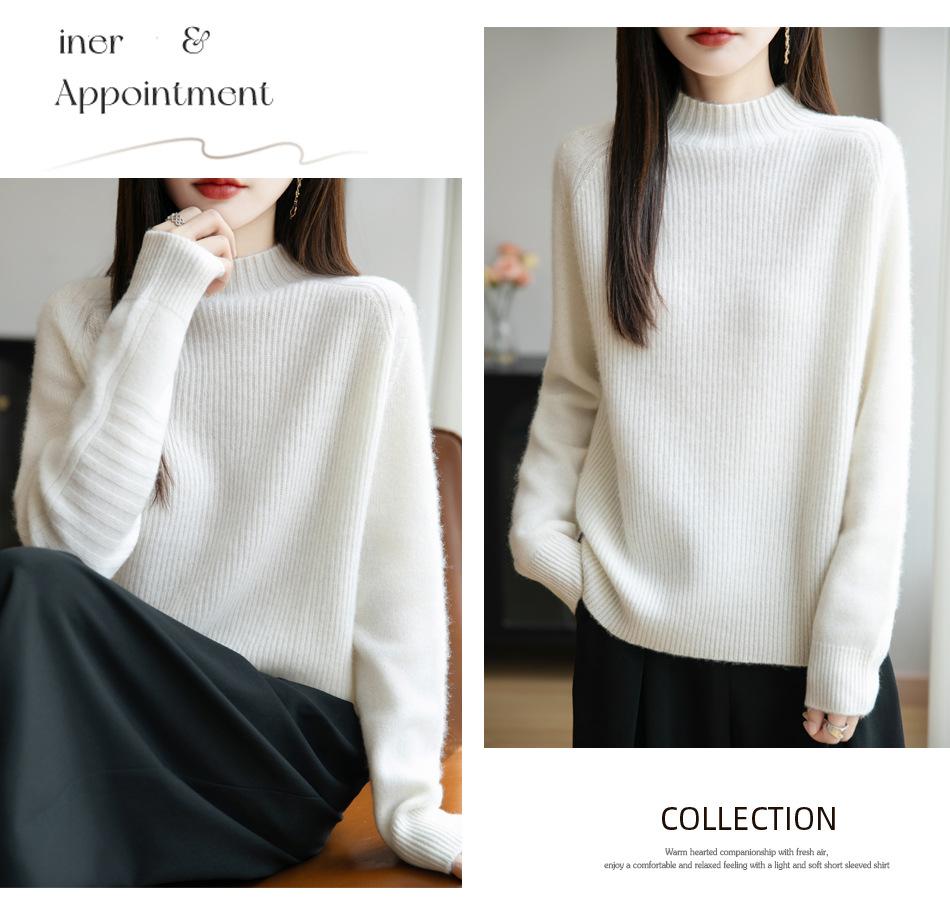 Suéter de punto nuevo de otoño e invierno con cuello medio alto transfronterizo, ropa interior para mujer suelta y cómoda, moda de punto, camisa base de invierno