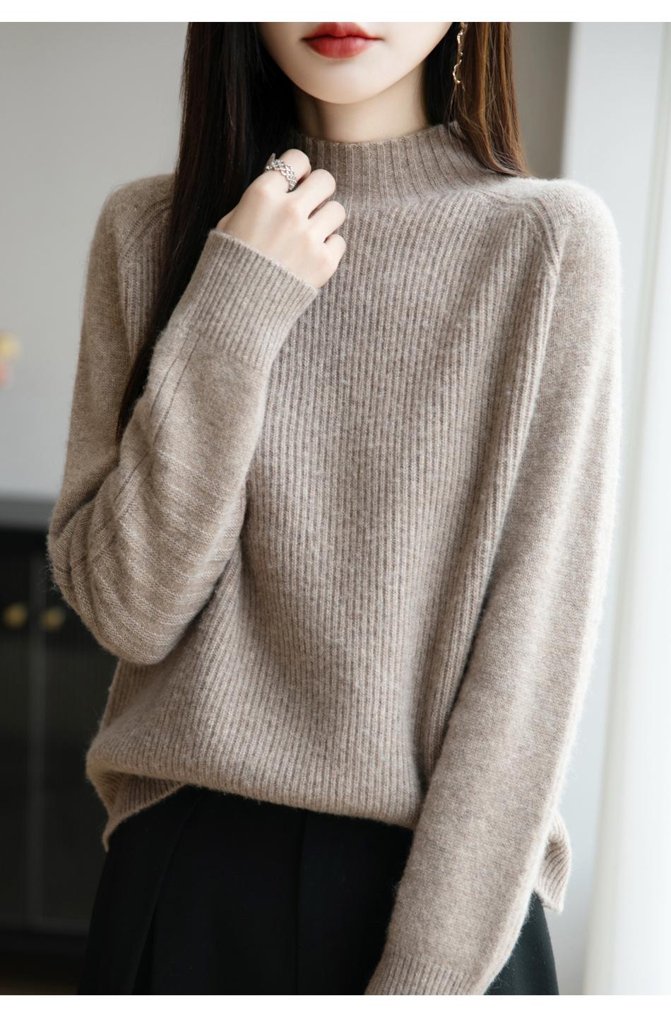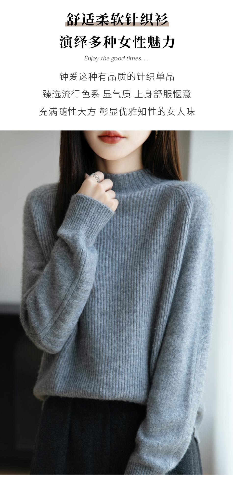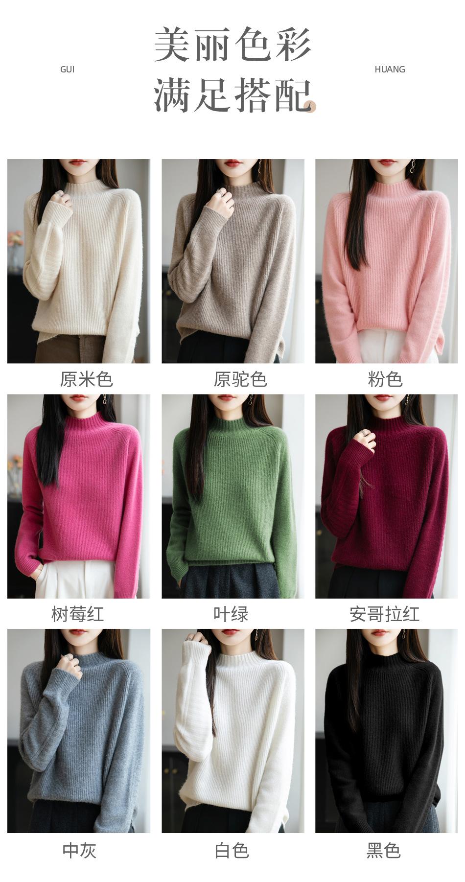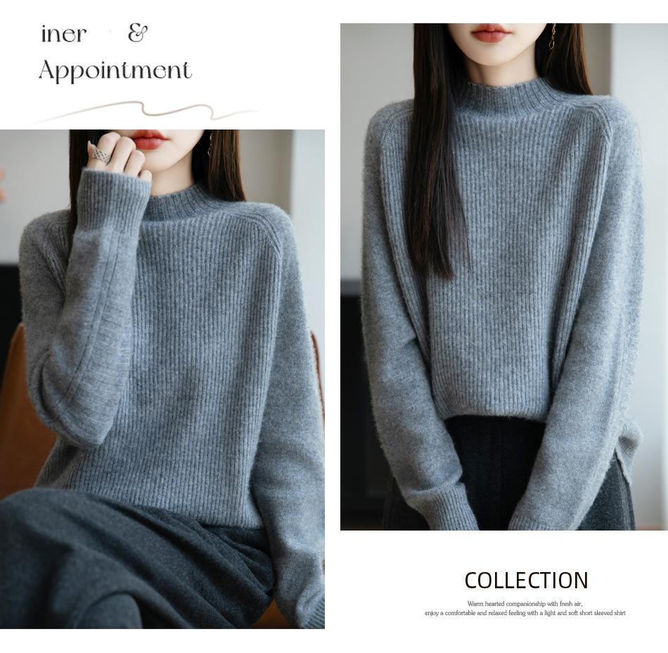 Suéter de punto nuevo de otoño e invierno con cuello medio alto transfronterizo, ropa interior para mujer suelta y cómoda, moda de punto, camisa base de invierno