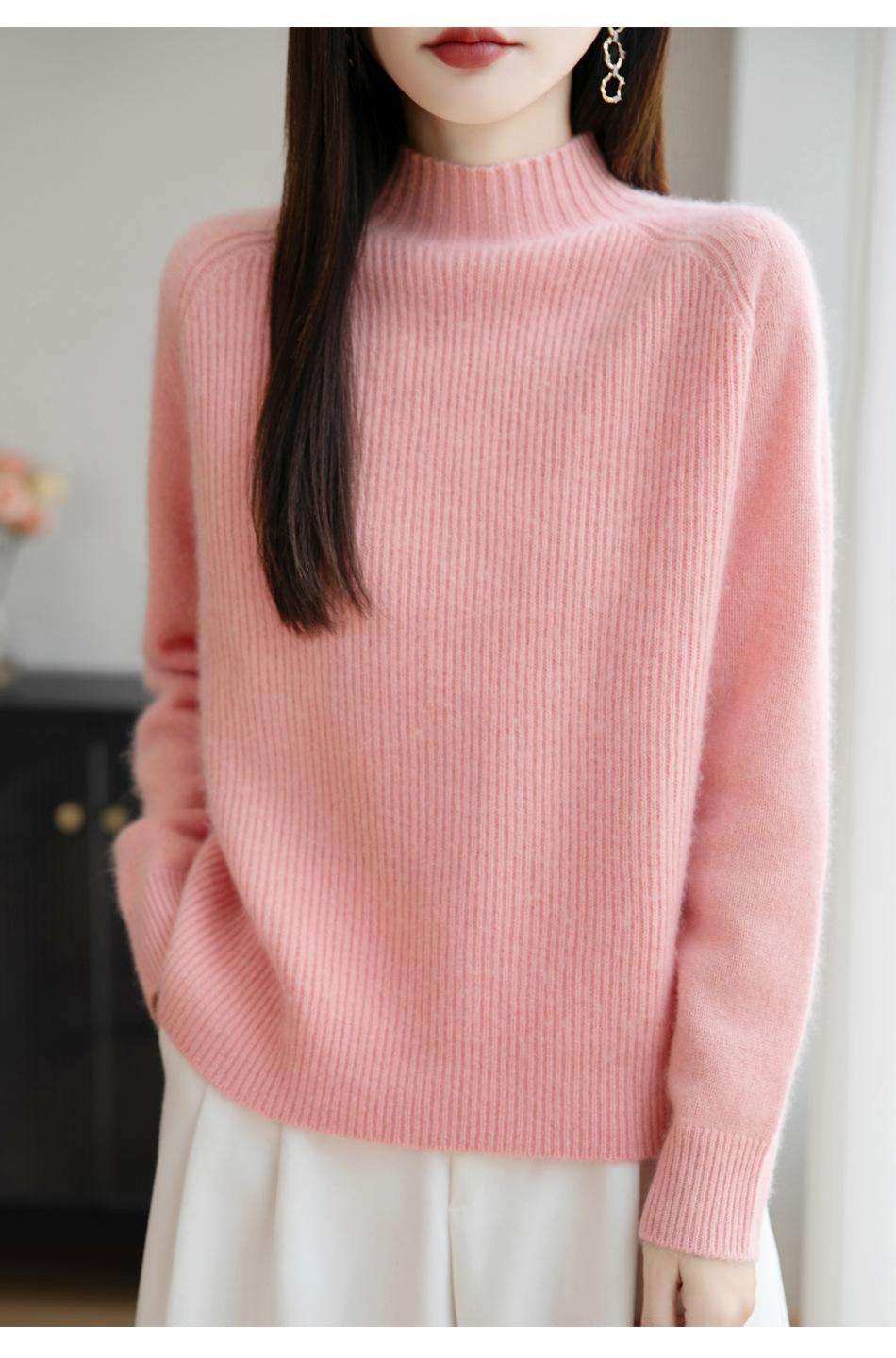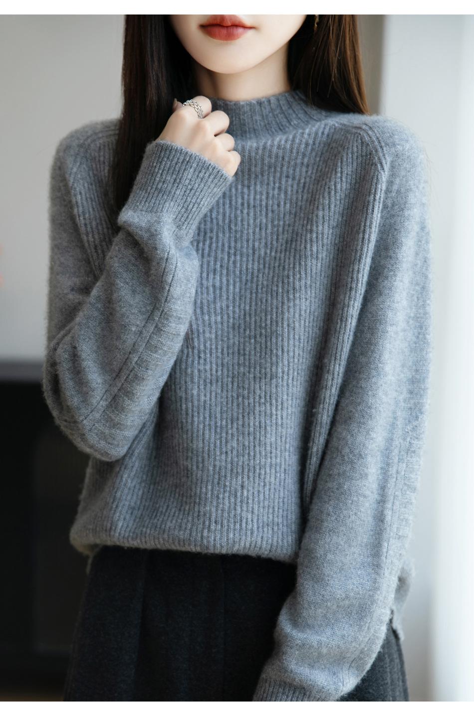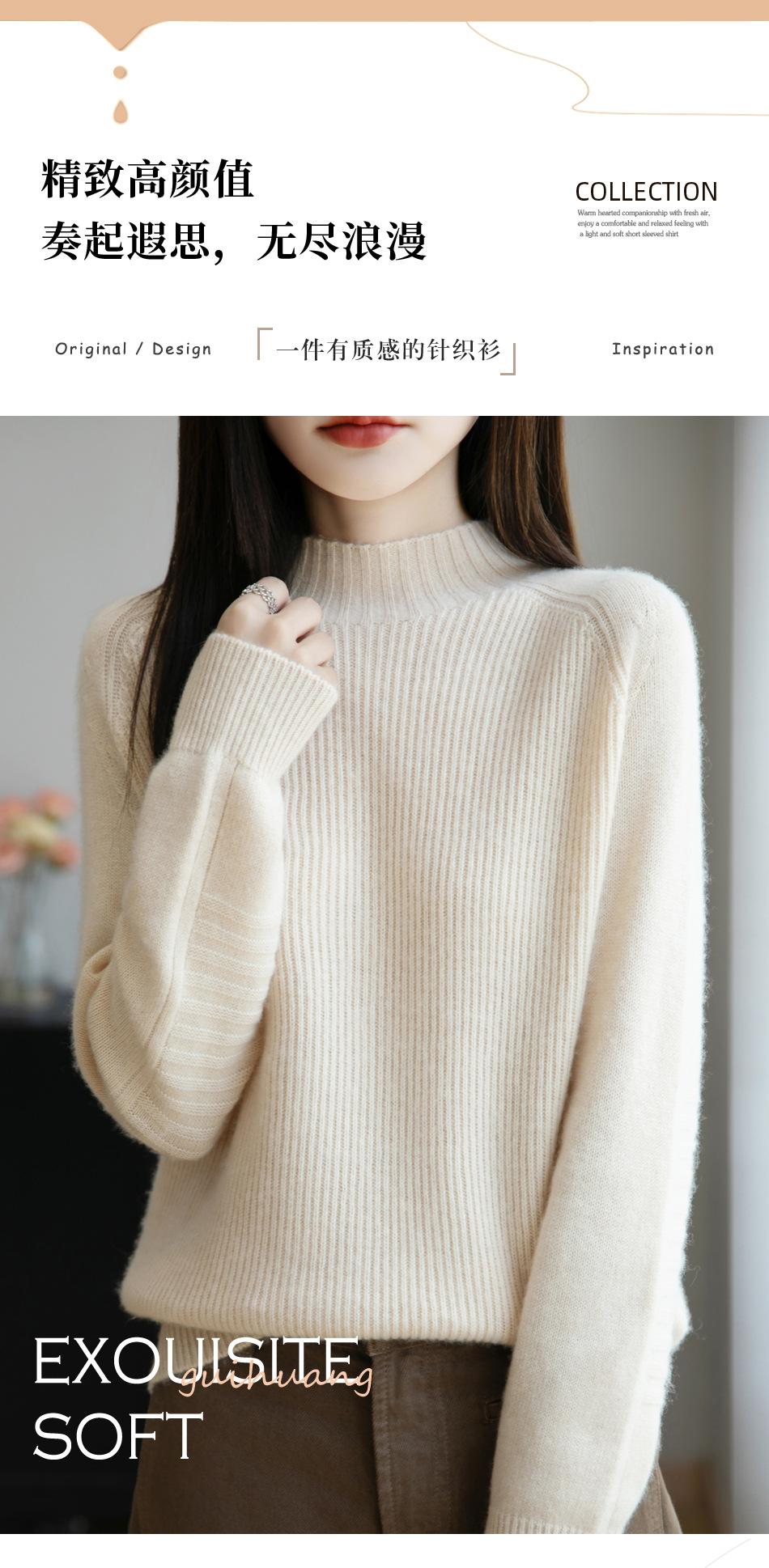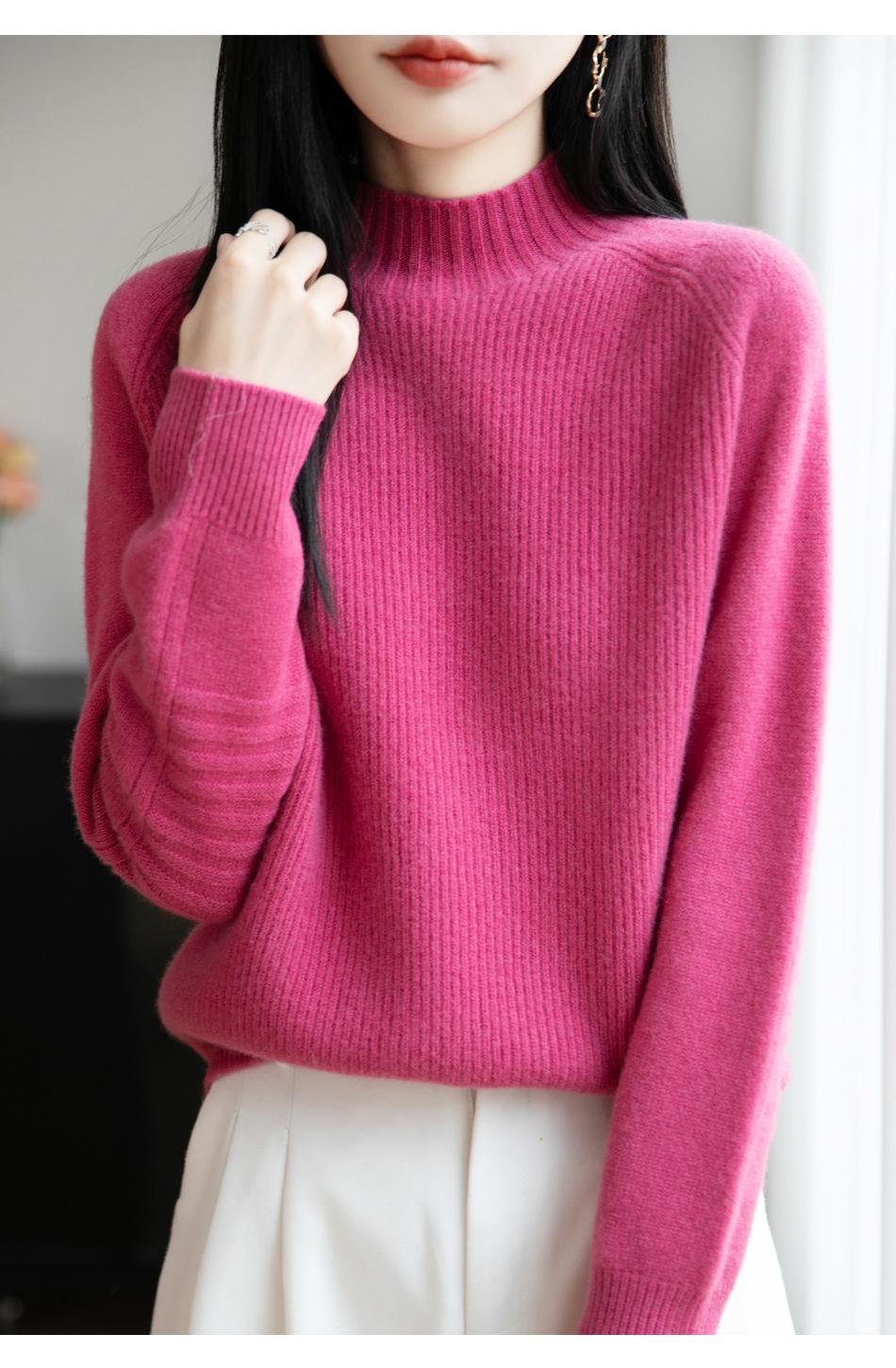 Suéter de punto nuevo de otoño e invierno con cuello medio alto transfronterizo, ropa interior para mujer suelta y cómoda, moda de punto, camisa base de invierno