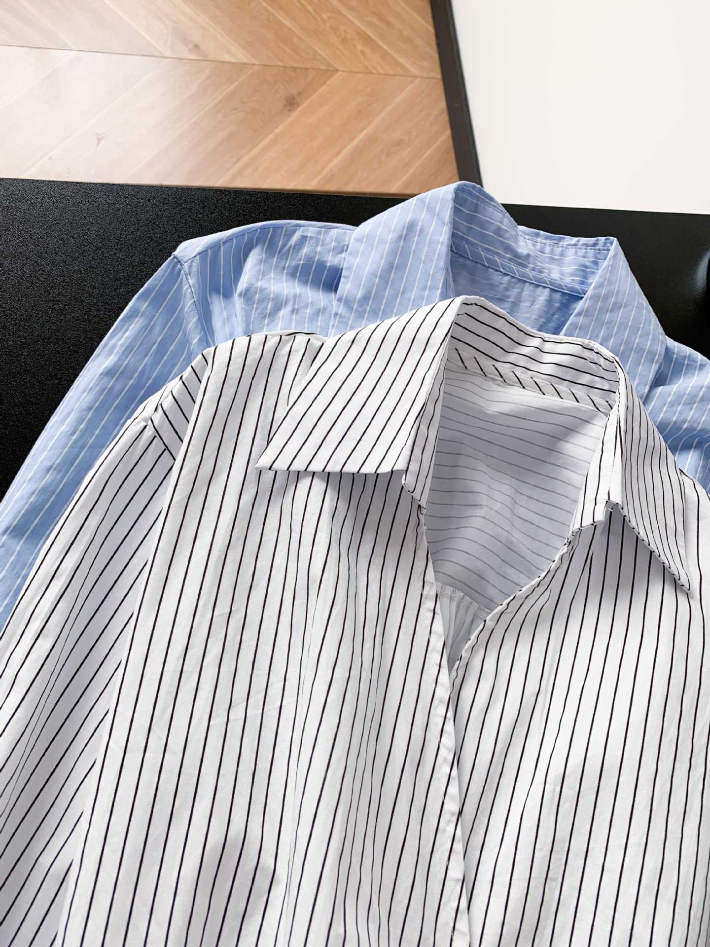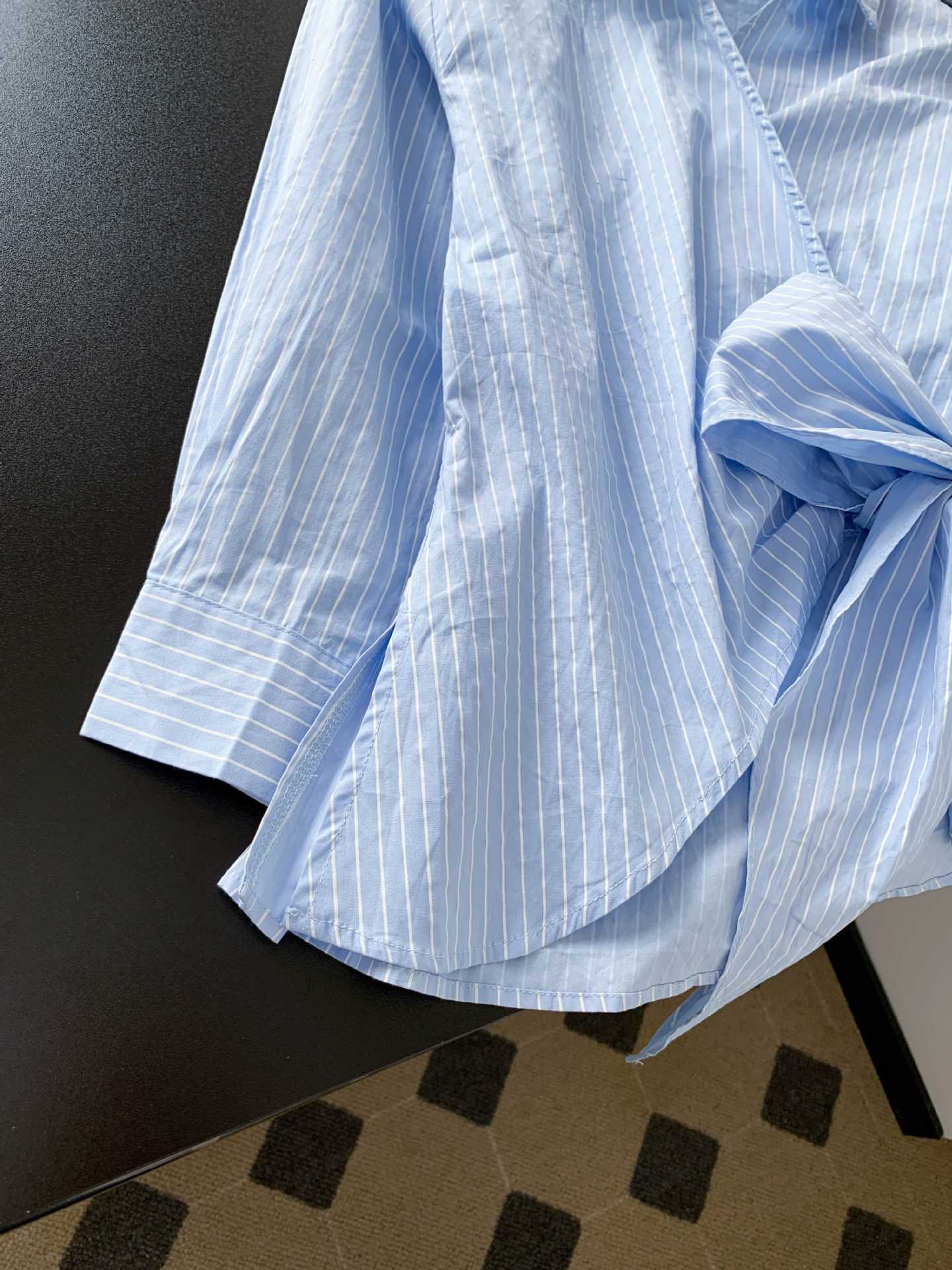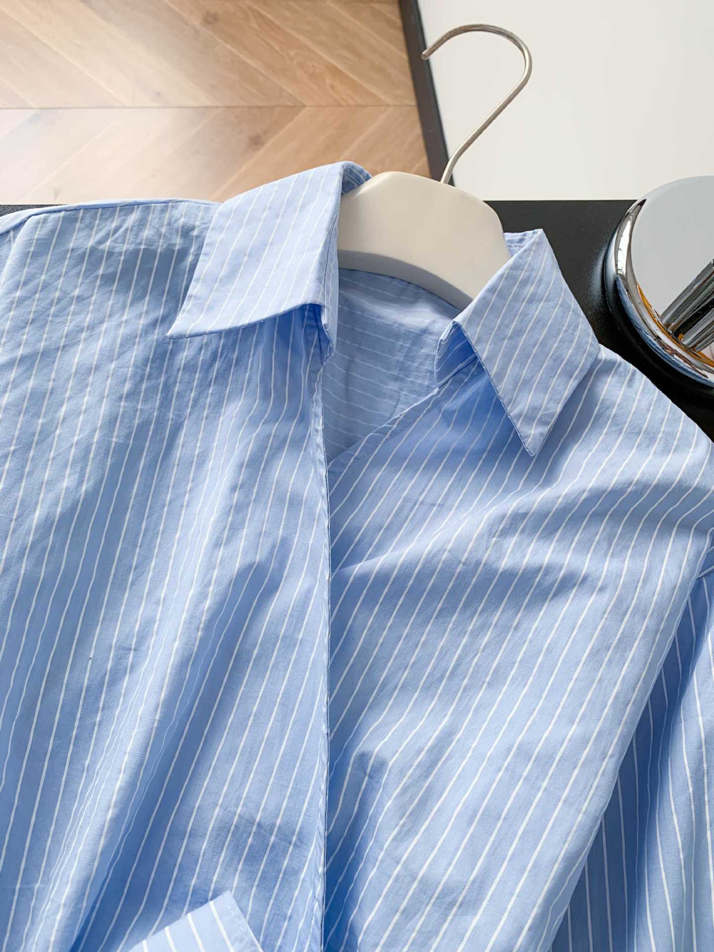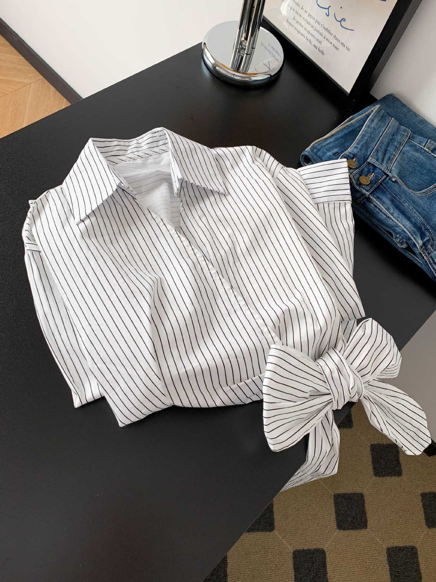 Guangzhou Shisanhang estilo caliente de alta calidad~Camisa cruzada con cordones para mujer otoño 2025 nueva camisa de dama a rayas entallada