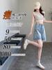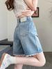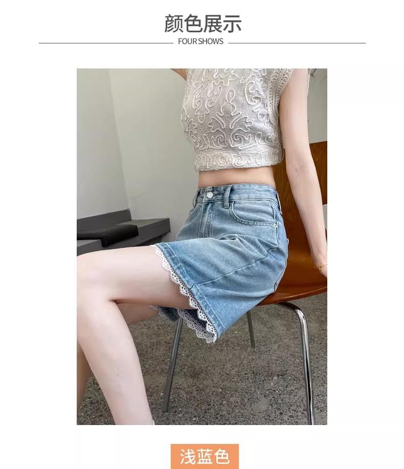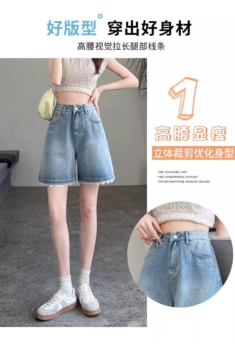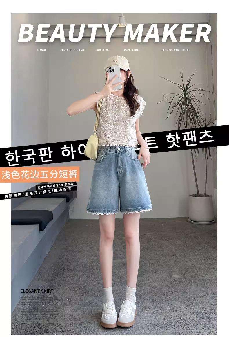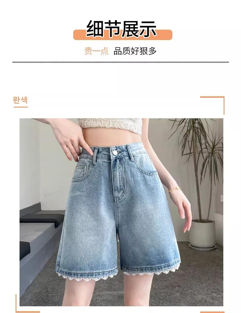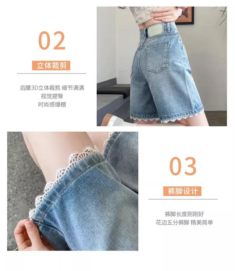 Jeans Retro de Talla Grande para Mujer 2025 Nuevo Verano Borde de Encaje Pantalones Cinco Puntos mm Gordita Aspecto Adelgazante Shorts de Pierna Ancha