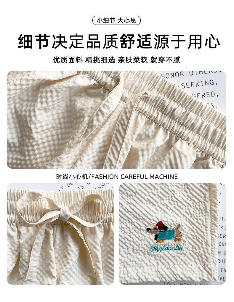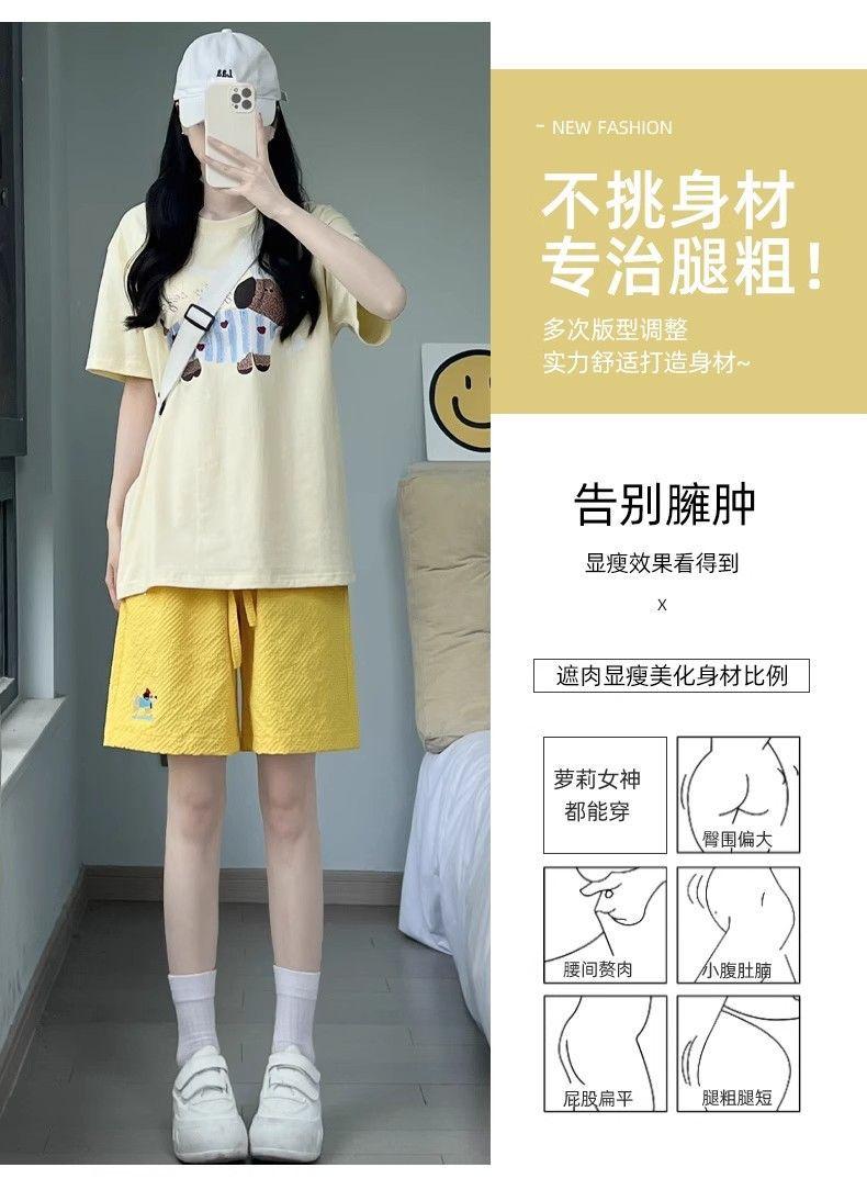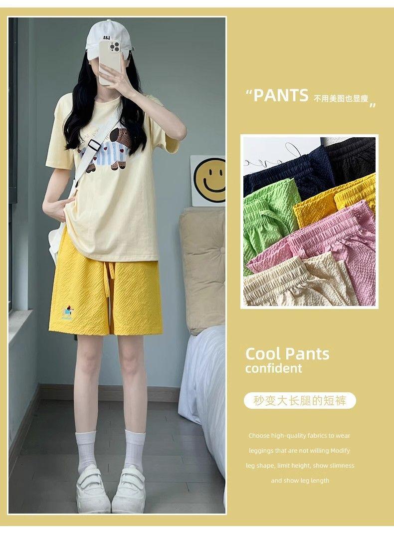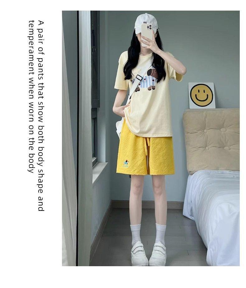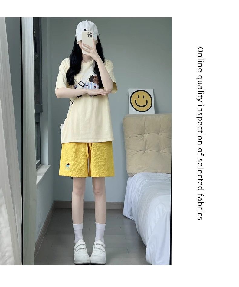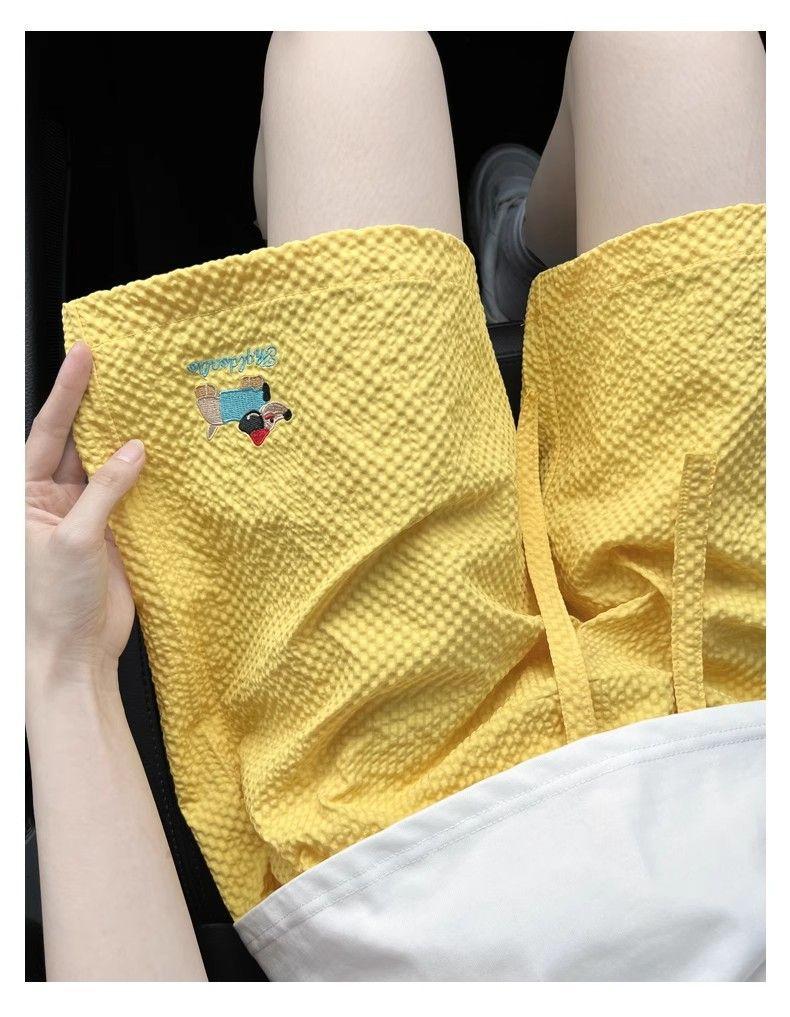 Shorts Amarillos Bordados de Cachorro para Mujer Verano Gasa Fina Secado Rápido Pantalones de Playa Holgados Adelgazantes Deportivos Pantalones Cinco Puntos