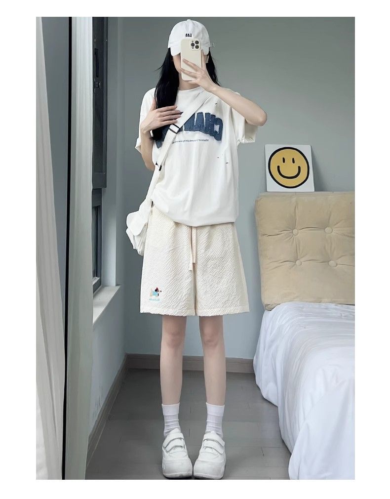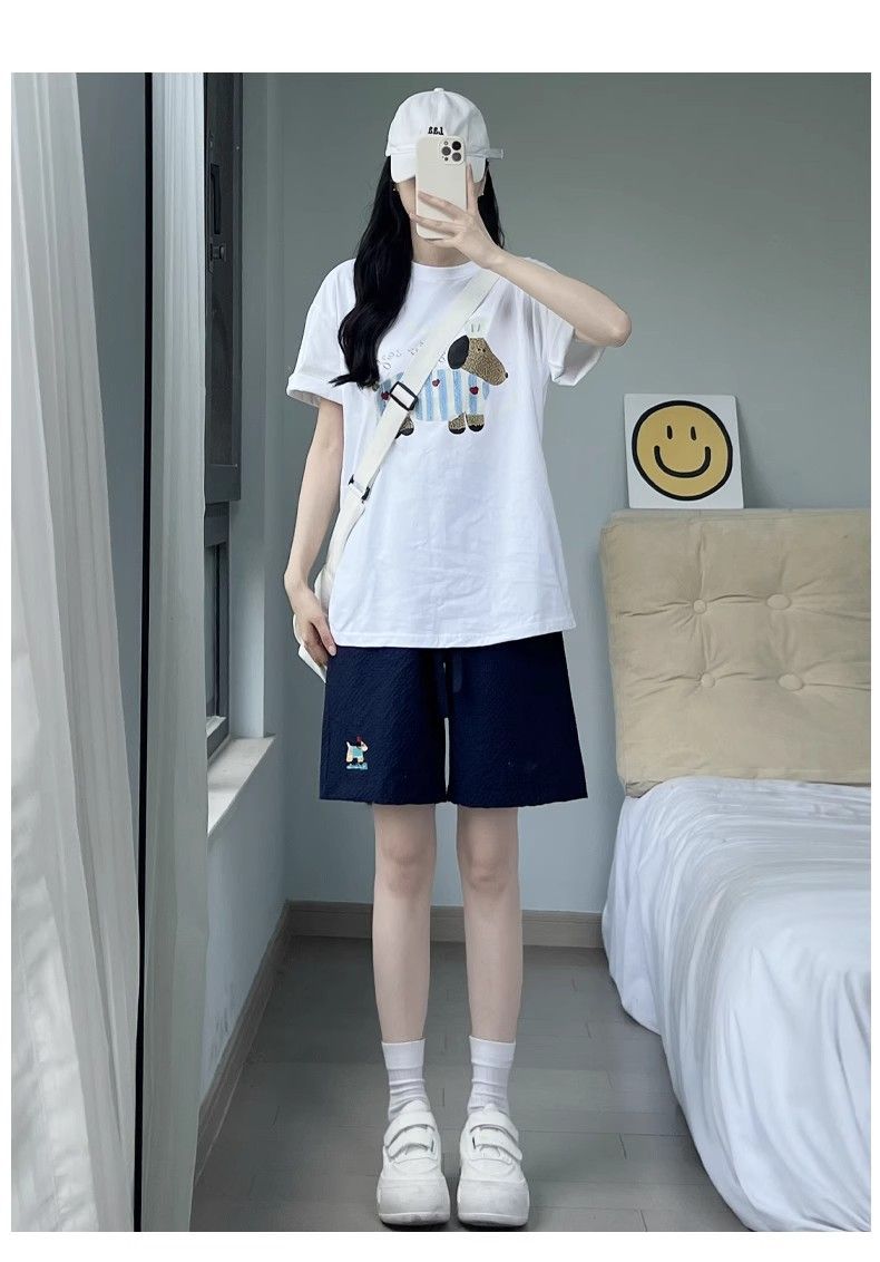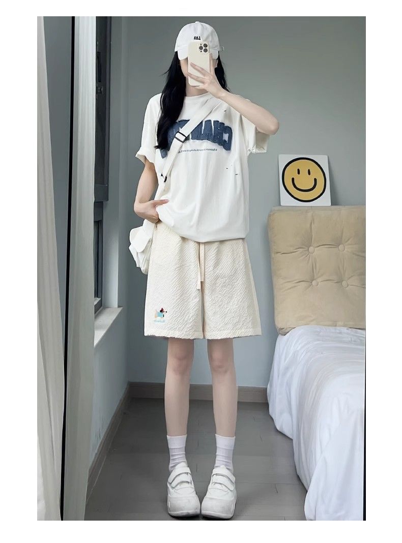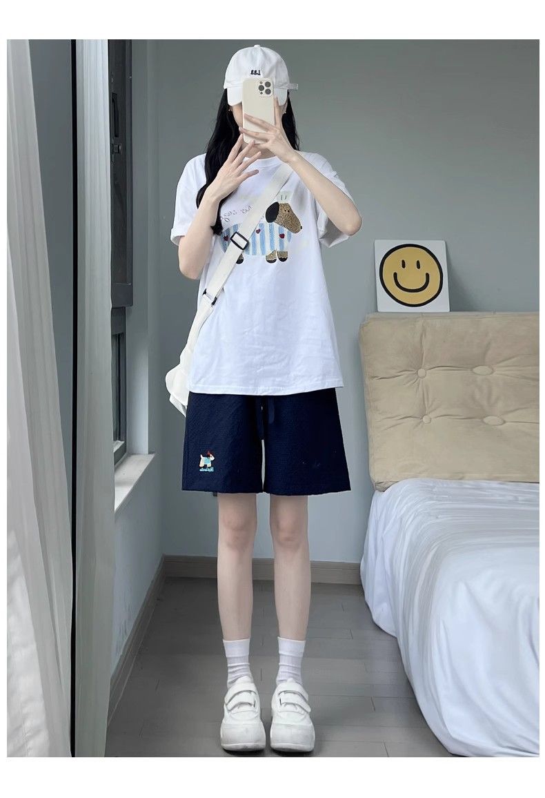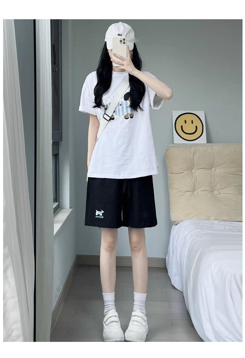 Shorts Amarillos Bordados de Cachorro para Mujer Verano Gasa Fina Secado Rápido Pantalones de Playa Holgados Adelgazantes Deportivos Pantalones Cinco Puntos