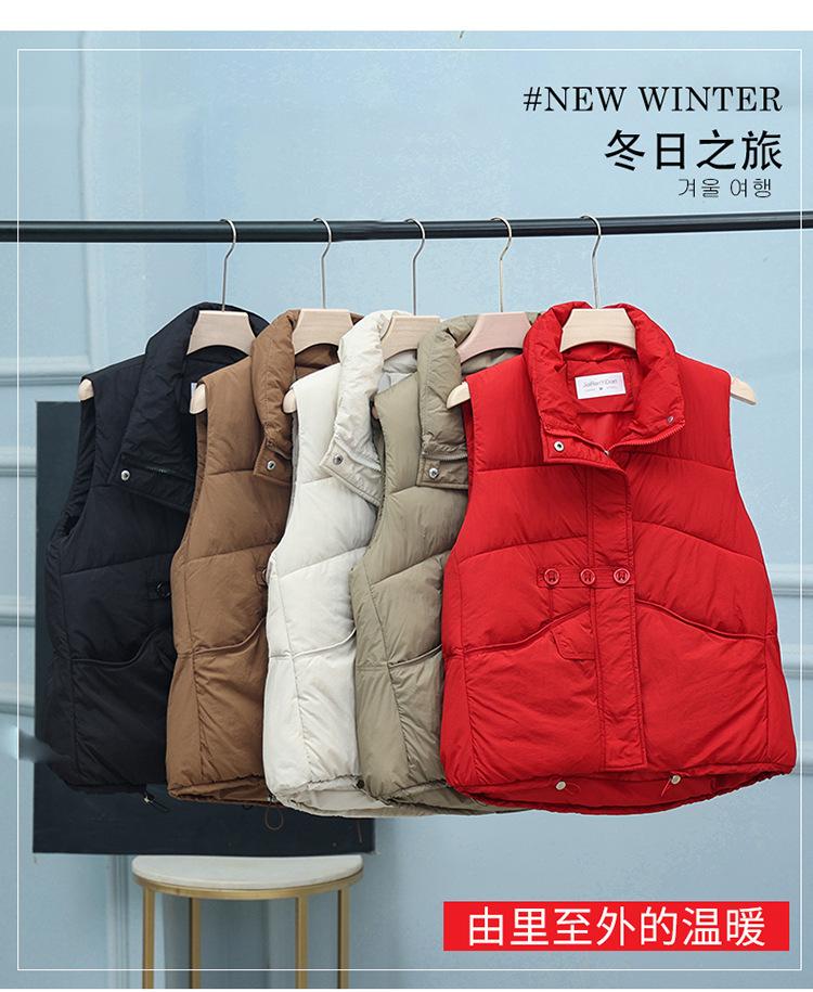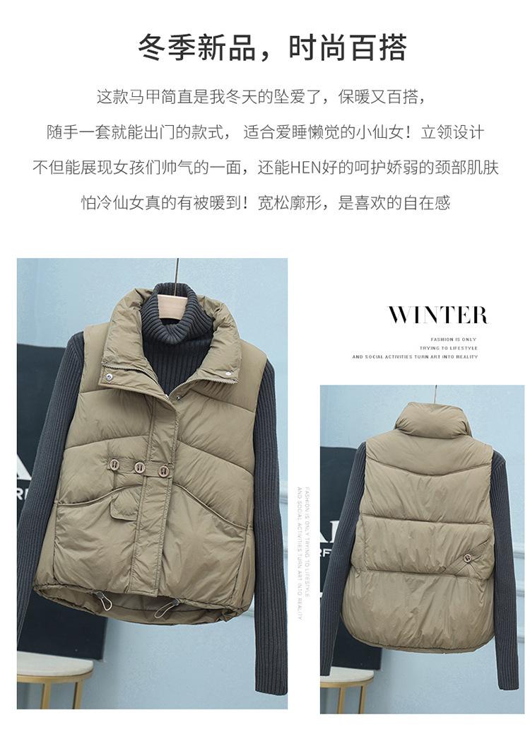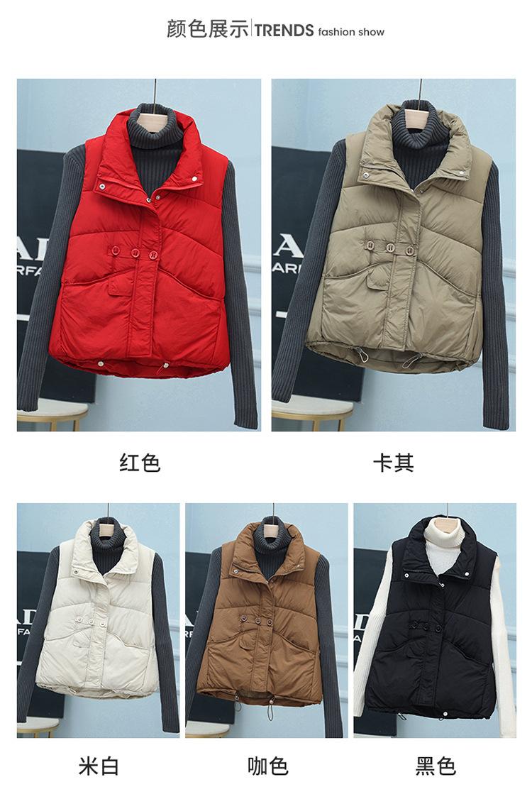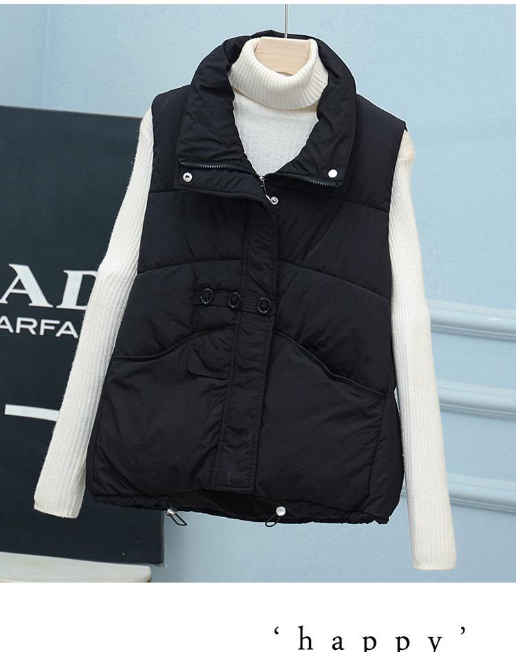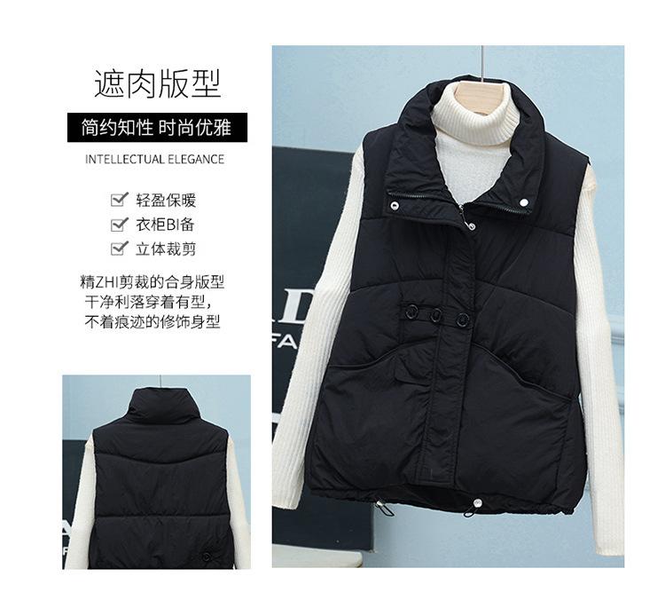 Chaleco de algodón de tres botones para mujer 2024 nuevo estilo coreano cuello alto moda versátil chaleco de algodón abrigo de algodón suelto