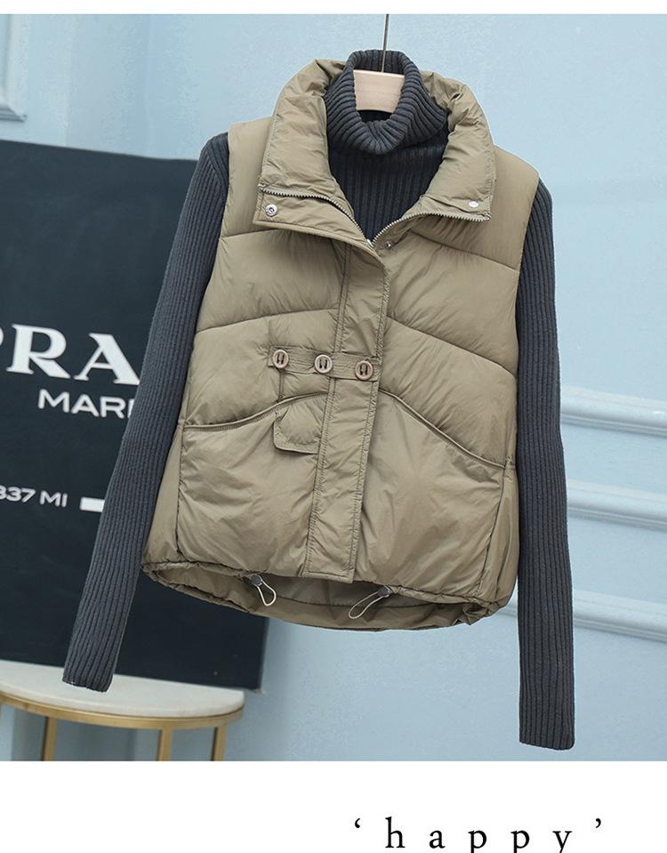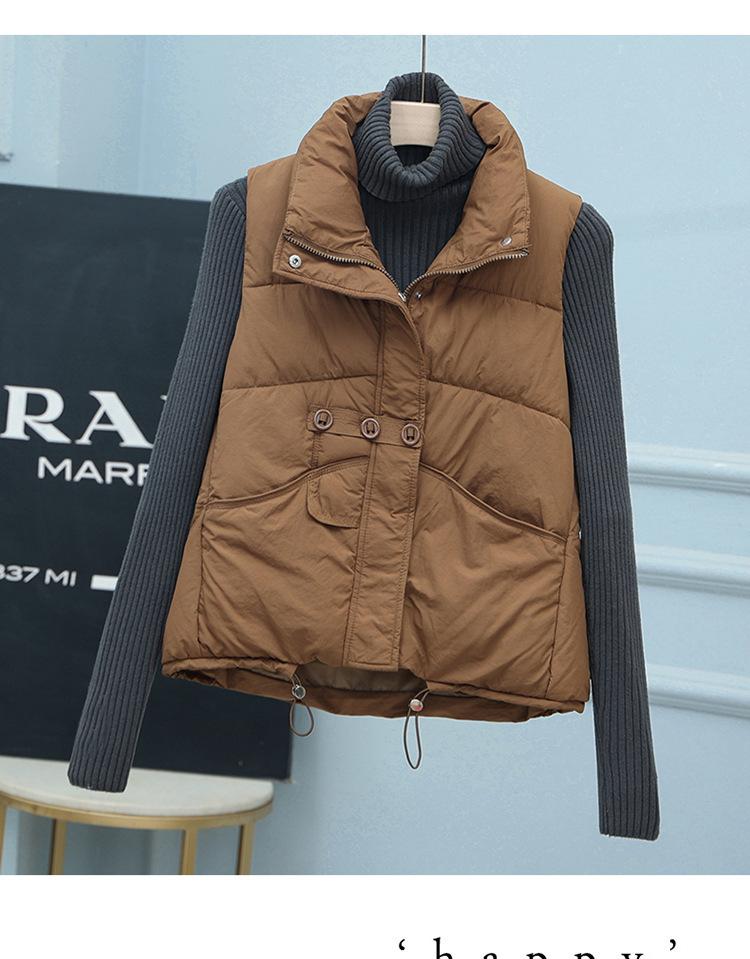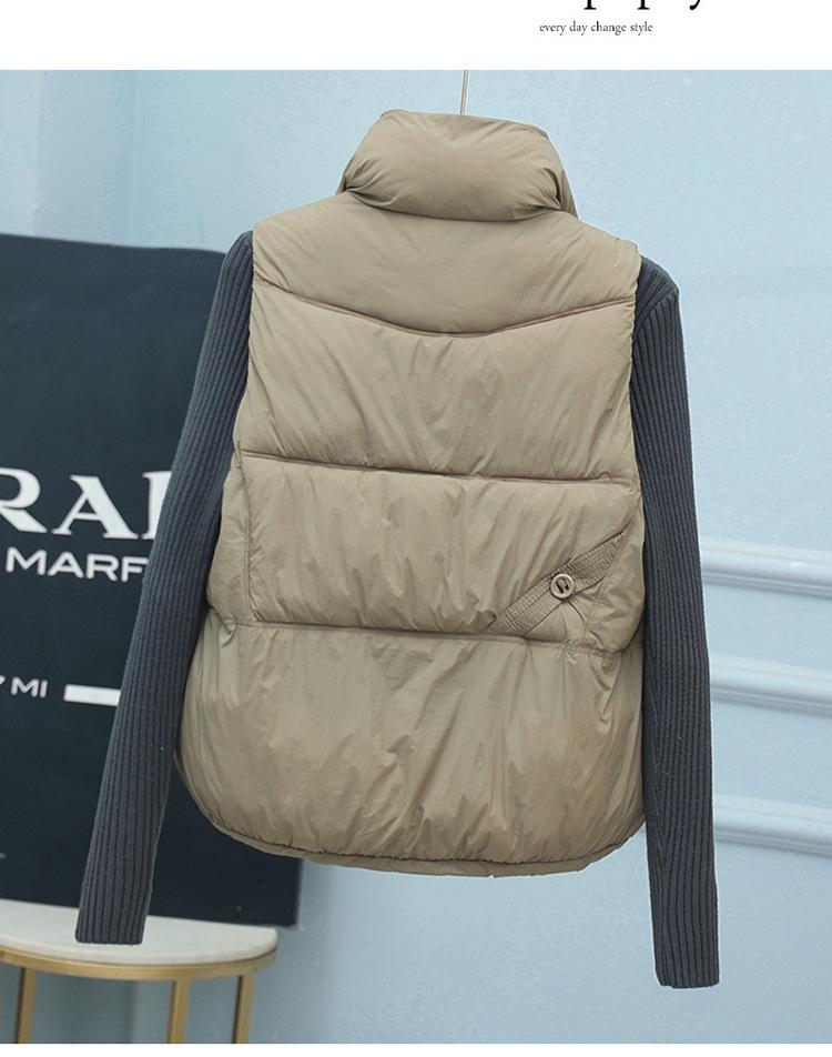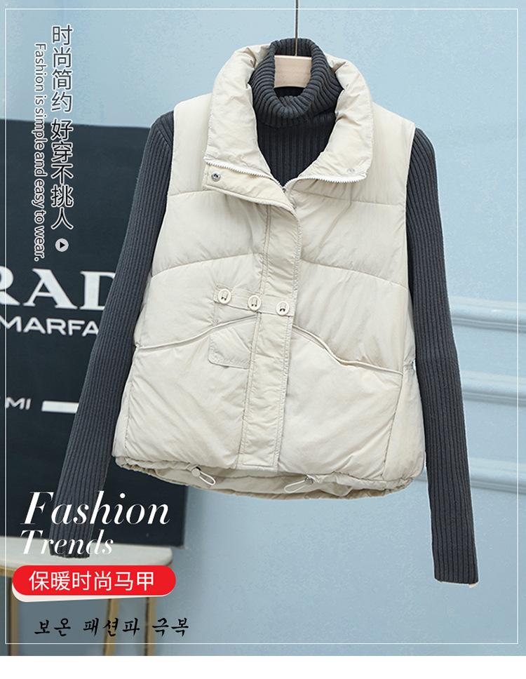 Chaleco de algodón de tres botones para mujer 2024 nuevo estilo coreano cuello alto moda versátil chaleco de algodón abrigo de algodón suelto