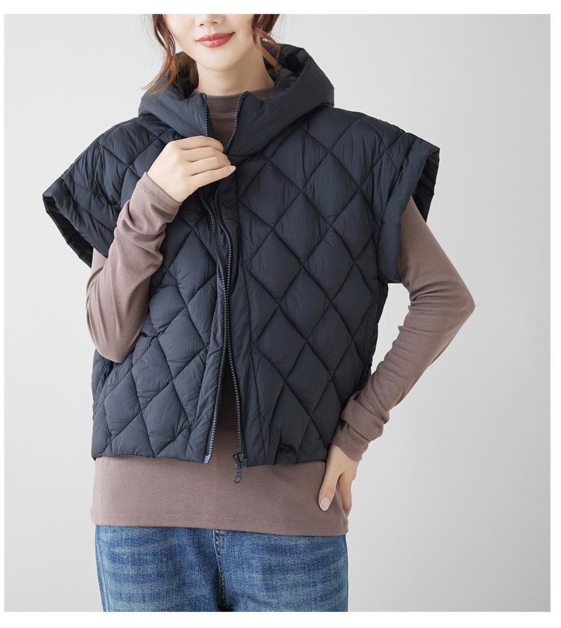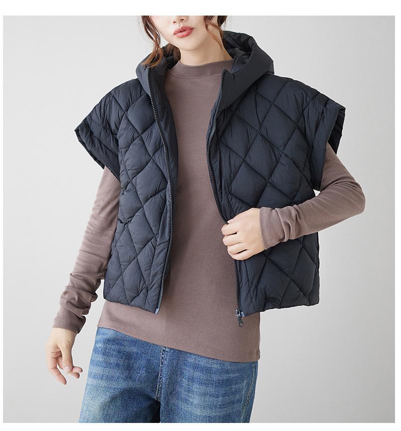 Chaleco de Plumón de Pato Blanco 90 de Alta Gama para Ropa Exterior de Mujer 2025 Otoño e Invierno Chaleco Acolchado con Capucha y Manga Murciélago a la Moda
