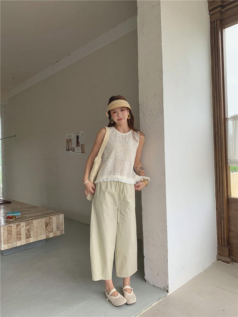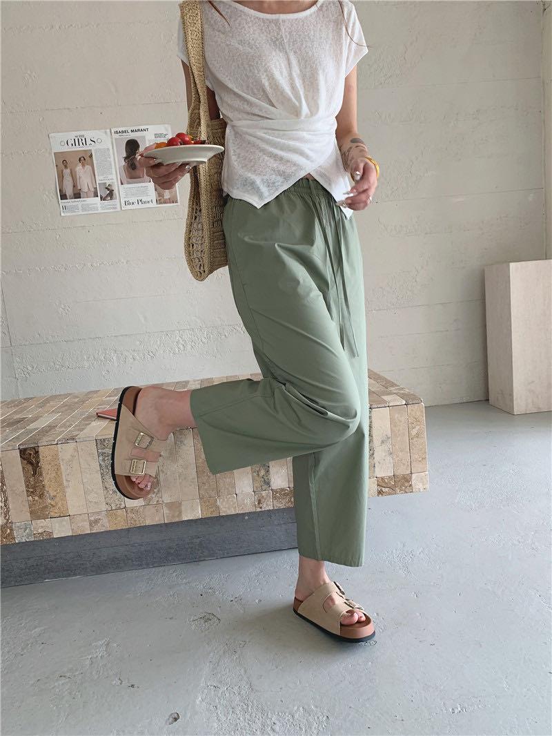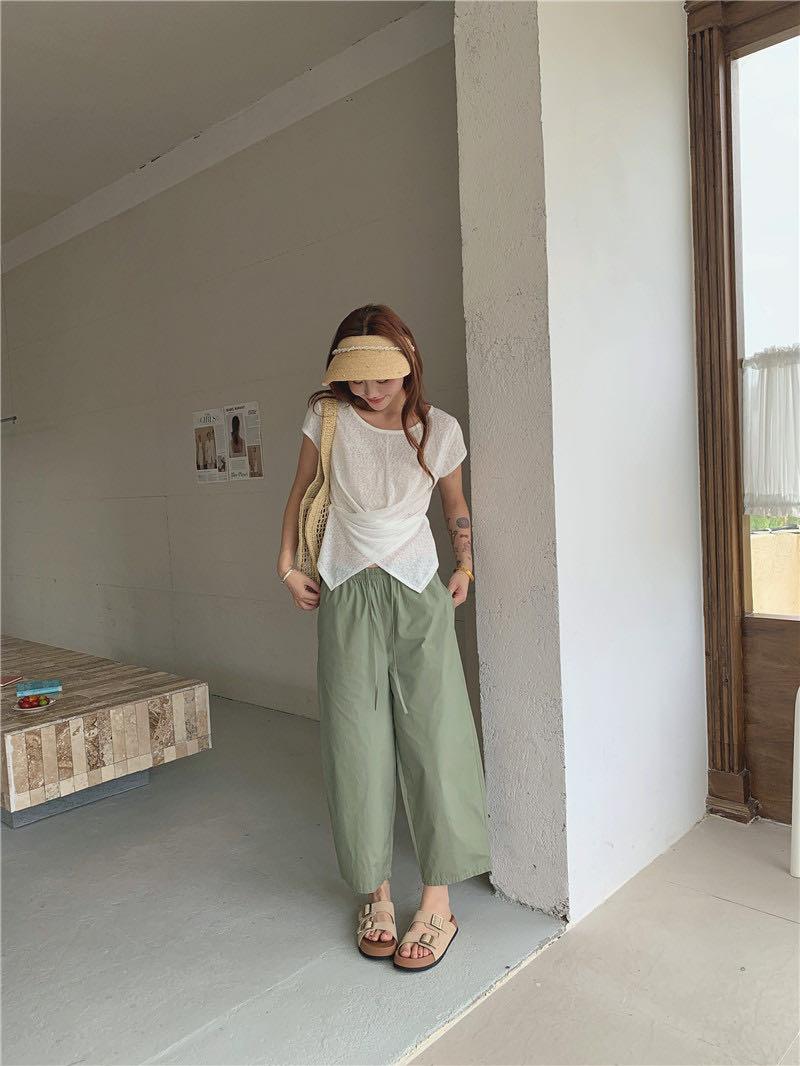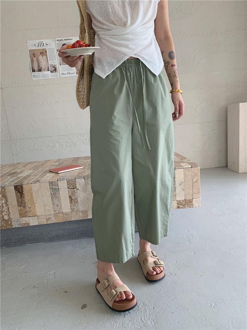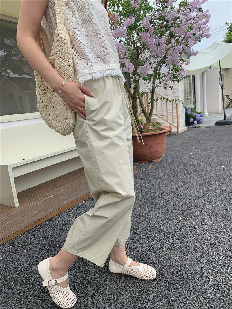 Verano 2025 Nuevo Moda Coreana Versátil Cintura Elástica Cordón Pantalones Rectos Pantalones Casuales Holgados Adelgazantes para Mujer