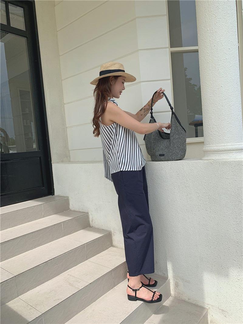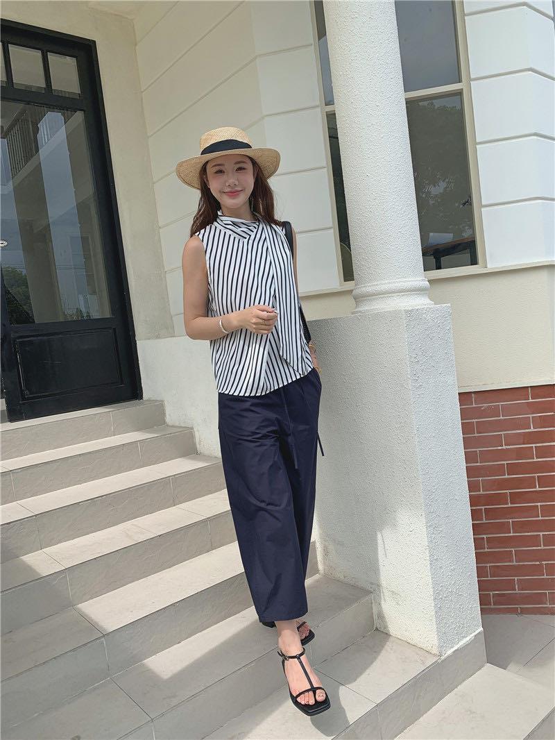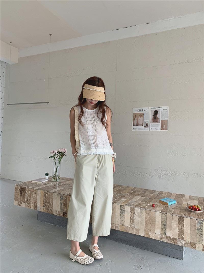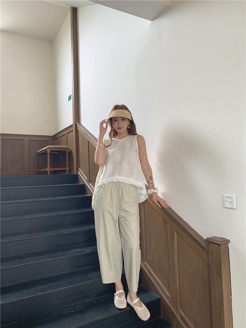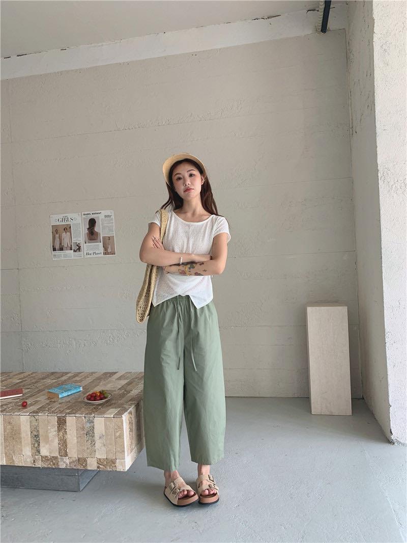Verano 2025 Nuevo Moda Coreana Versátil Cintura Elástica Cordón Pantalones Rectos Pantalones Casuales Holgados Adelgazantes para Mujer