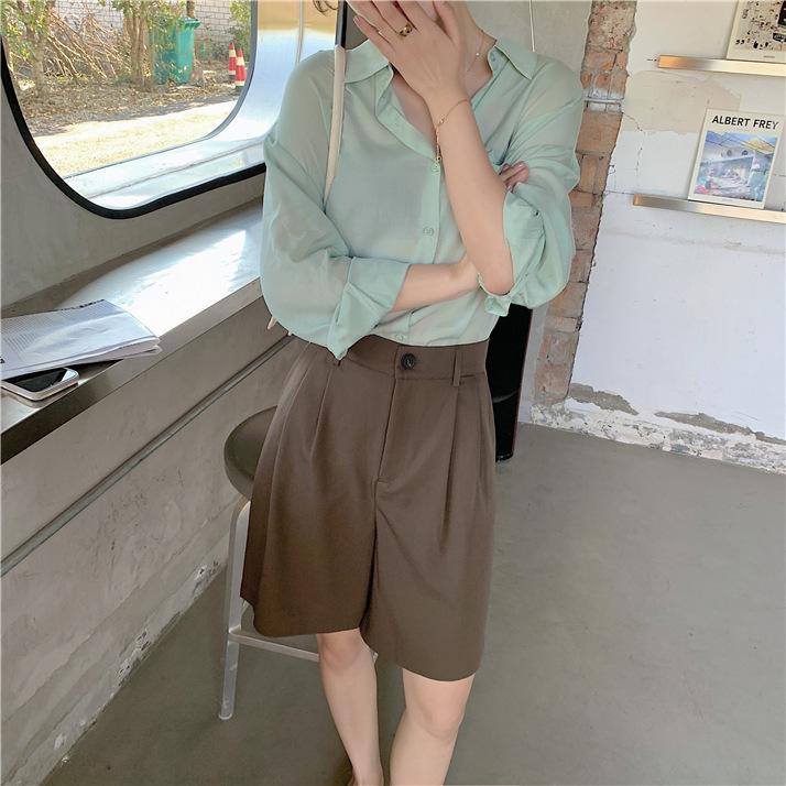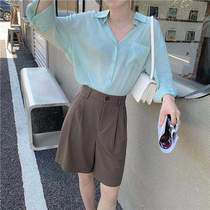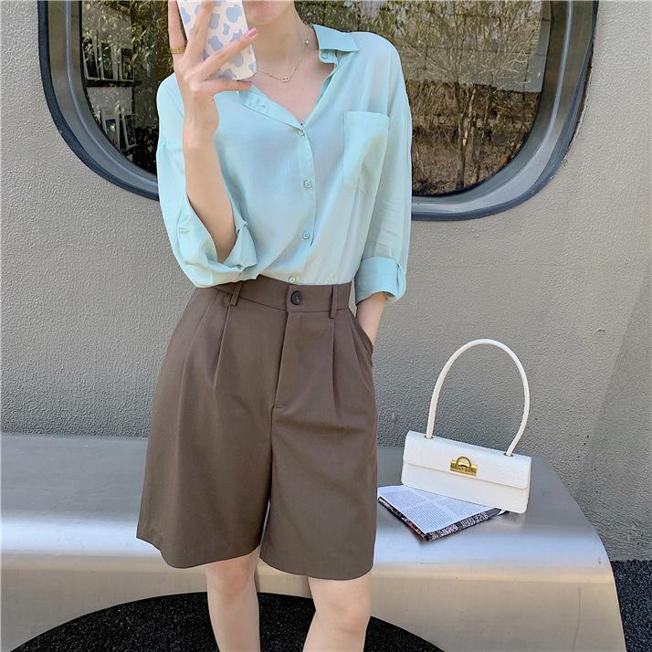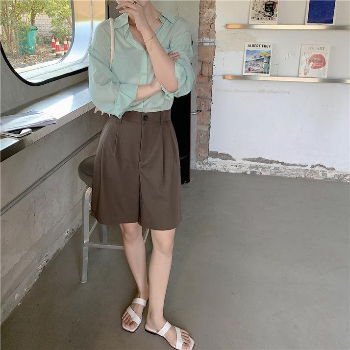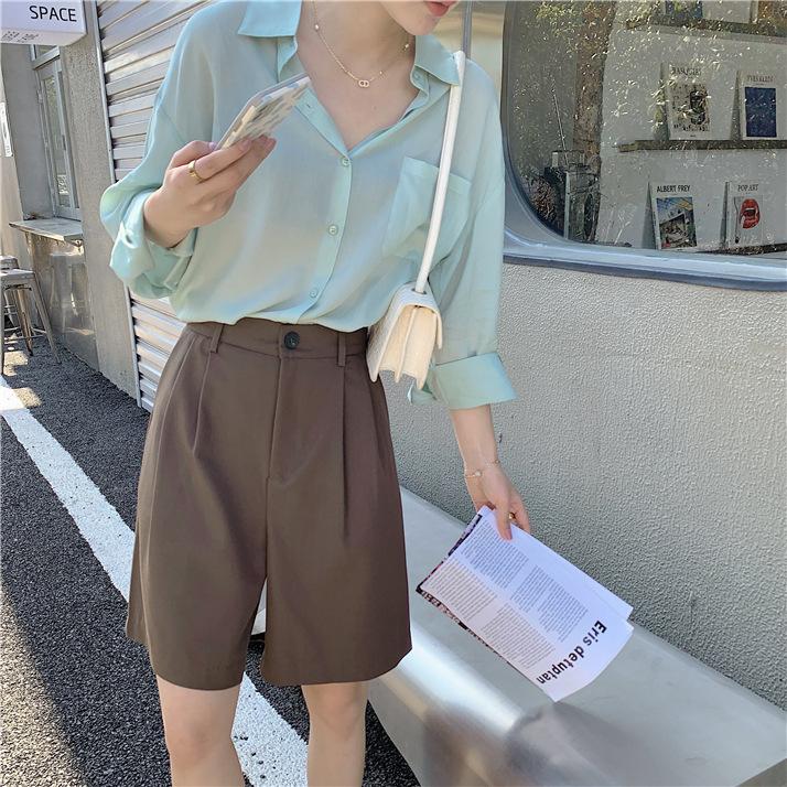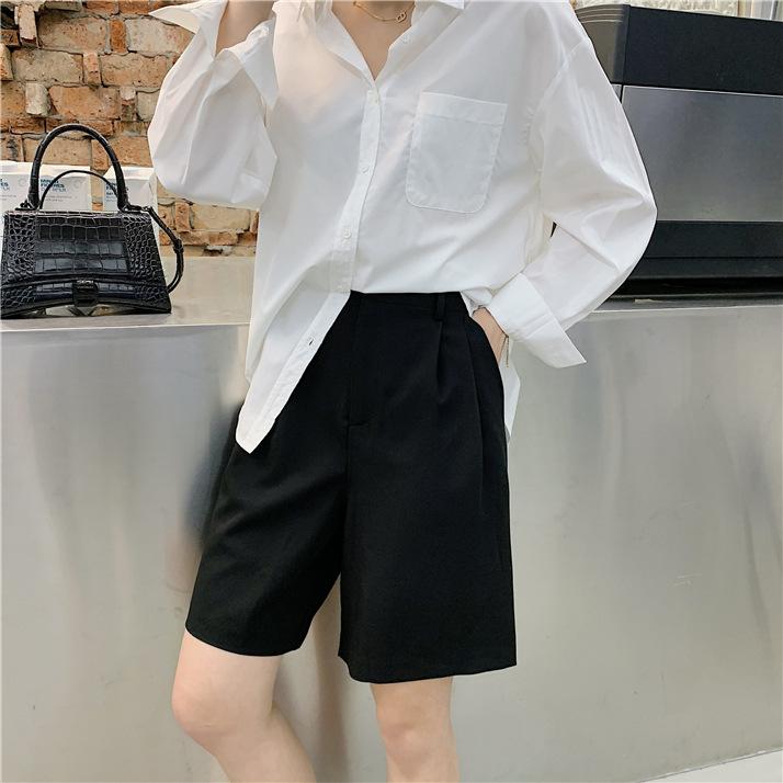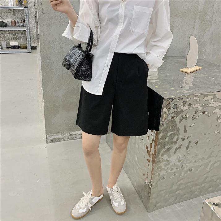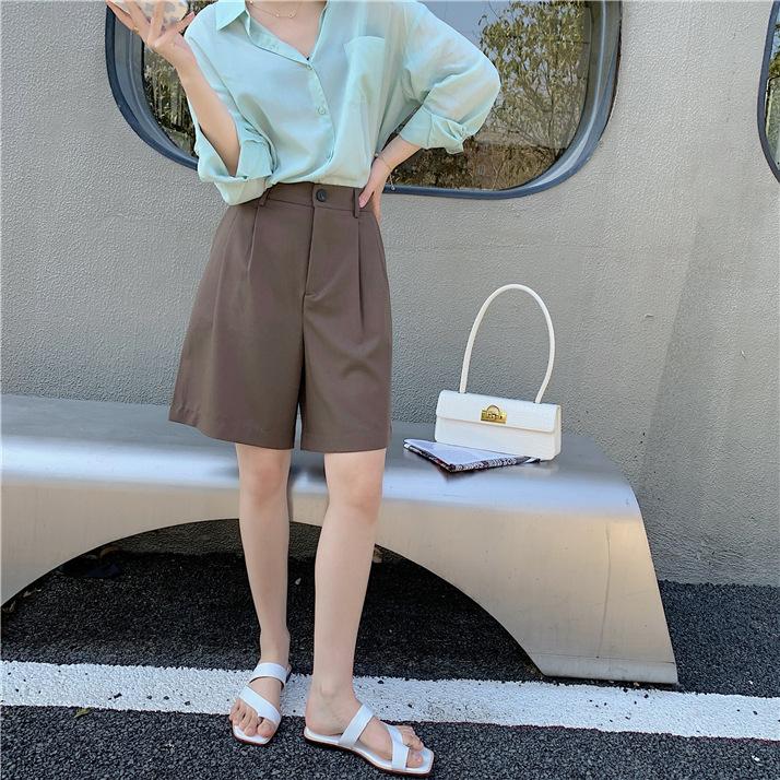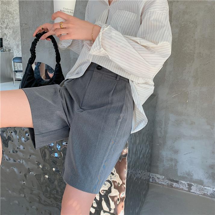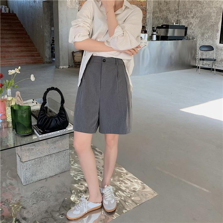 Talla grande Cintura Alta Recto Traje Shorts Ropa Exterior de Mujer Verano Delgados Sueltos Combinan con Todo Casual A-line Pantalones de Pierna Ancha