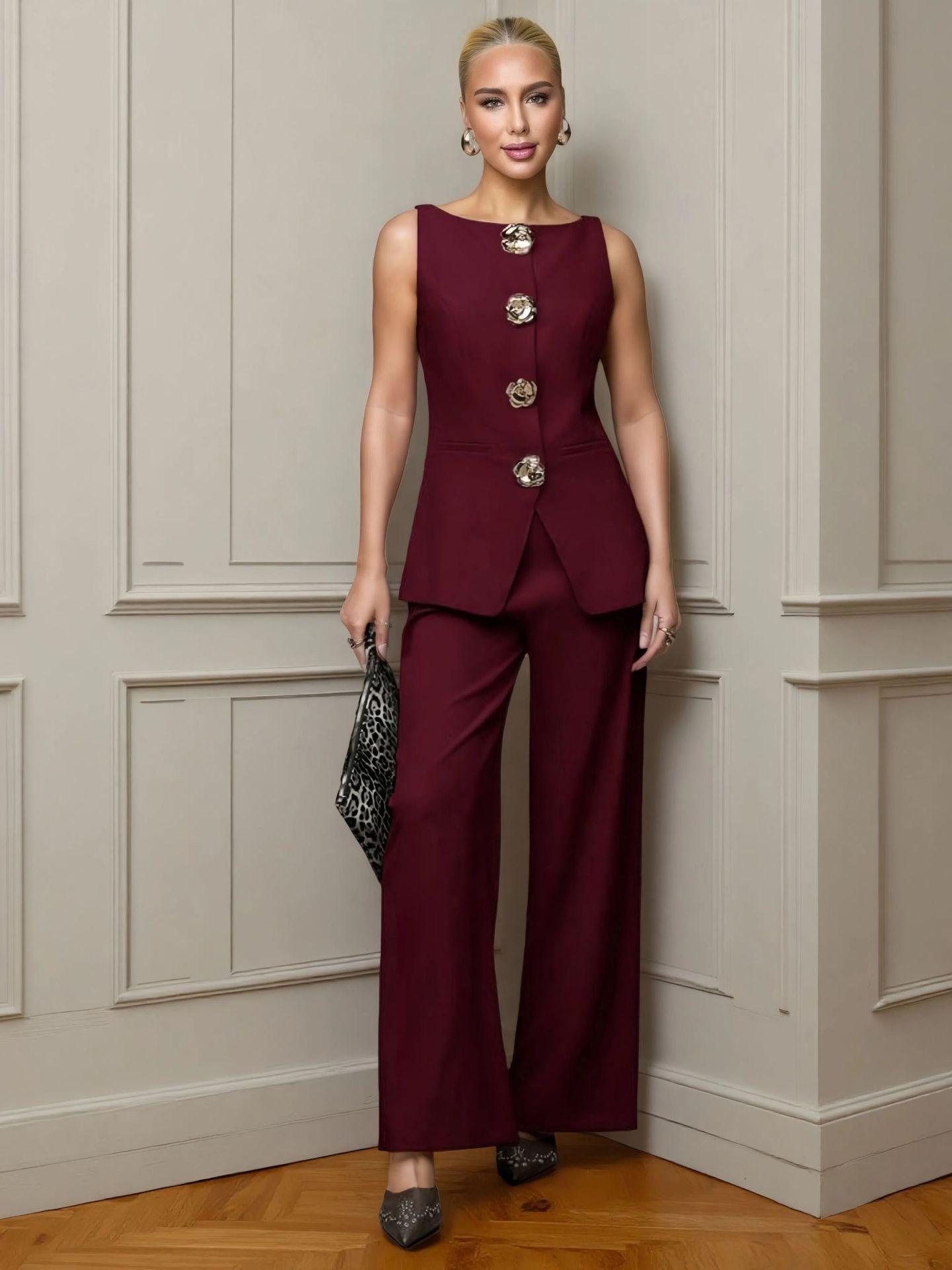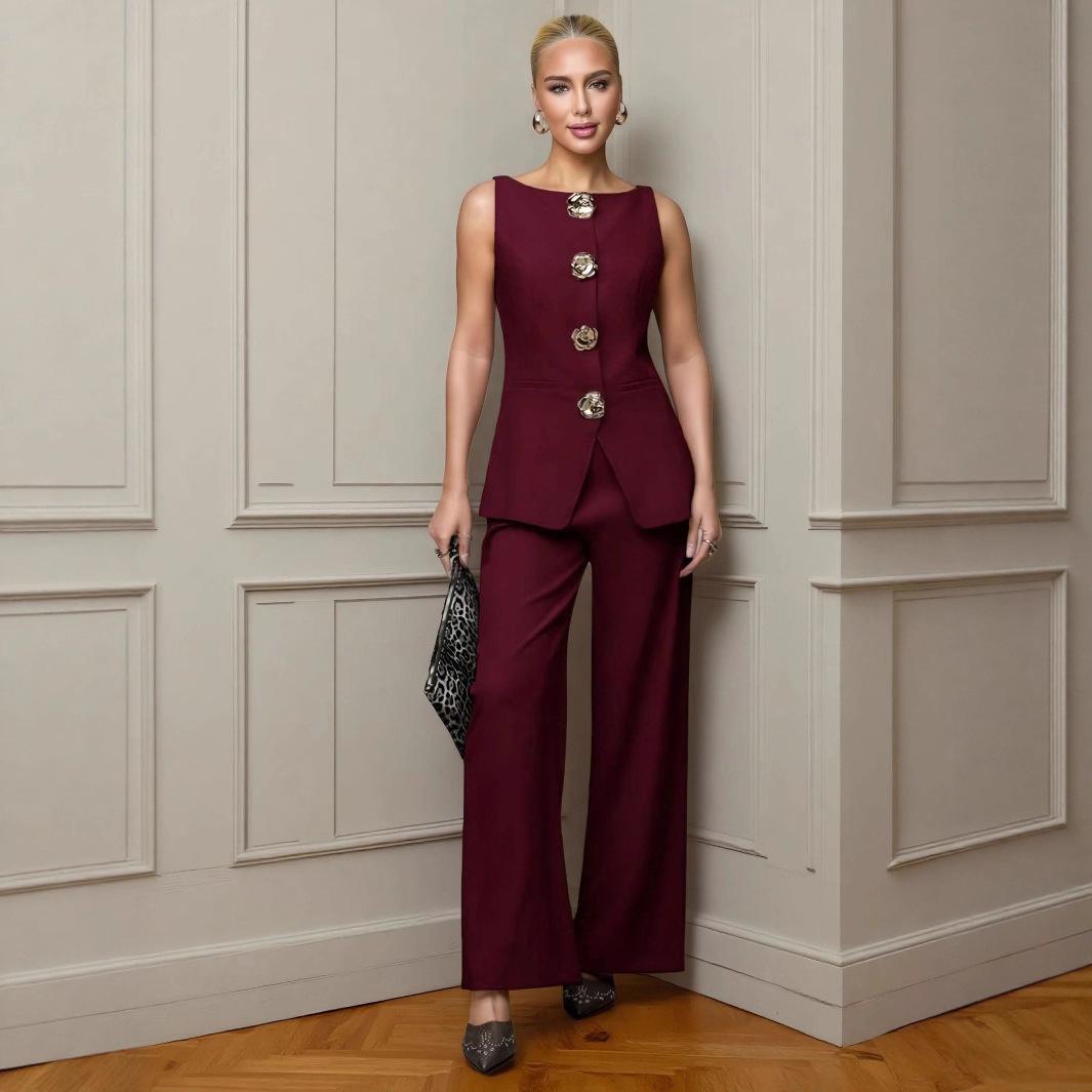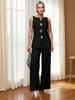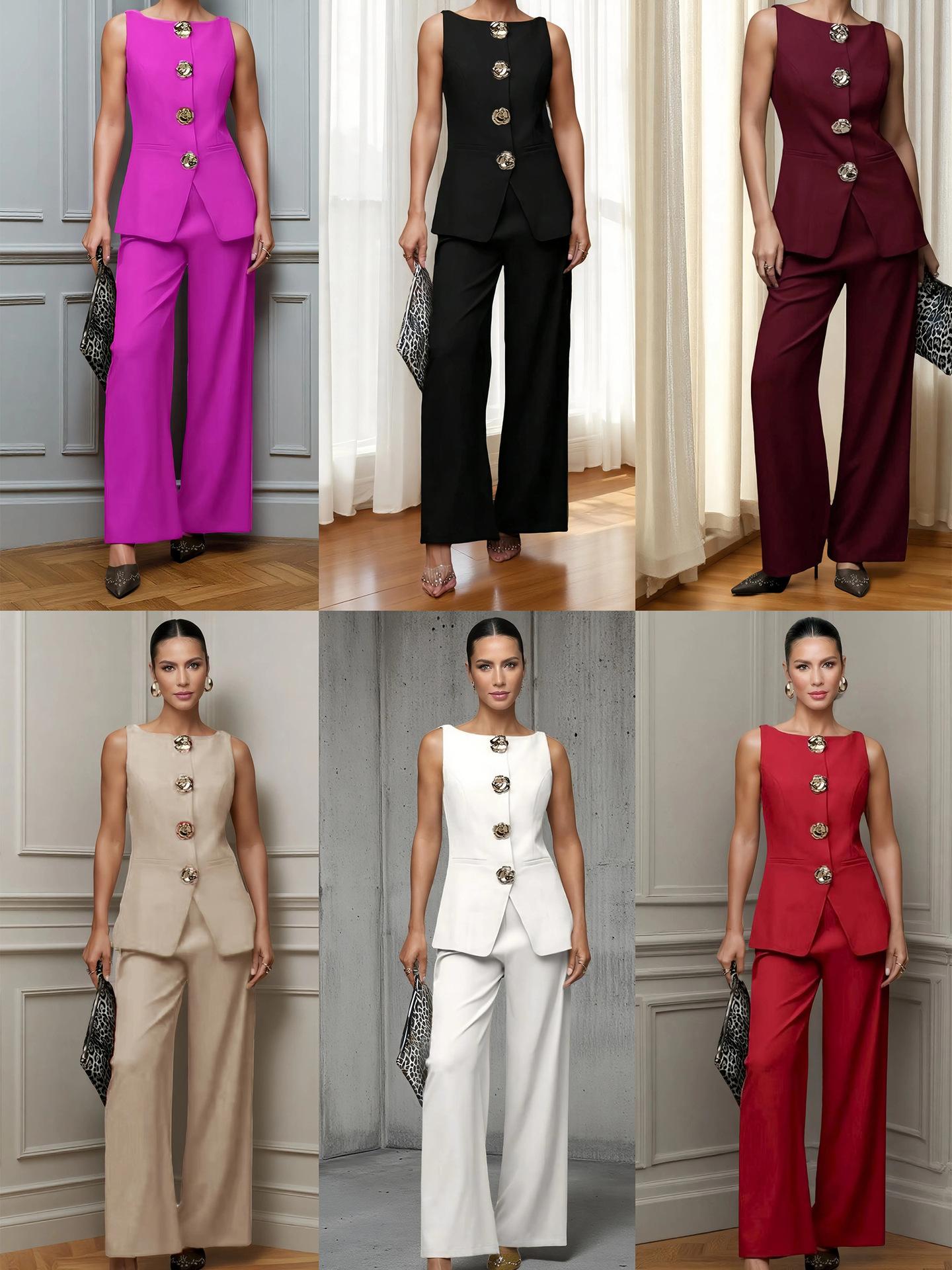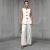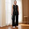 Moda Femenina Europea y Americana Transfronteriza de Amazon Chaleco con Botones Dorados y Pantalones Traje Casual de Dos Piezas para Mujer