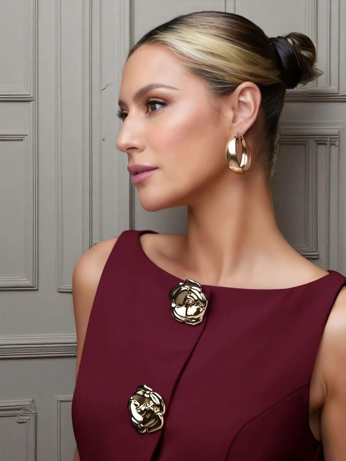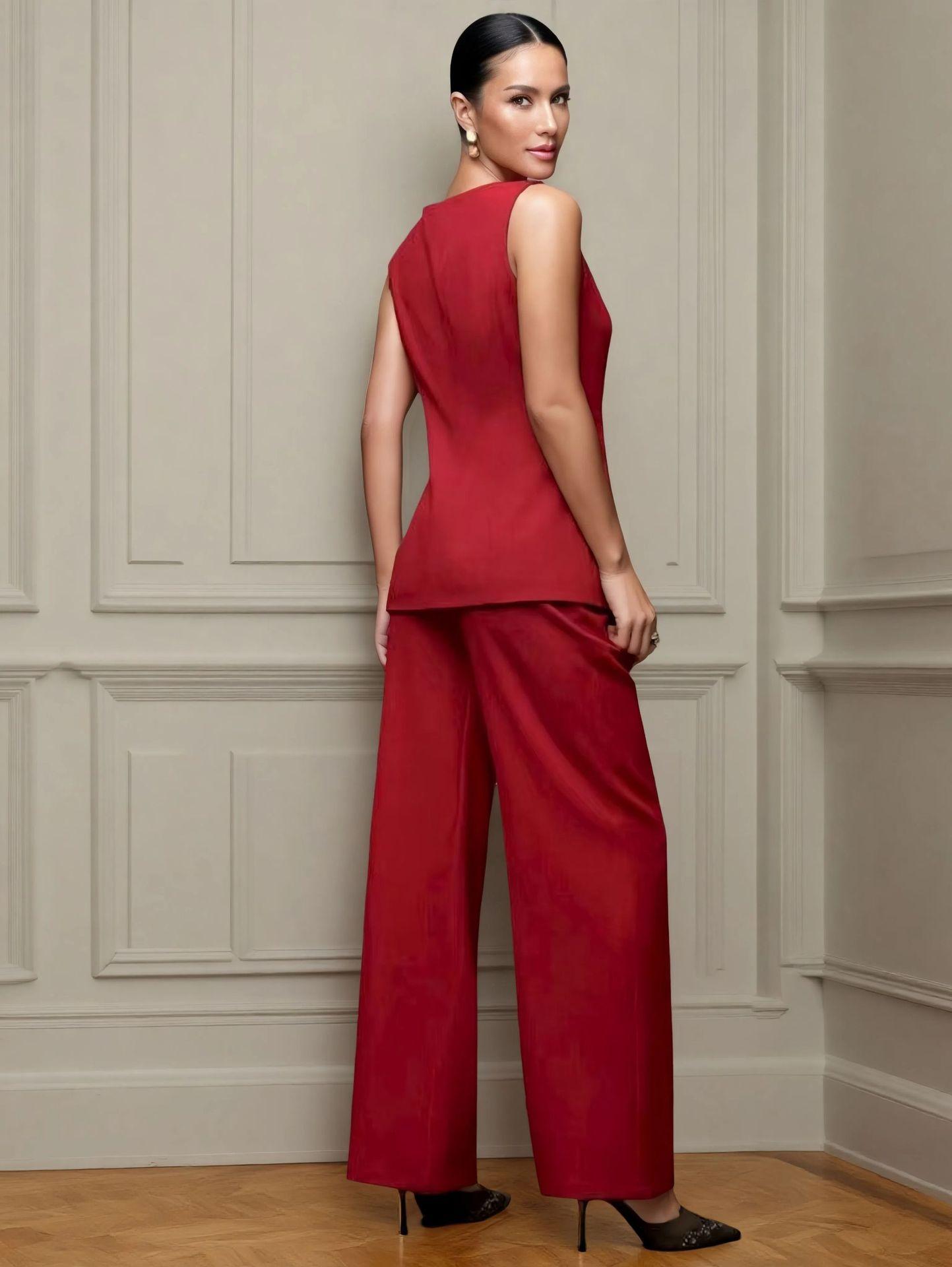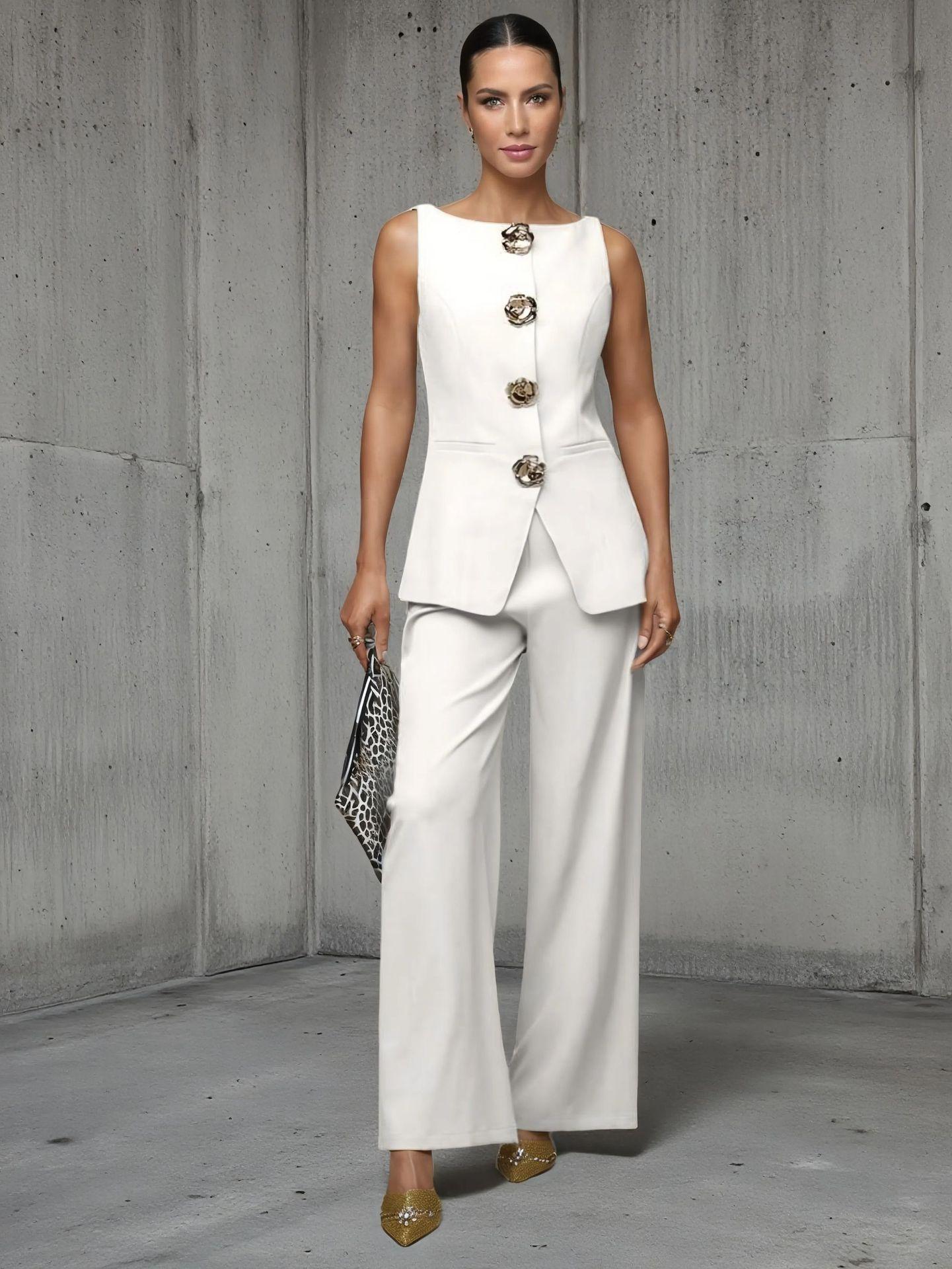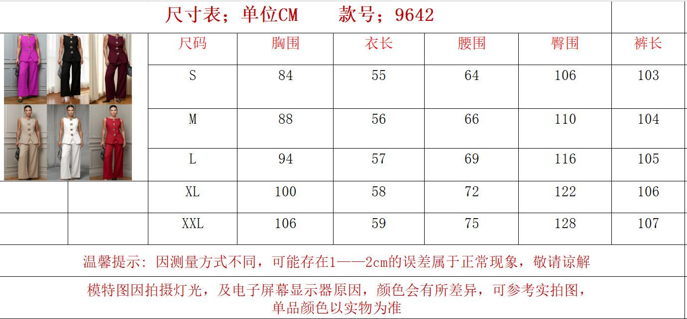 Moda Femenina Europea y Americana Transfronteriza de Amazon Chaleco con Botones Dorados y Pantalones Traje Casual de Dos Piezas para Mujer