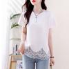 Camisa de Manga Corta con Cuello en V Blanca con Encaje Patchwork para Mujer Verano 2025 Nueva Moda Rejuvenecedora Top de Alta Gama