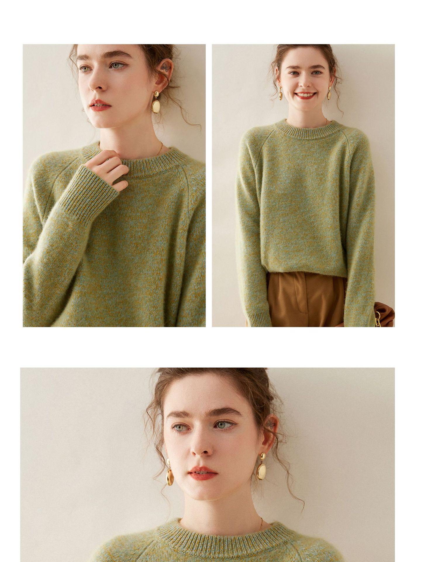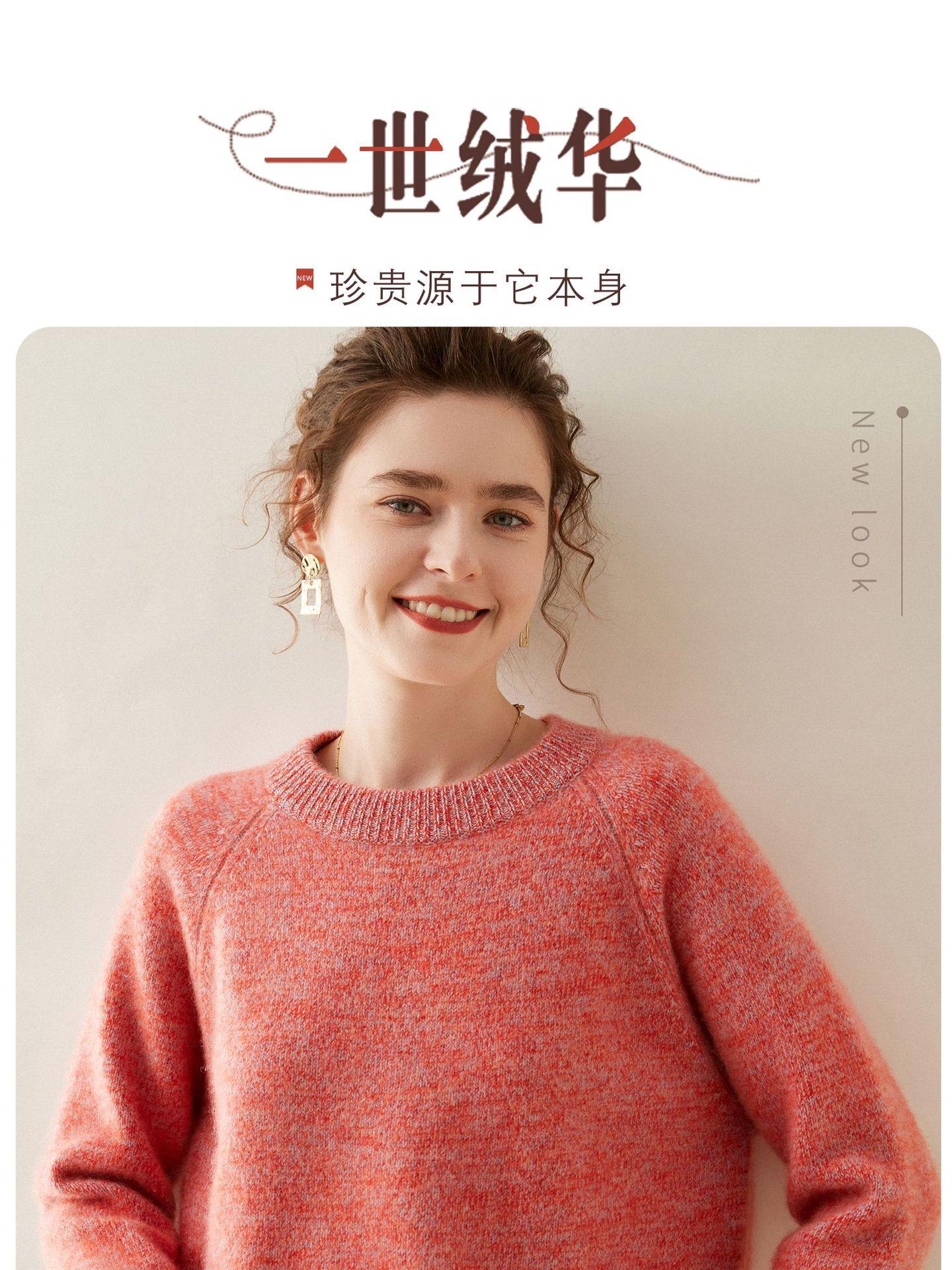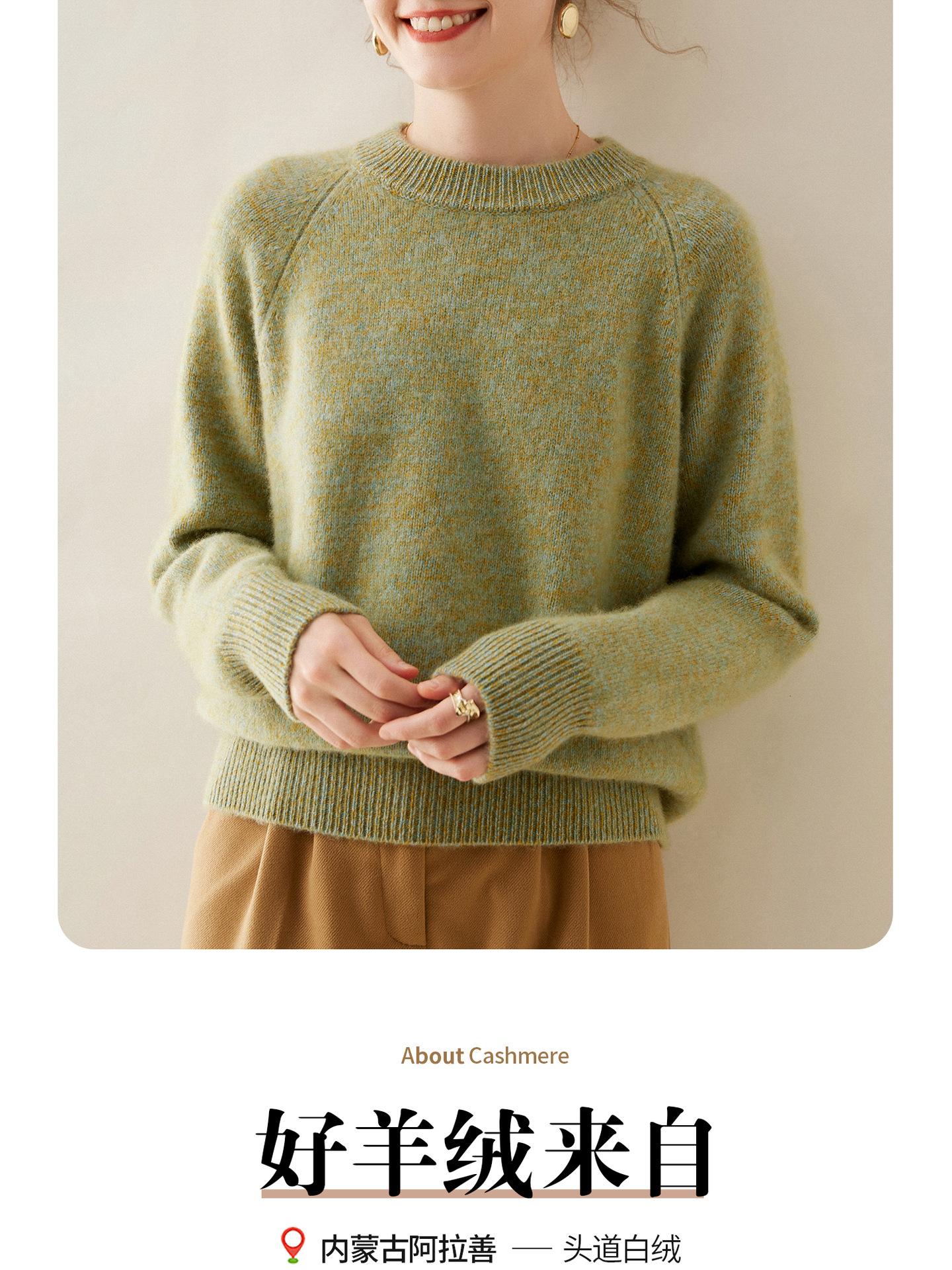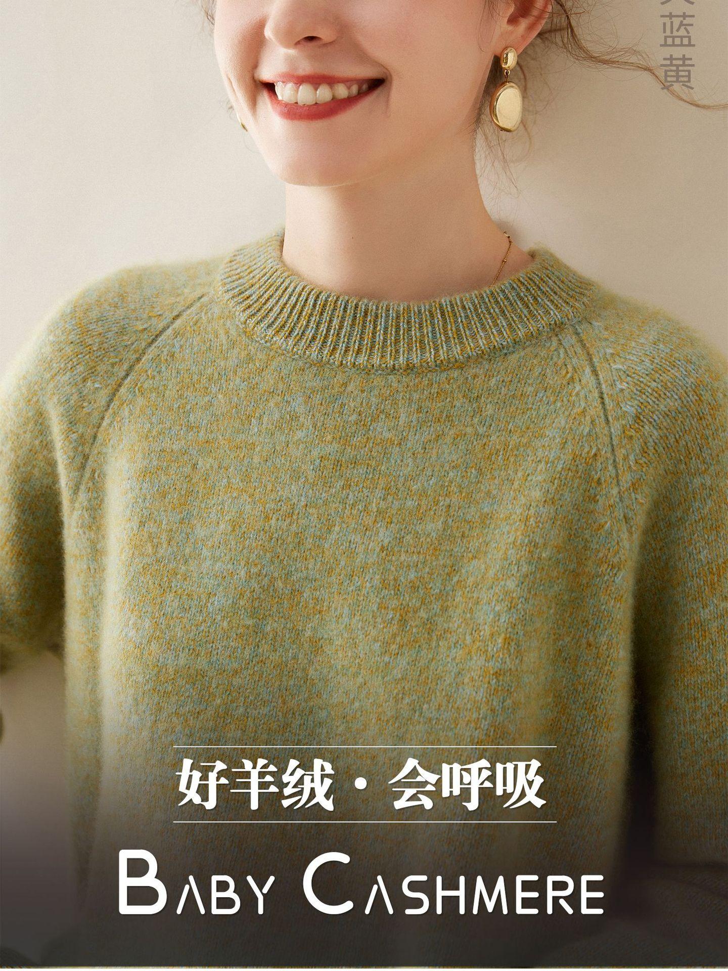 Estilo otoño e invierno hilo fantasía de cinco agujas tres cabos grueso para mujer manga larga cuello redondo holgado cálido top tejido de cachemira camiseta básica
