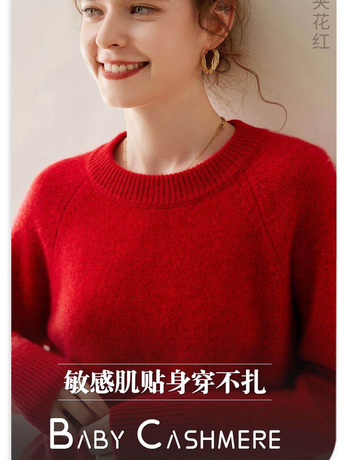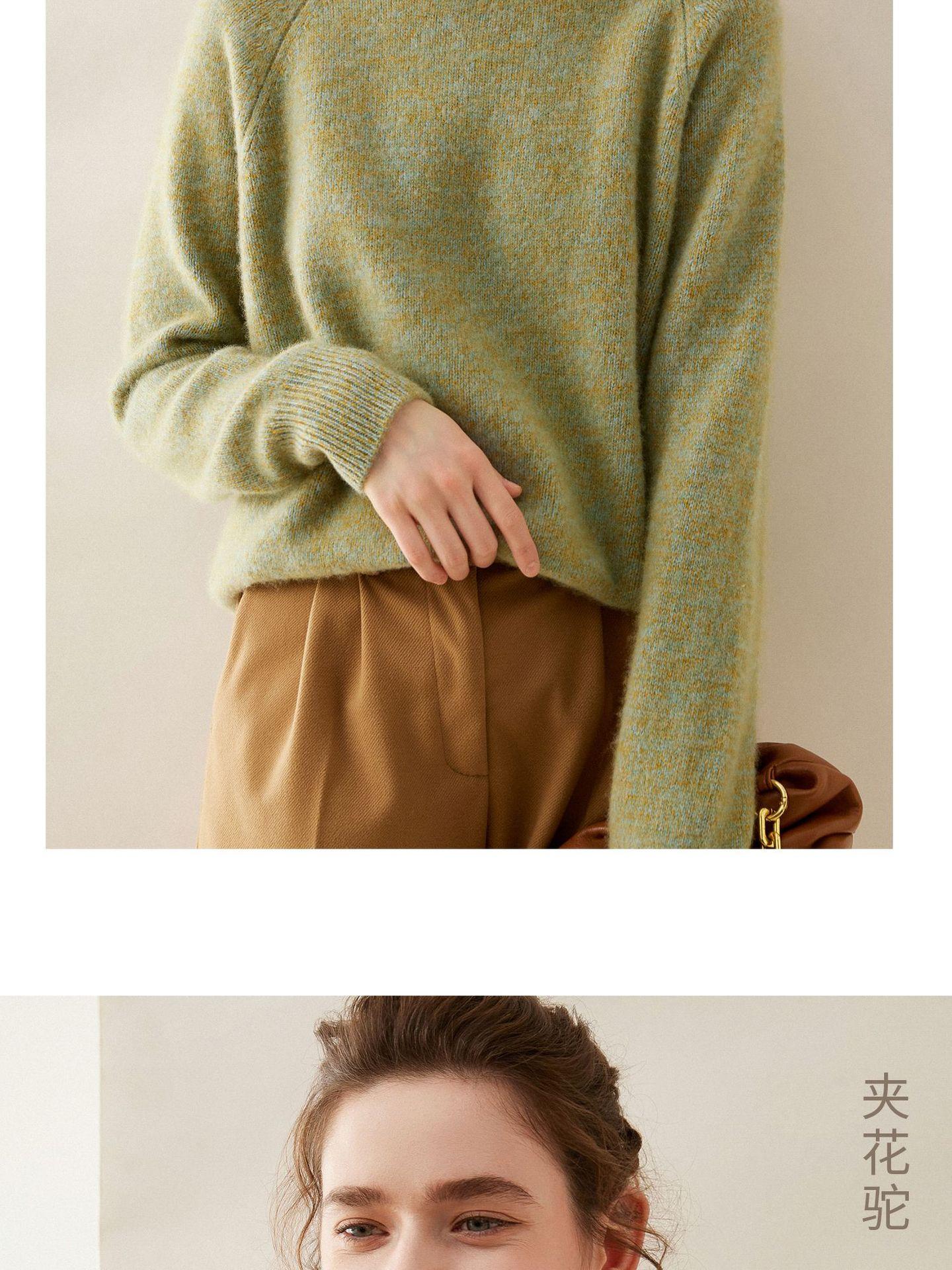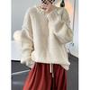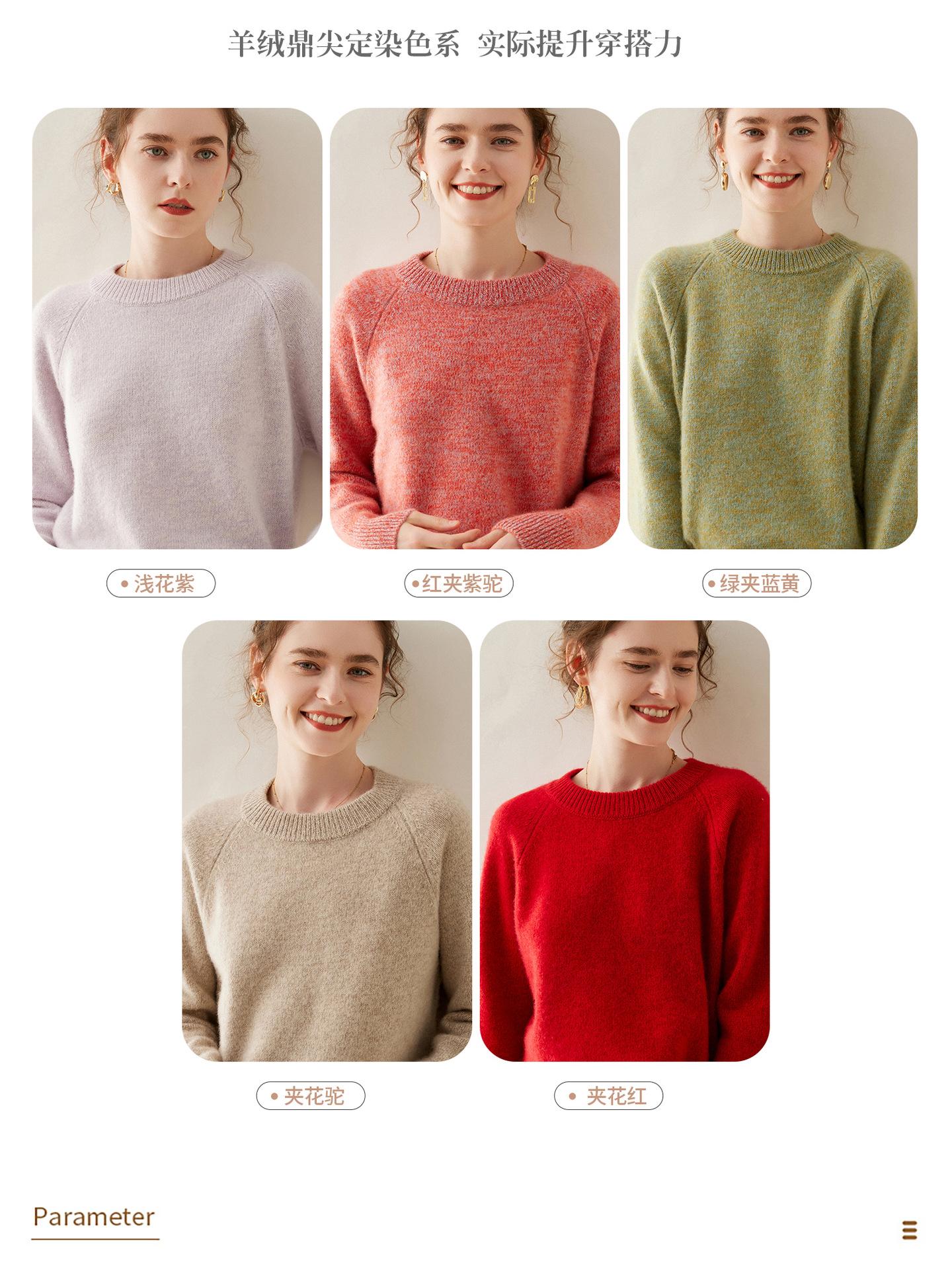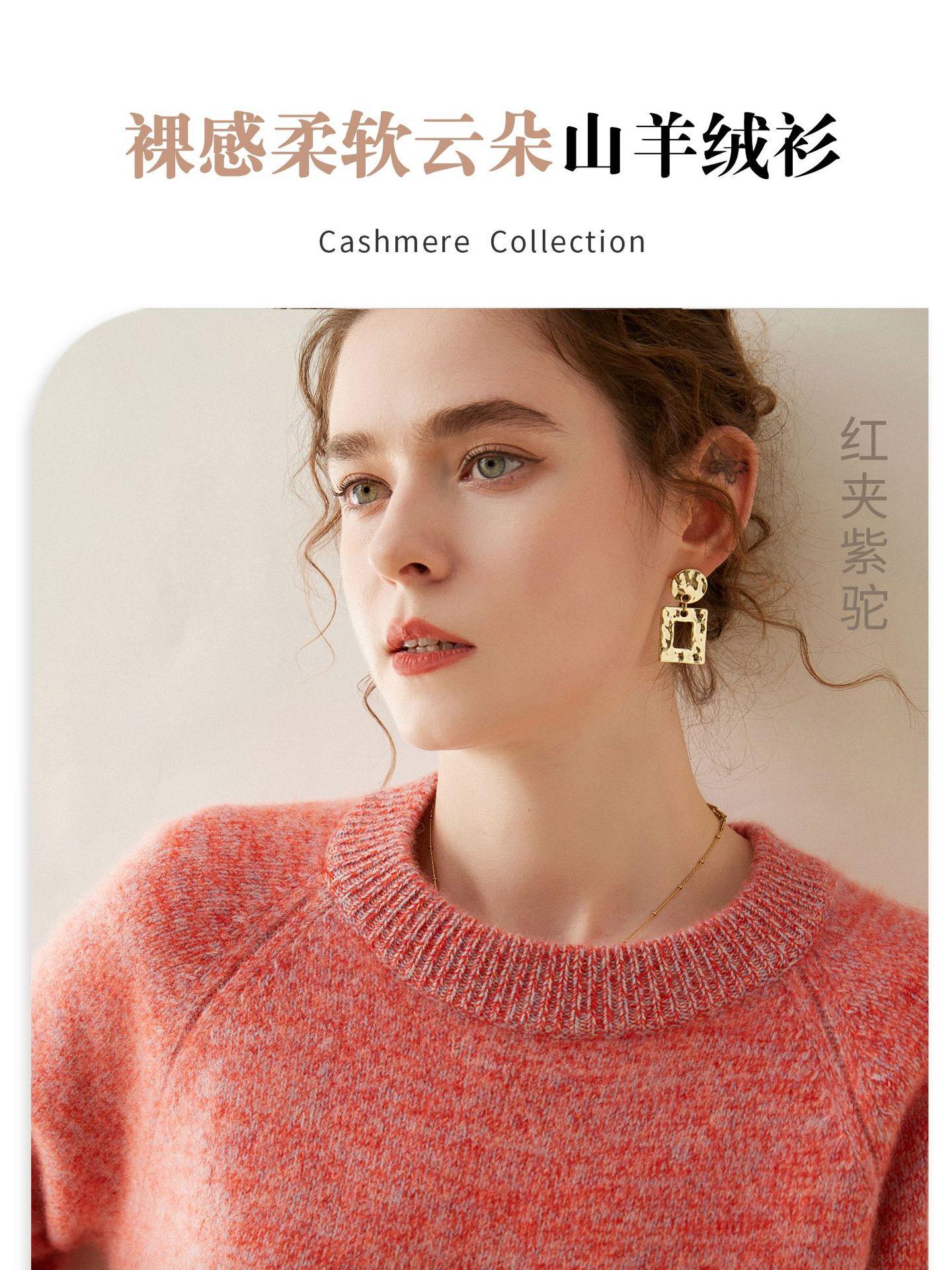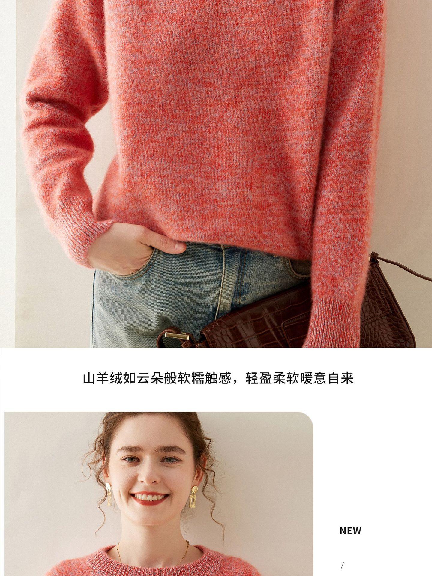Estilo otoño e invierno hilo fantasía de cinco agujas tres cabos grueso para mujer manga larga cuello redondo holgado cálido top tejido de cachemira camiseta básica