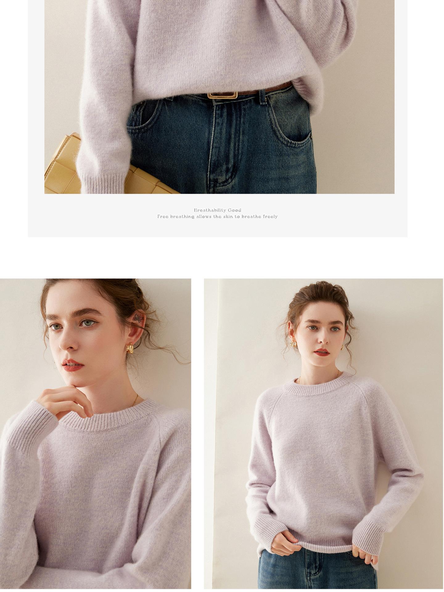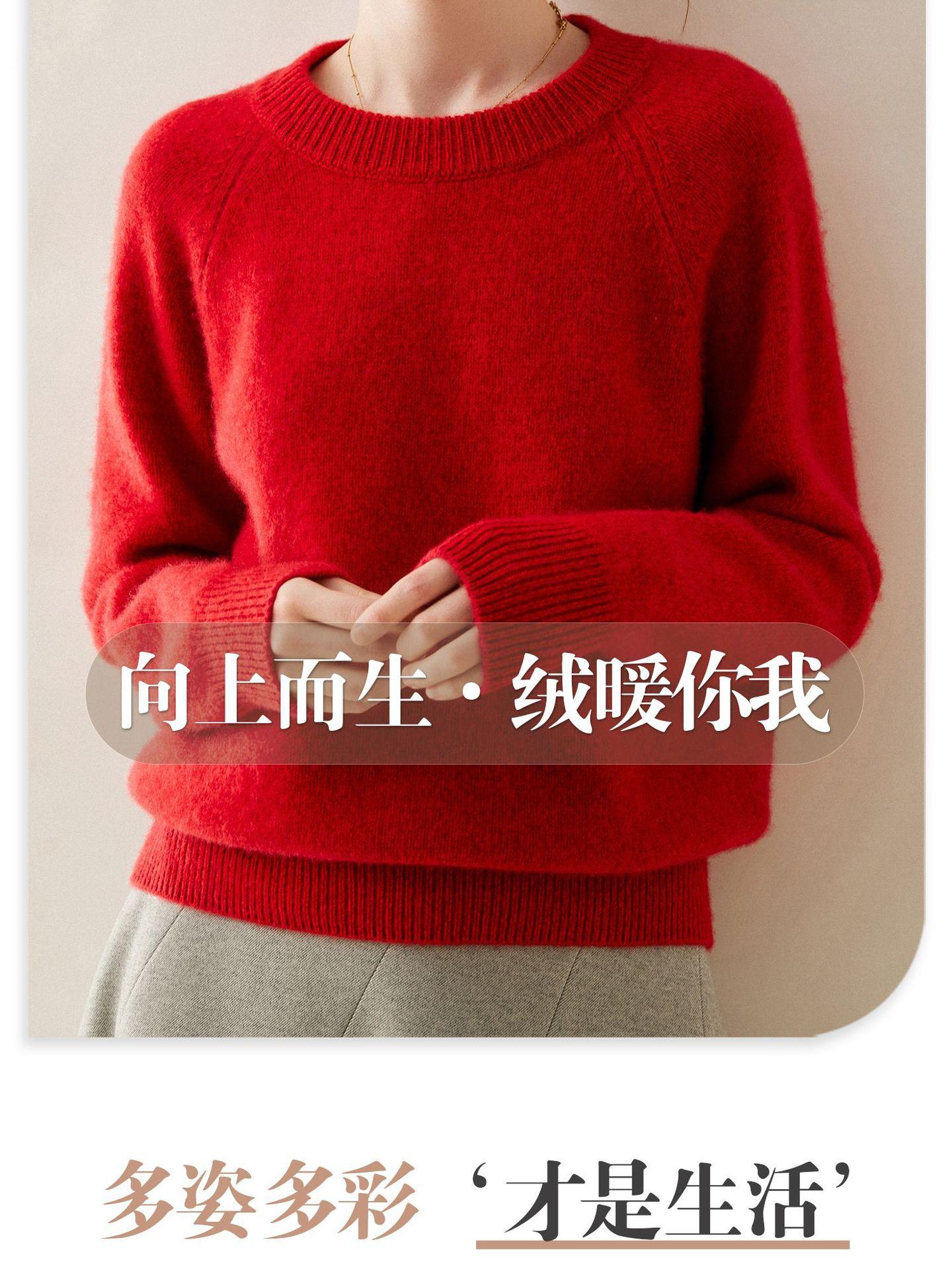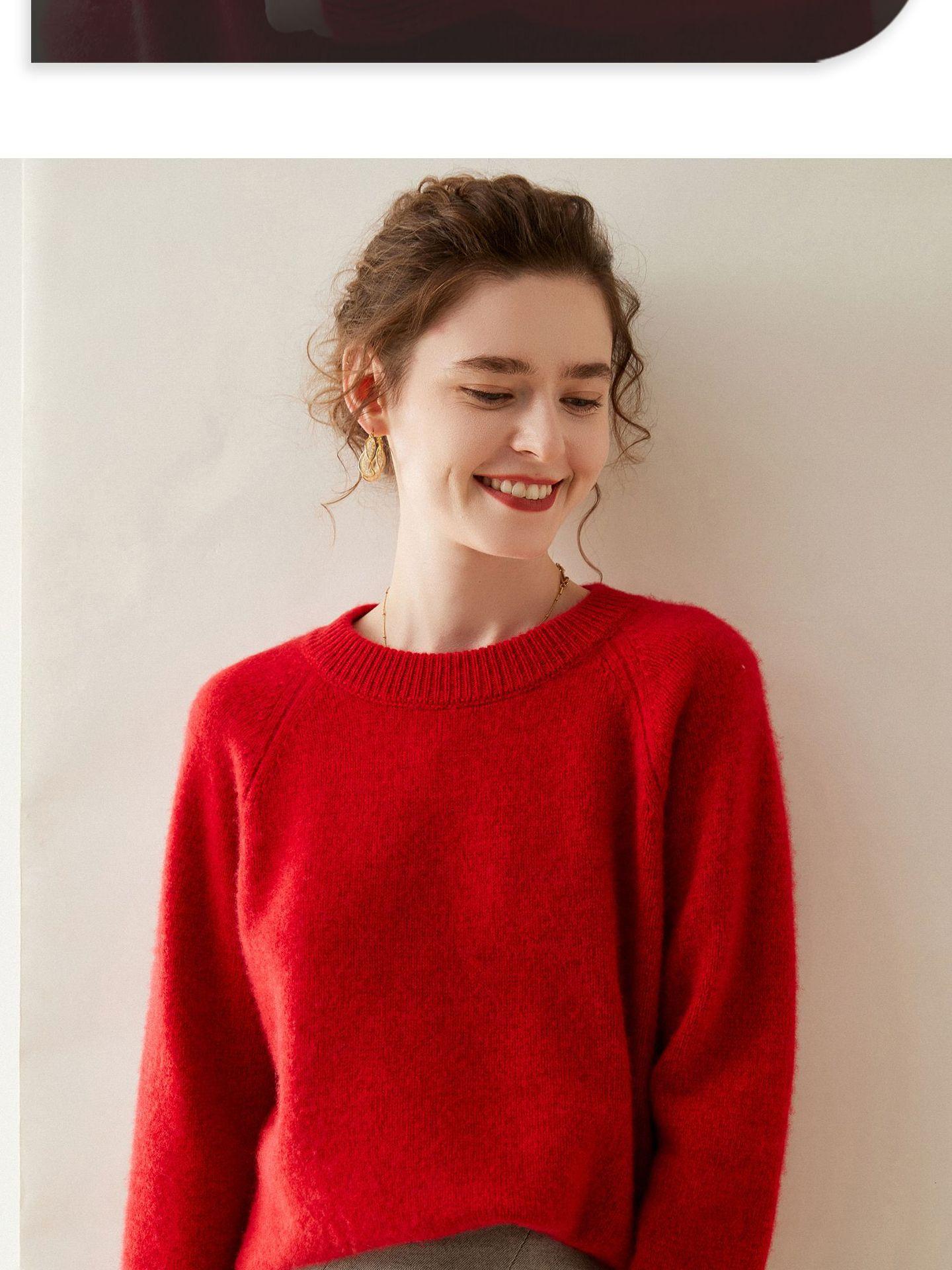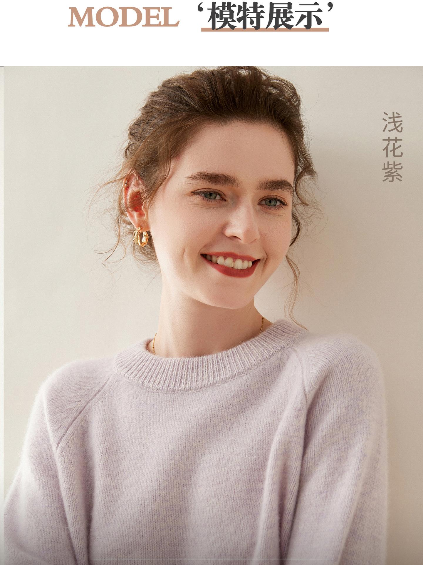 Estilo otoño e invierno hilo fantasía de cinco agujas tres cabos grueso para mujer manga larga cuello redondo holgado cálido top tejido de cachemira camiseta básica
