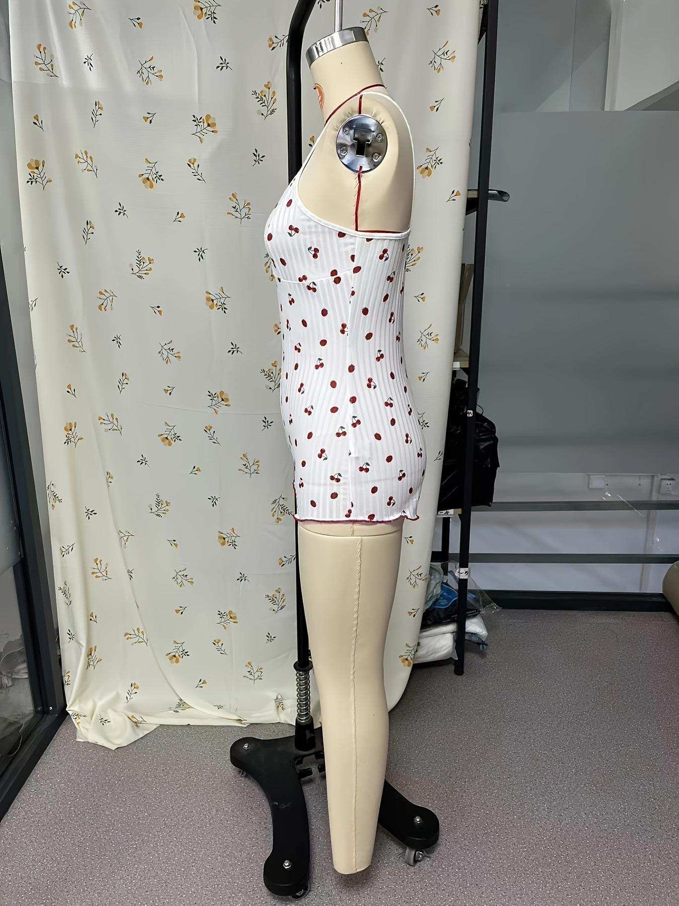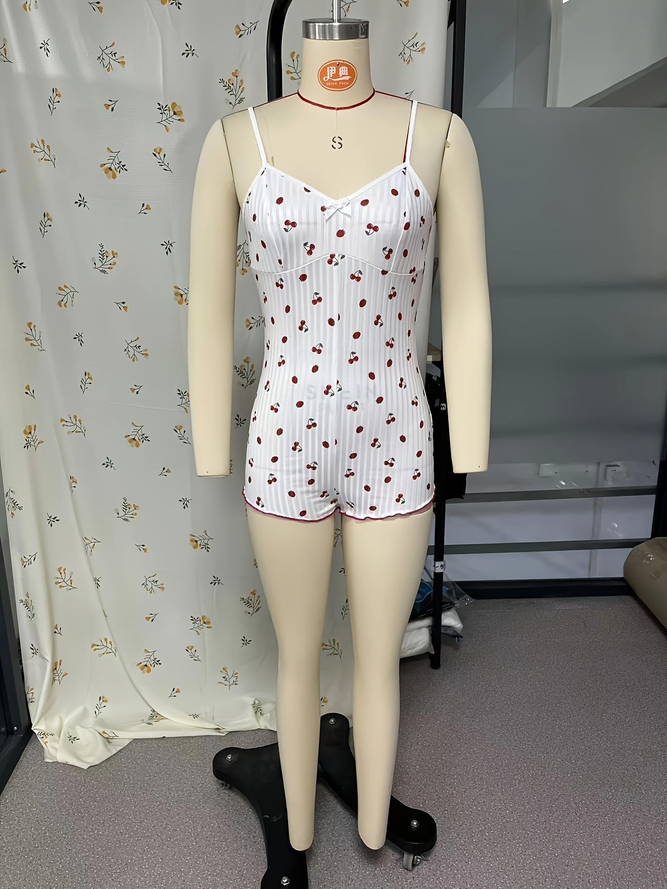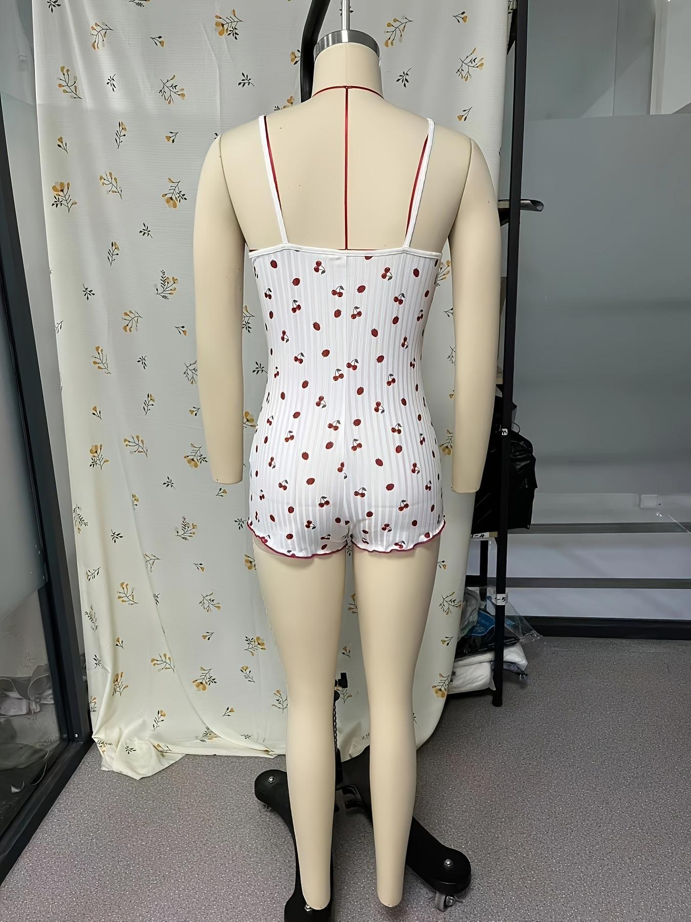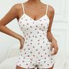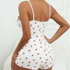 Pijama Nuevo Europeo y Americano de Deseo Puro Diseño Lindo de Estampado de Cereza Dulce Short con Tirantes Set de Pijama para Casa de Mujer
