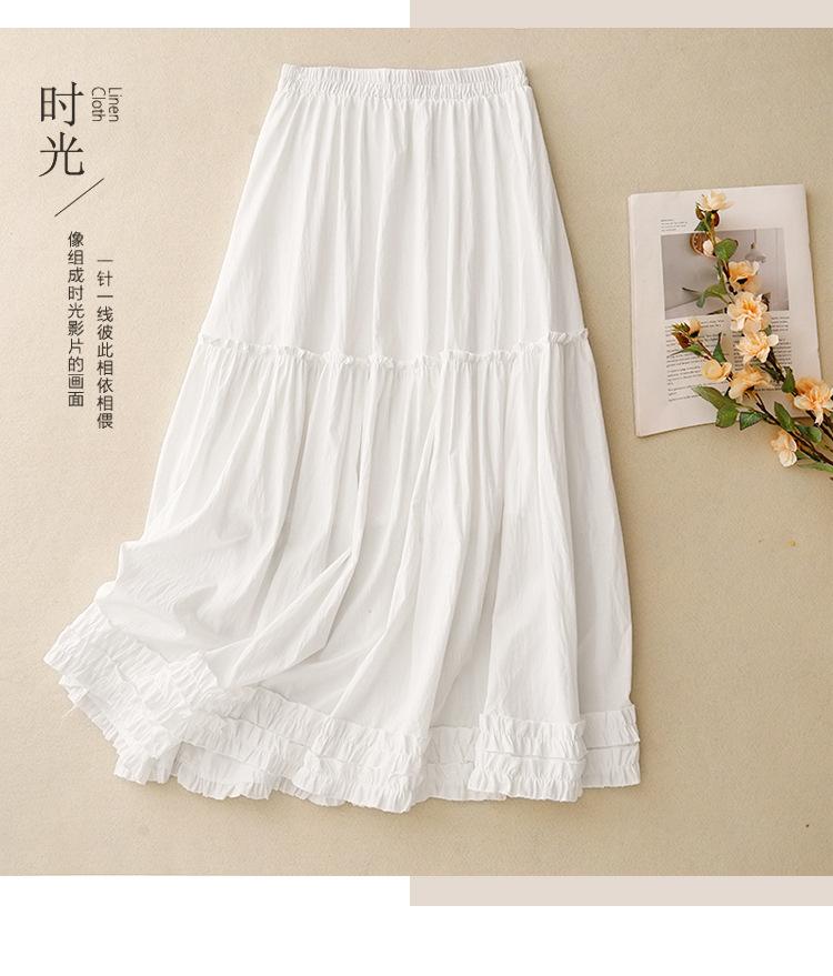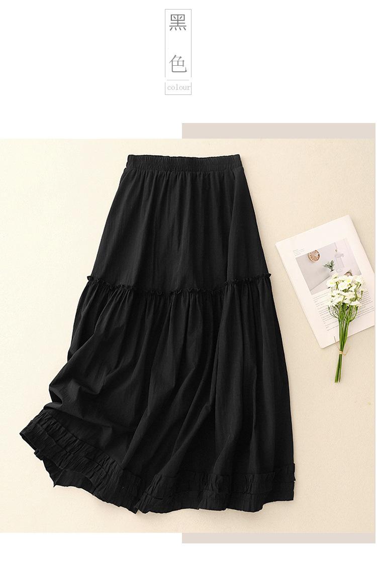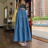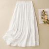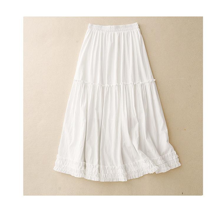 Foto real de 2025 Nuevo estilo de verano Dobladillo de oreja Cintura elástica Casual Largo Estilo suave Falda acampanada