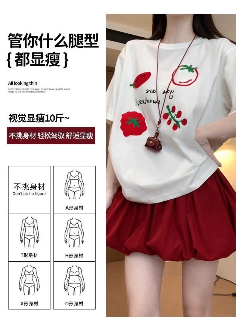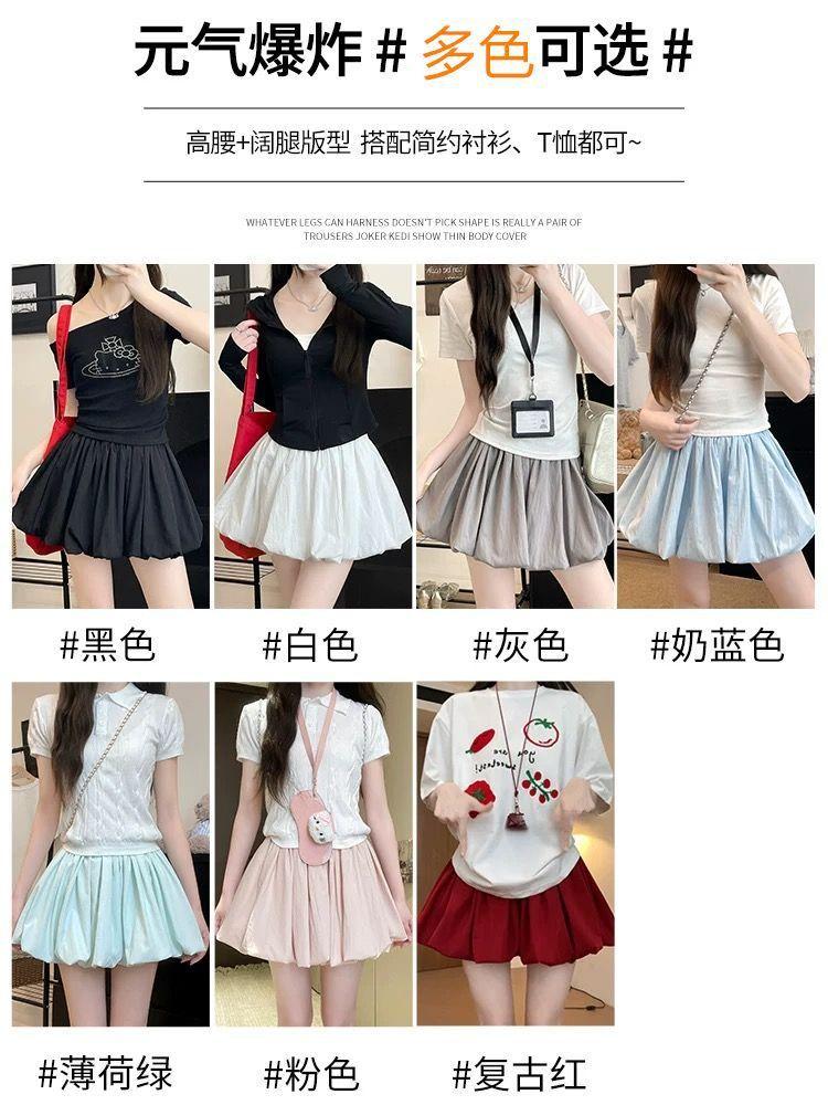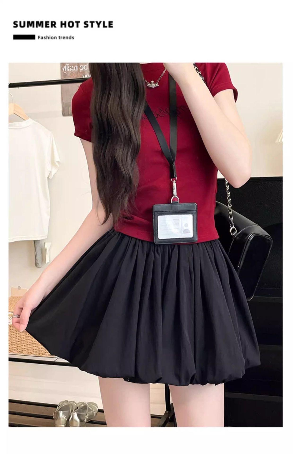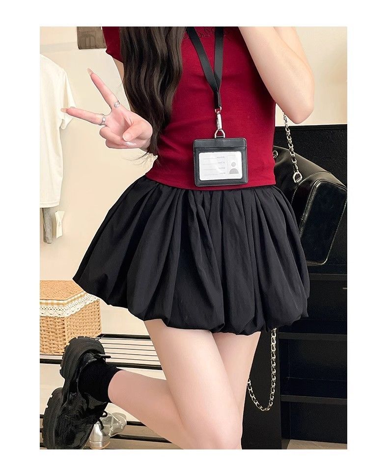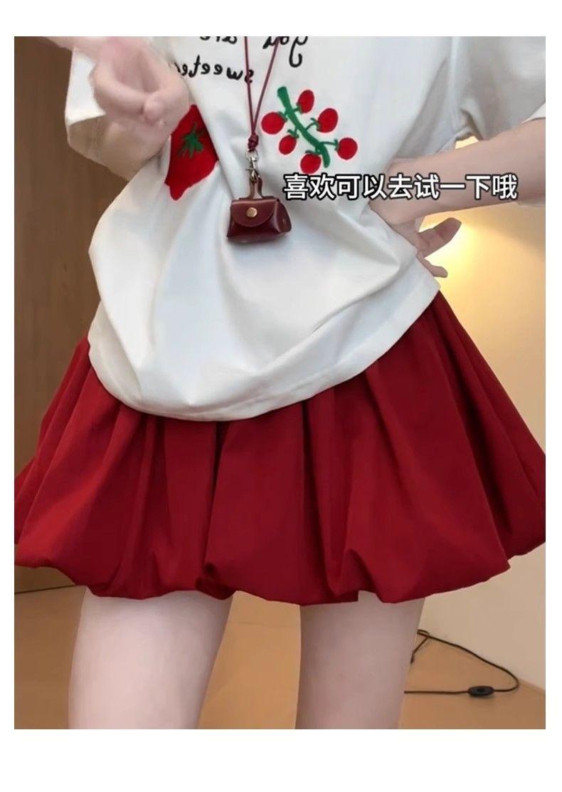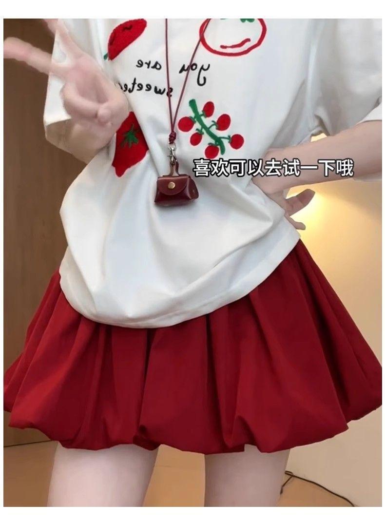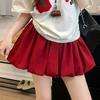 Falda corta dulce de tulipán rojo estilo coreano para mujer, delgada para primavera y otoño, petite, de cintura alta, holgada, versátil, adelgazante, falda abullonada con pantalones