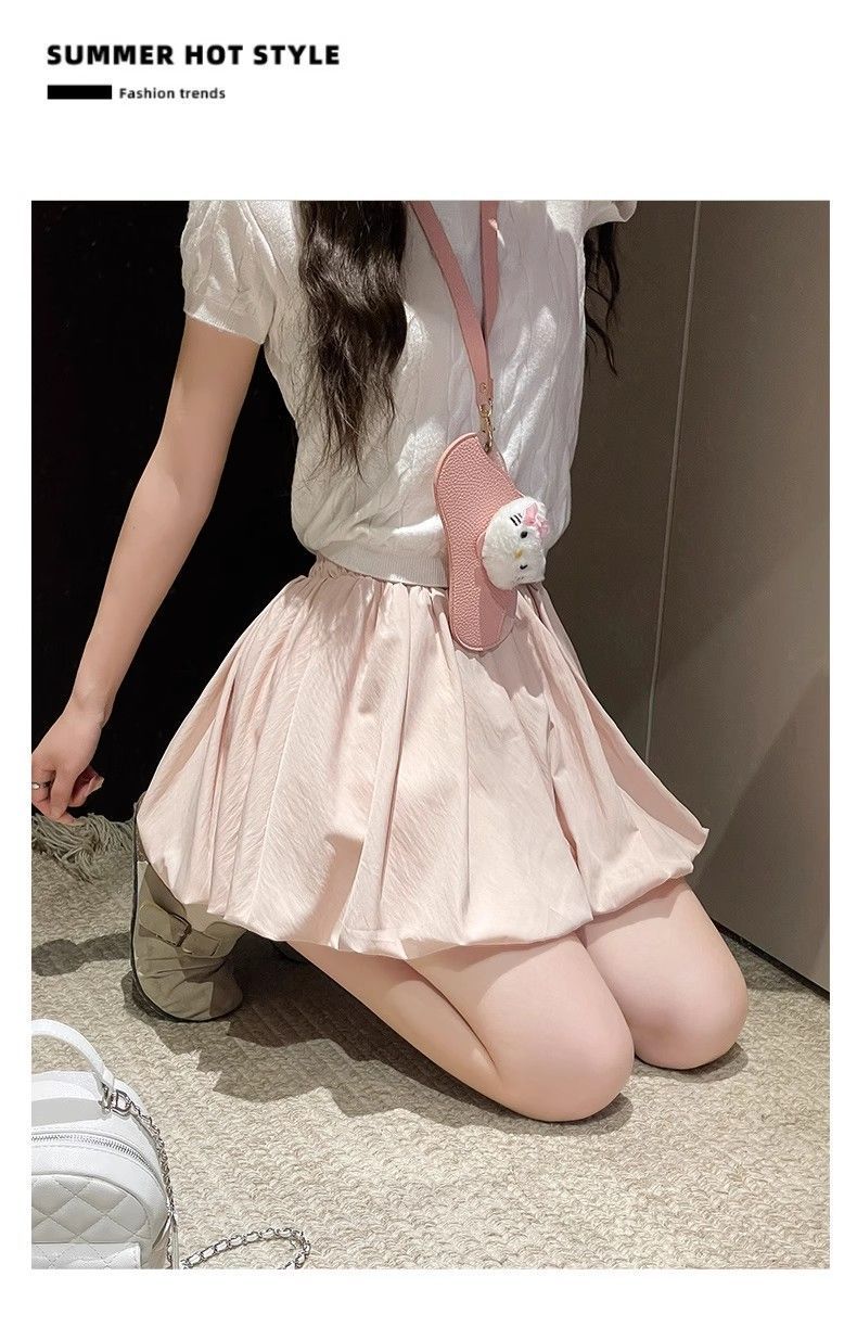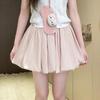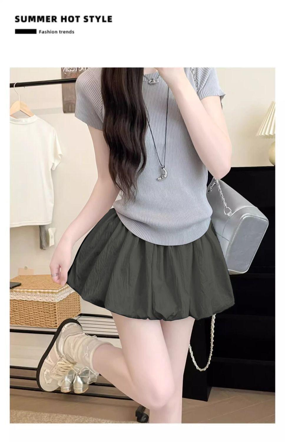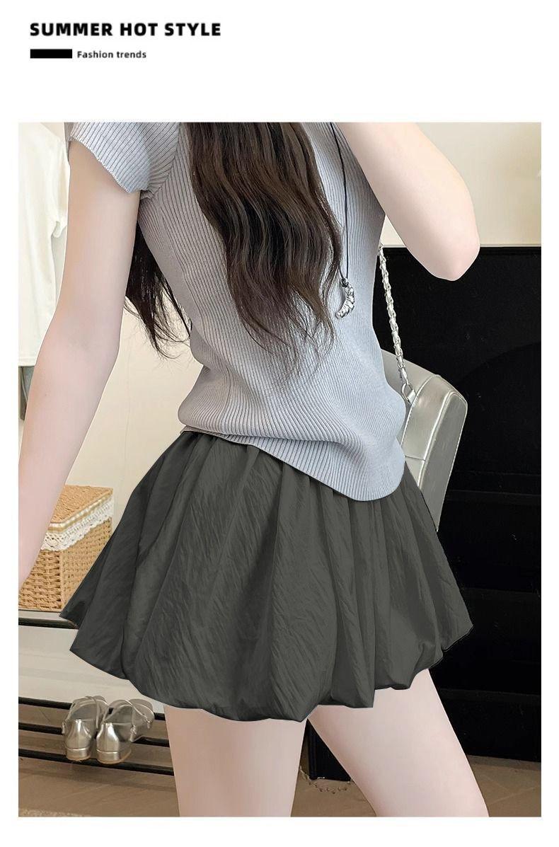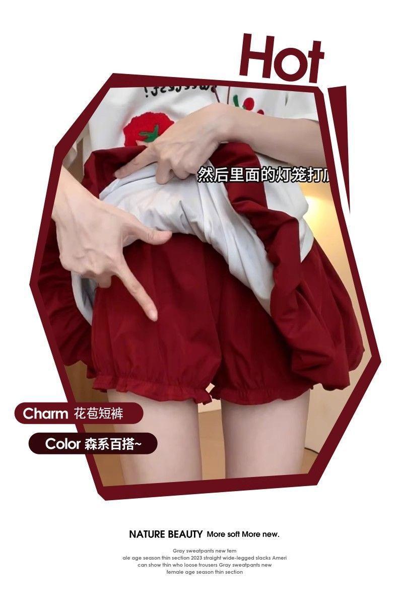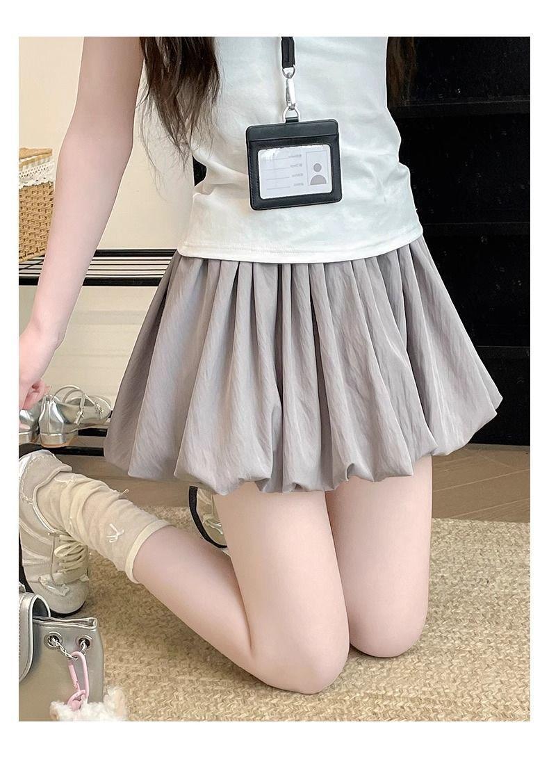 Falda corta dulce de tulipán rojo estilo coreano para mujer, delgada para primavera y otoño, petite, de cintura alta, holgada, versátil, adelgazante, falda abullonada con pantalones