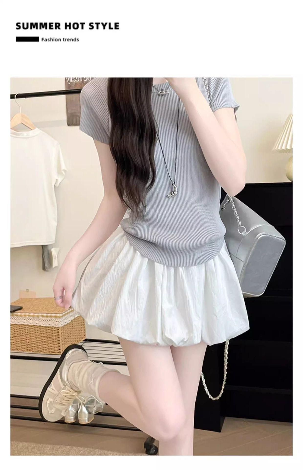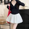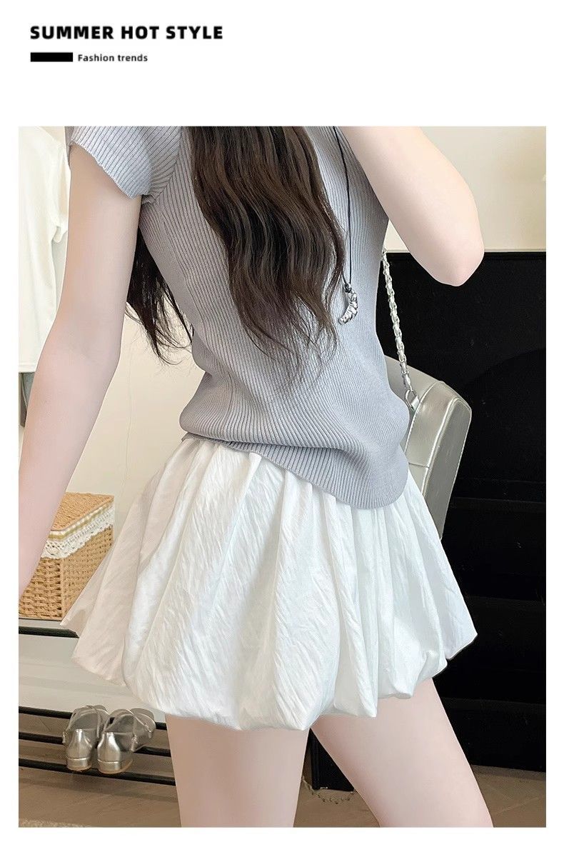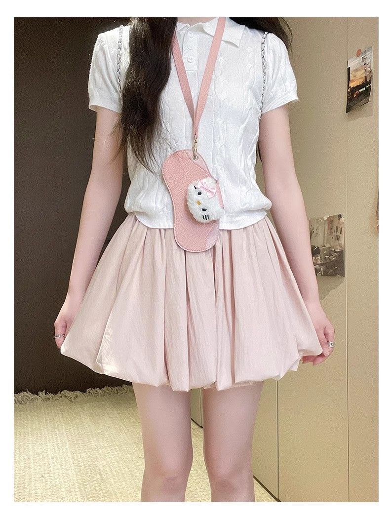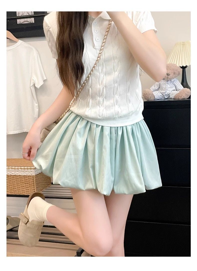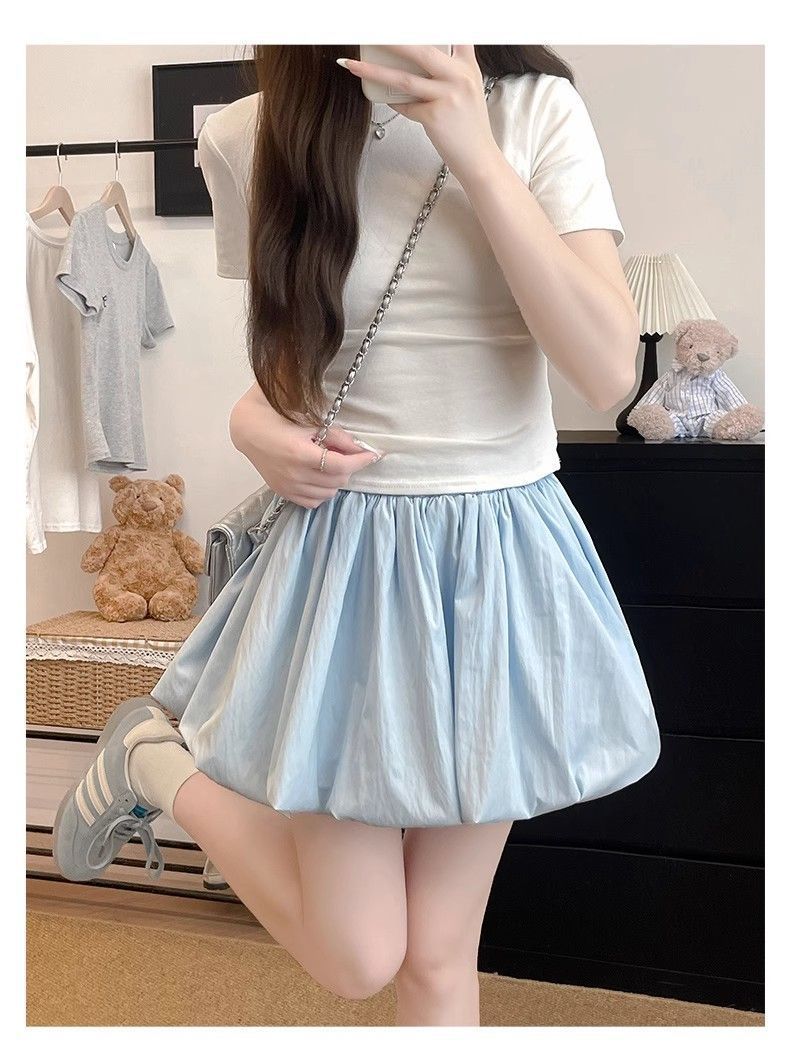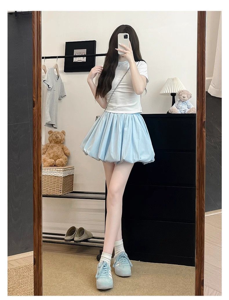 Falda corta dulce de tulipán rojo estilo coreano para mujer, delgada para primavera y otoño, petite, de cintura alta, holgada, versátil, adelgazante, falda abullonada con pantalones