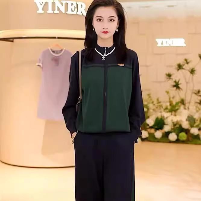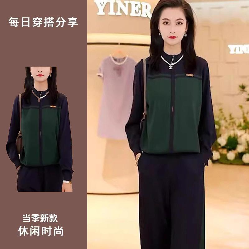 Conjunto de Ropa Deportiva Casual de Estilo Europeo para Mujer Otoño 2025 Nueva Moda Reductor de Edad Holgado Pantalón de Pierna Ancha de Dos Piezas Adelgazante
