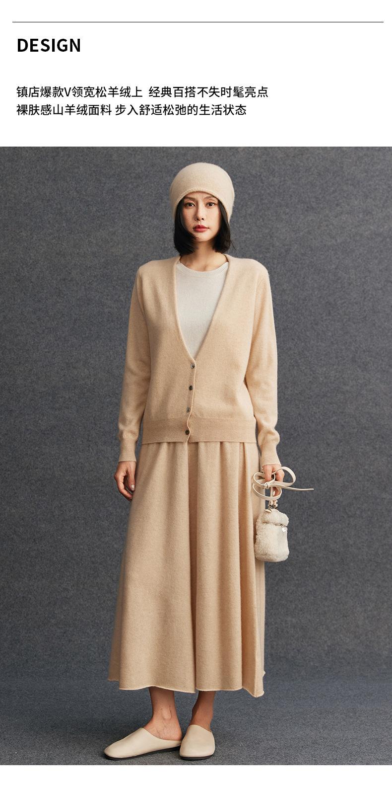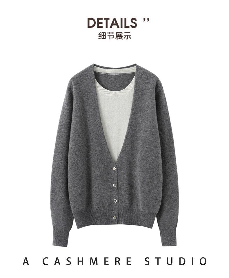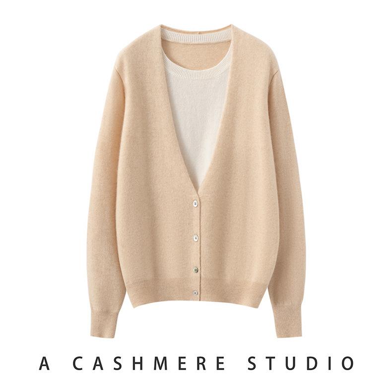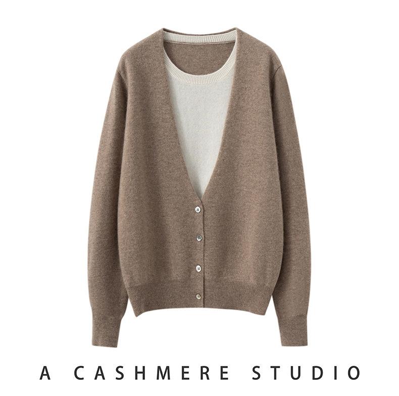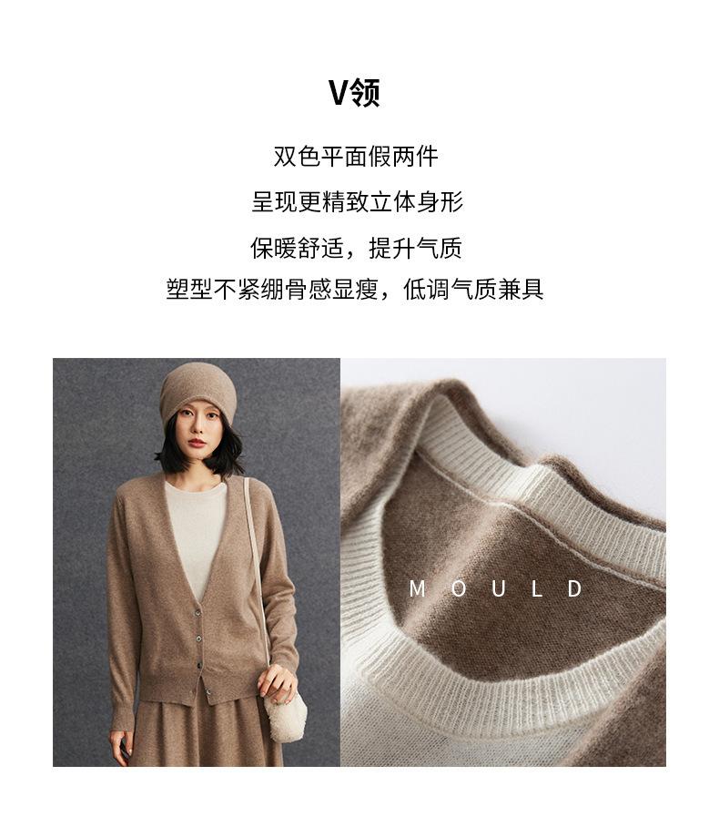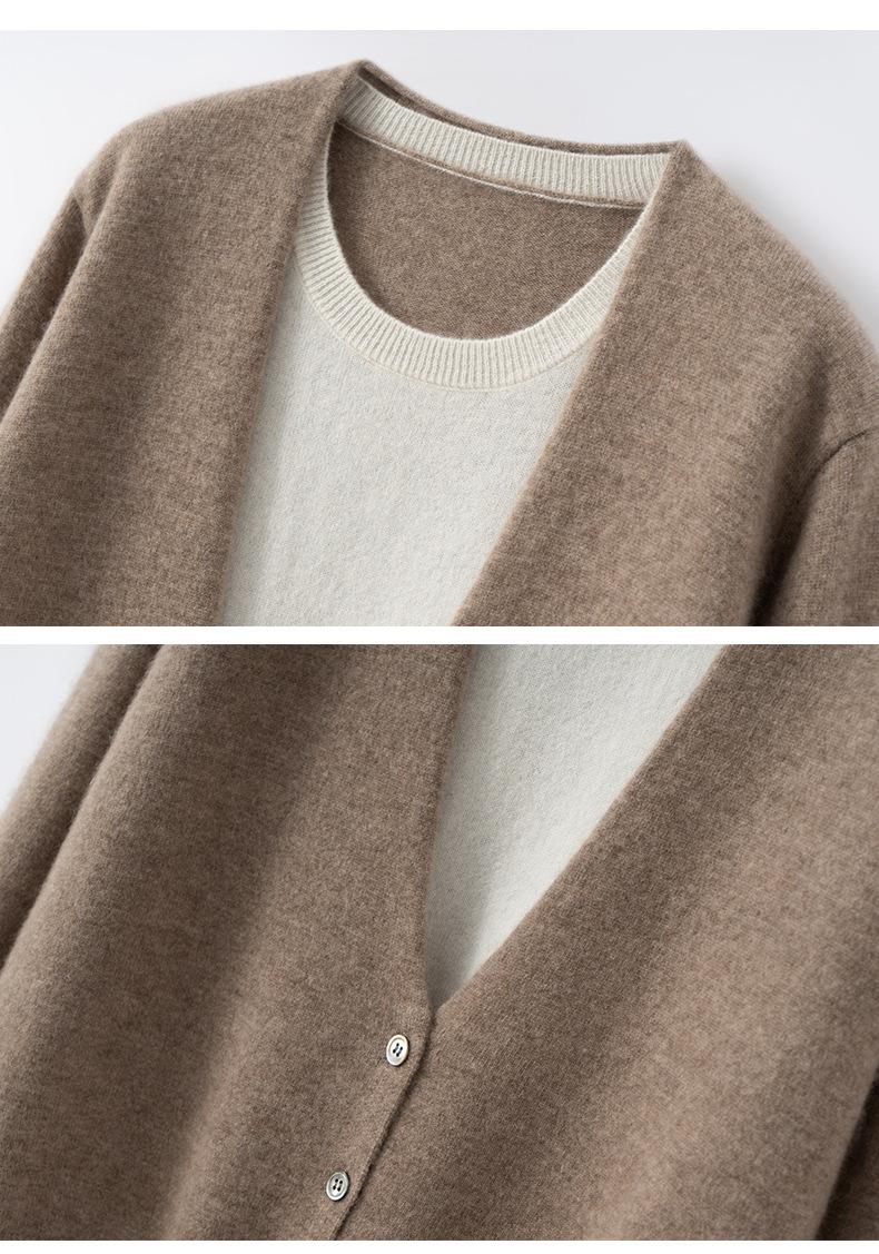 Nuevo suéter de cachemira simple de cuello redondo, montaña casual versátil, capa interior base gruesa, otoño e invierno, cárdigan para mujer