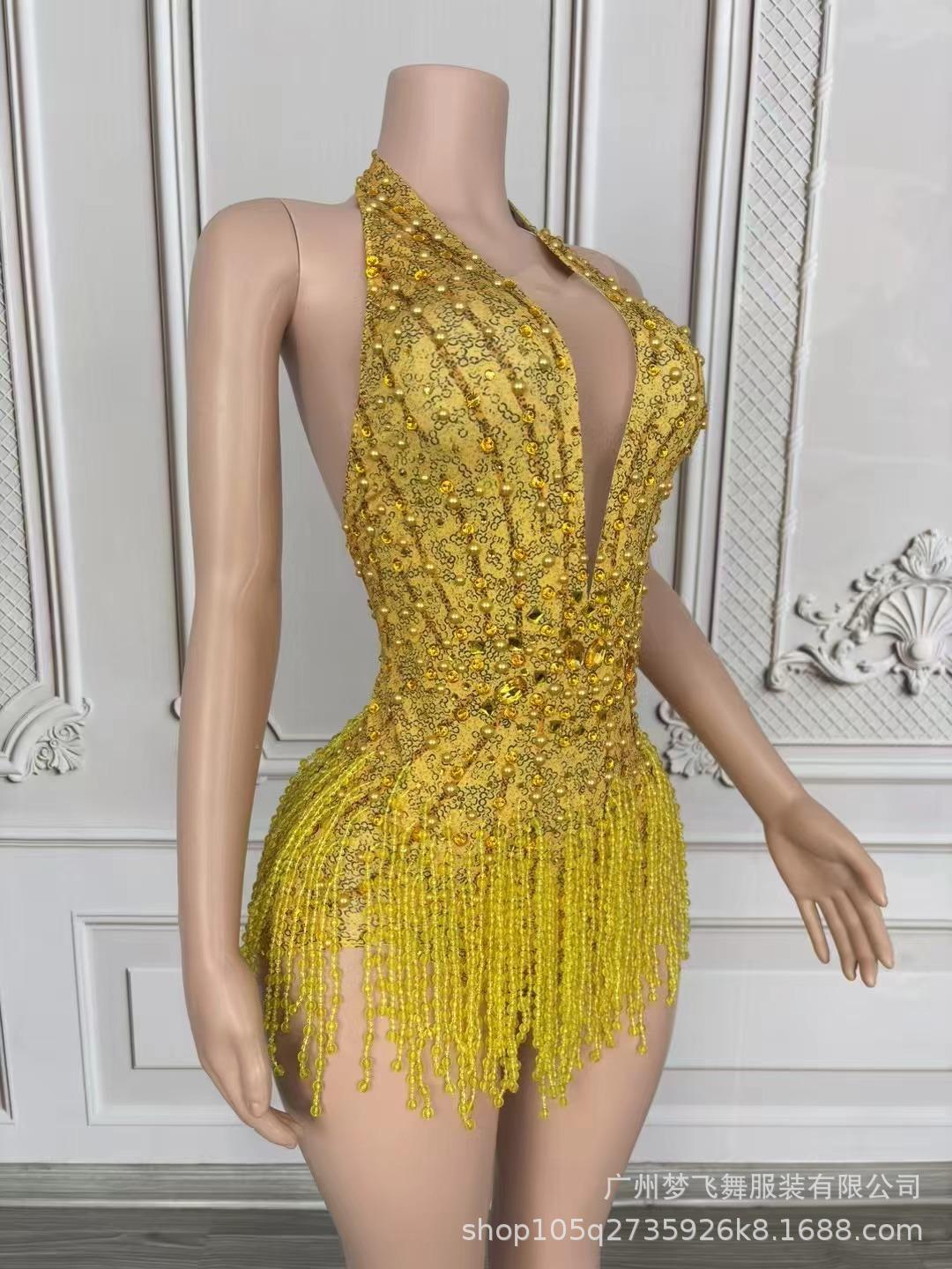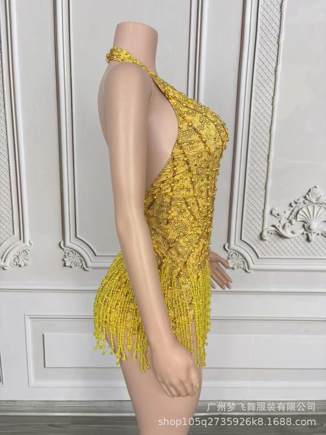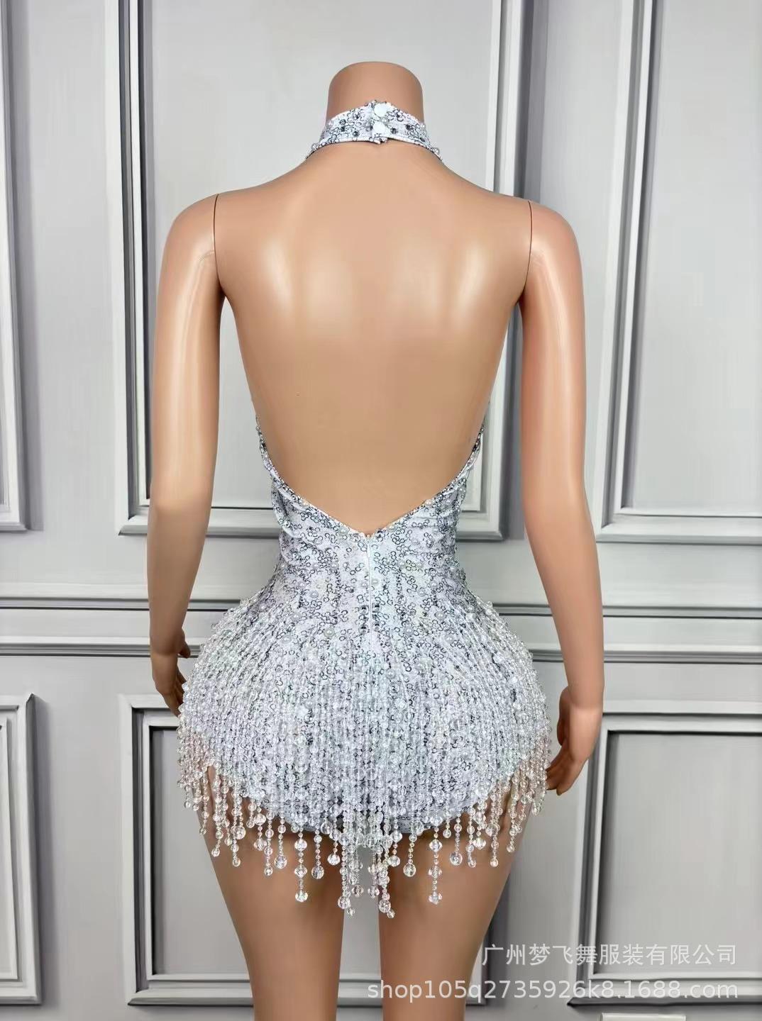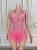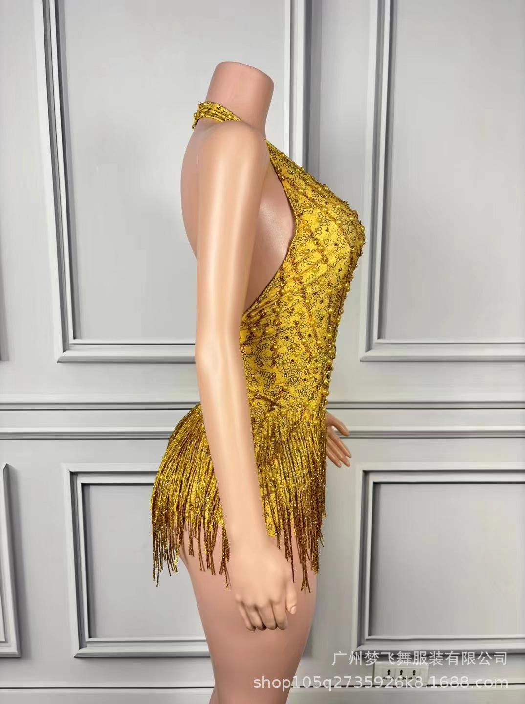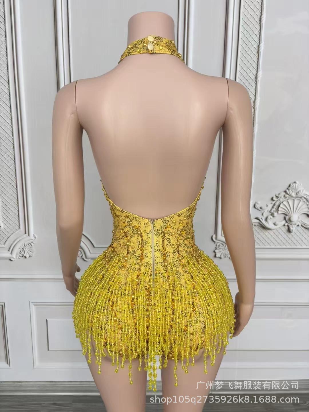 Vestido de Noche Elegante Slim con Cuello Halter y Borlas, Vestido de Gala para Banquete, Cena, Baile, Actuación, Reunión Anual de Empresa, Ropa para Festival de Música