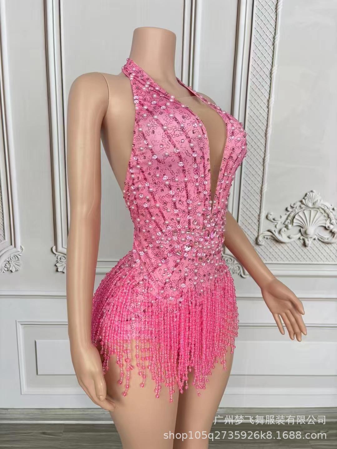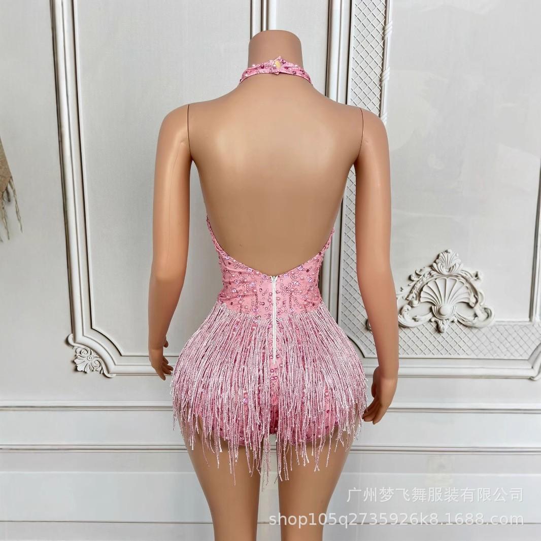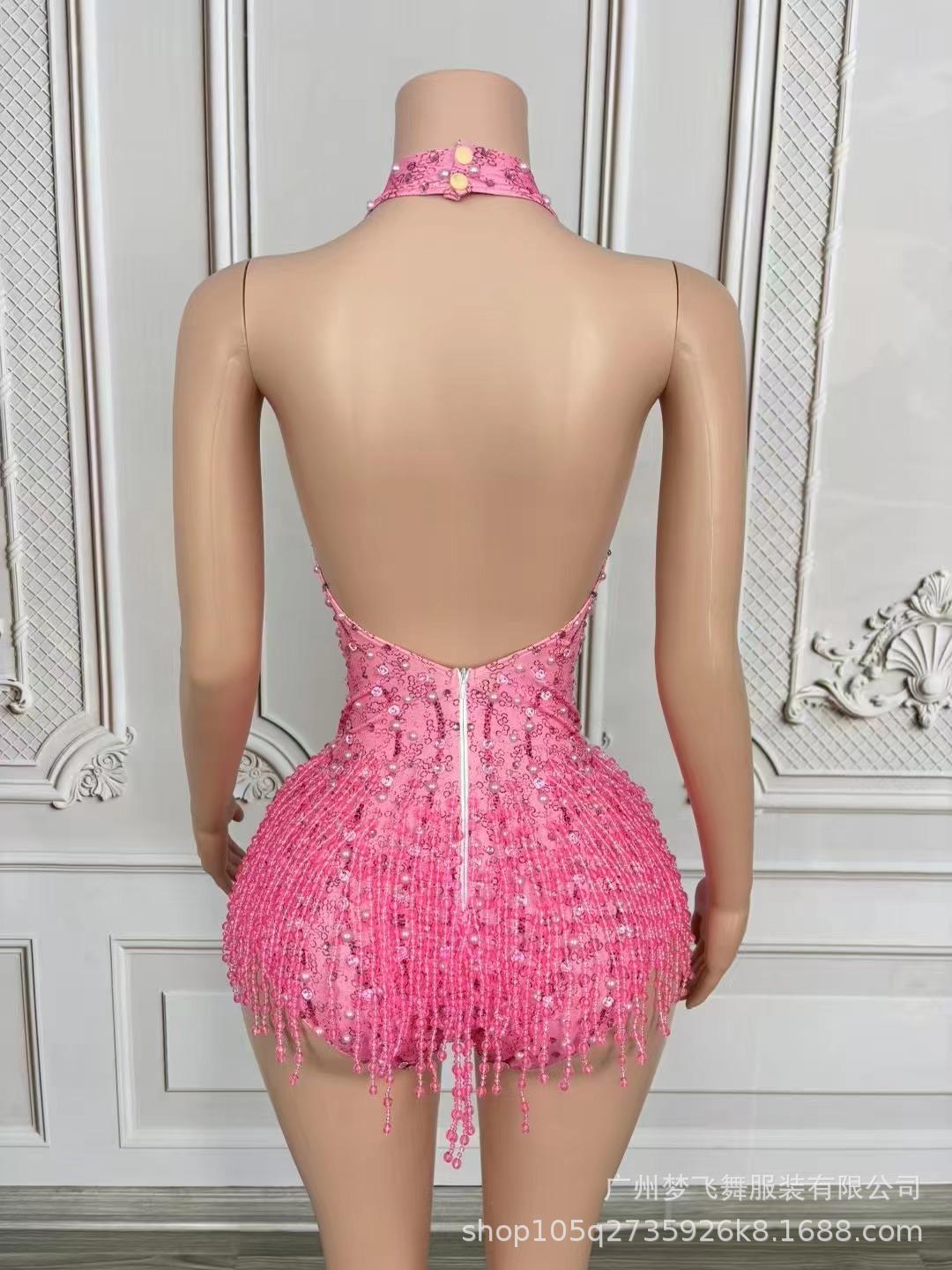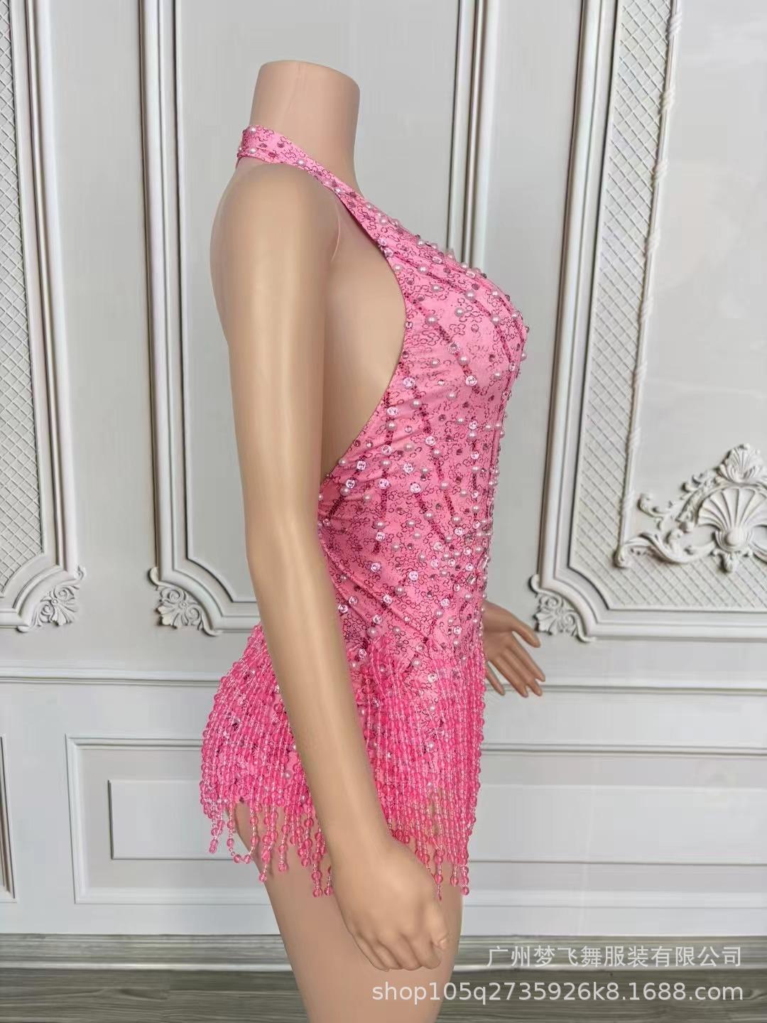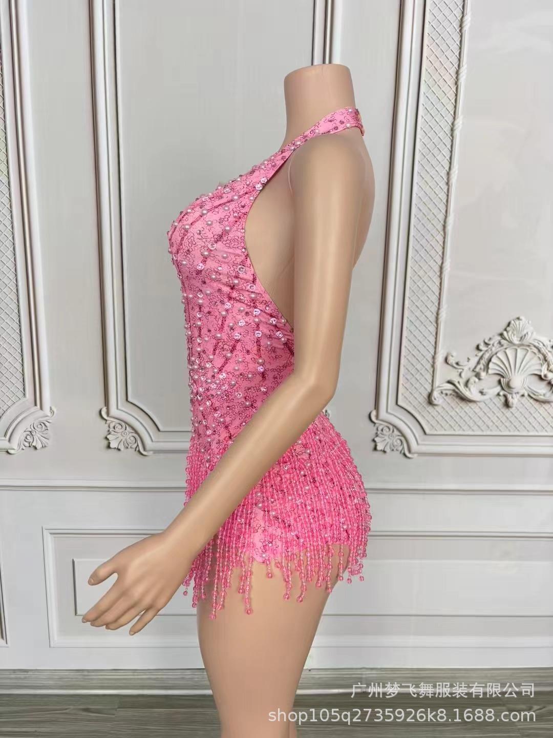 Vestido de Noche Elegante Slim con Cuello Halter y Borlas, Vestido de Gala para Banquete, Cena, Baile, Actuación, Reunión Anual de Empresa, Ropa para Festival de Música