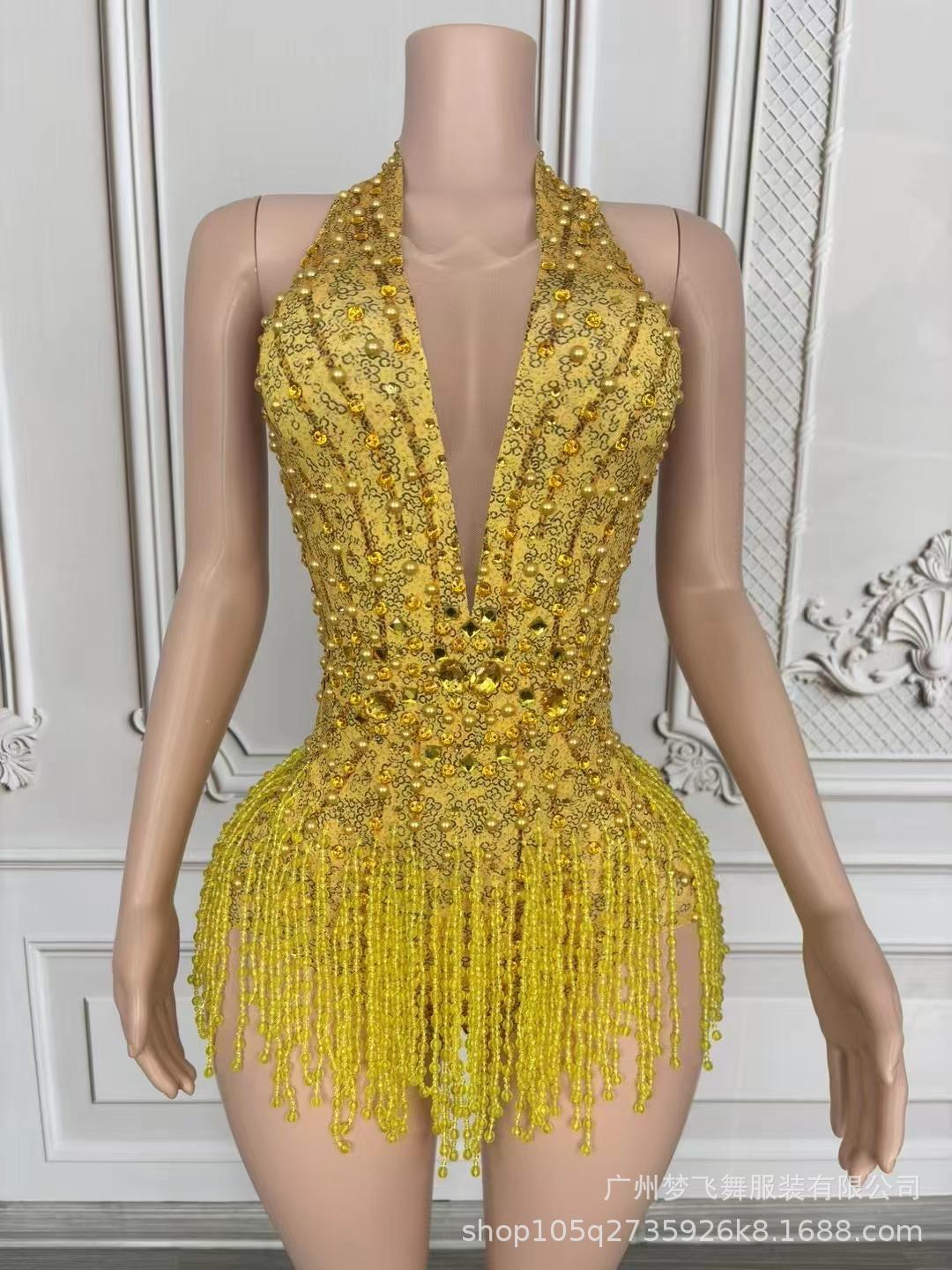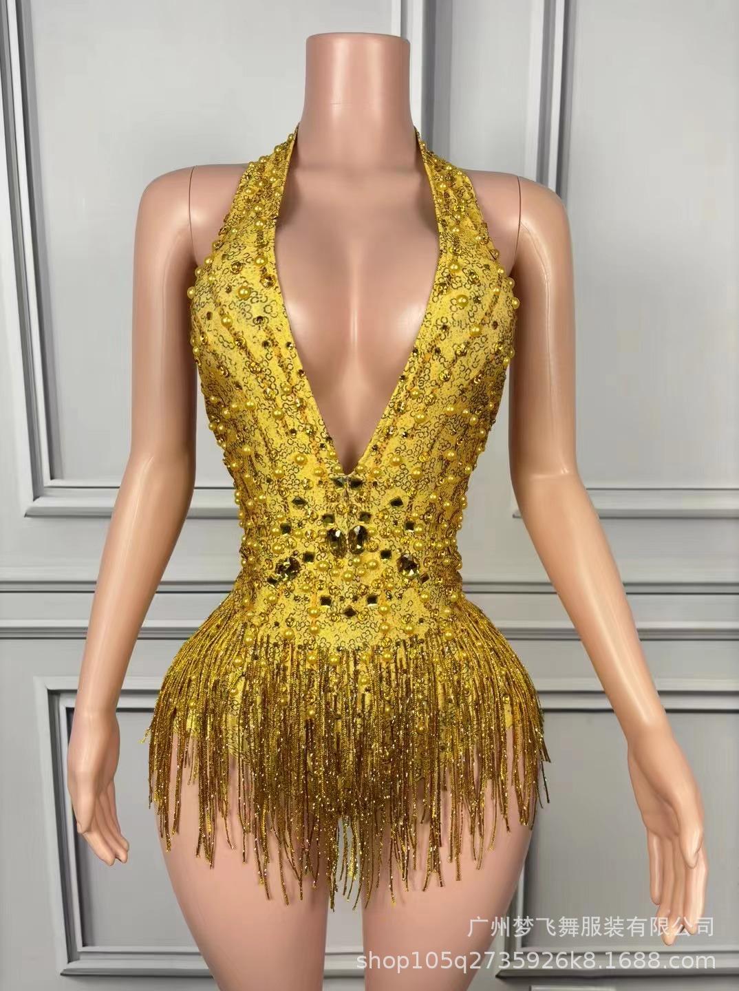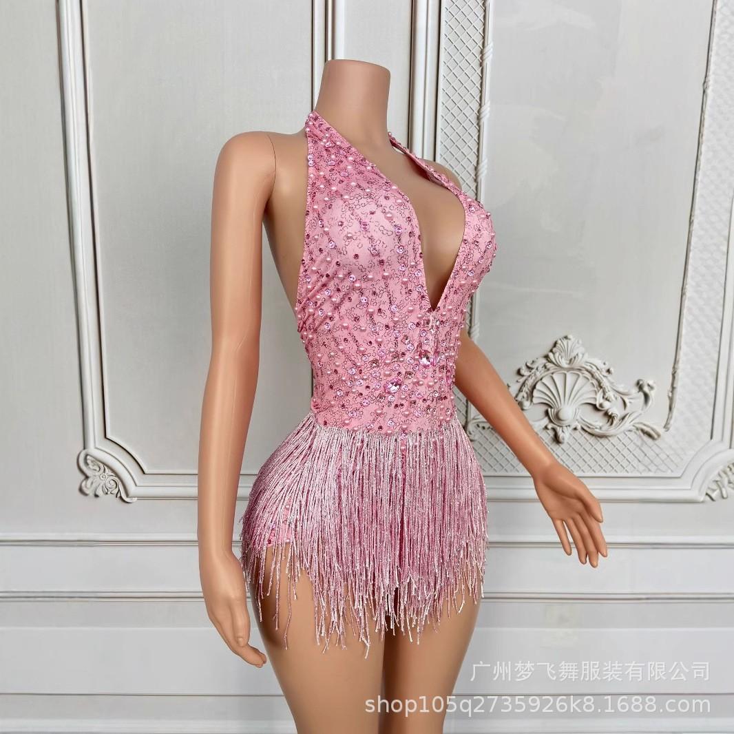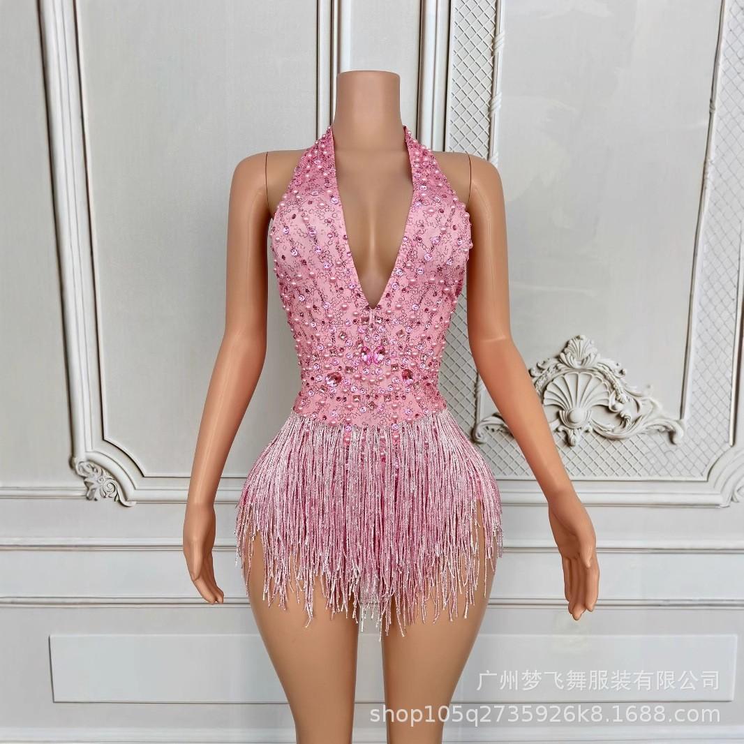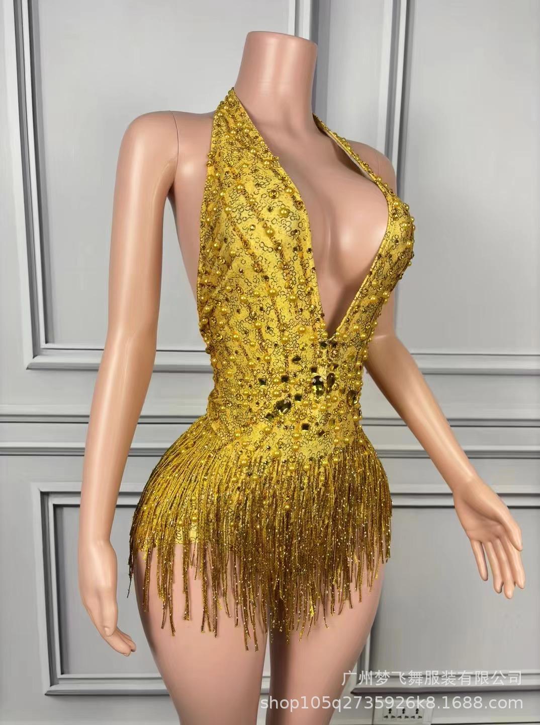 Vestido de Noche Elegante Slim con Cuello Halter y Borlas, Vestido de Gala para Banquete, Cena, Baile, Actuación, Reunión Anual de Empresa, Ropa para Festival de Música