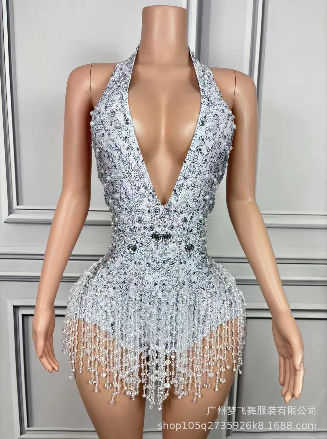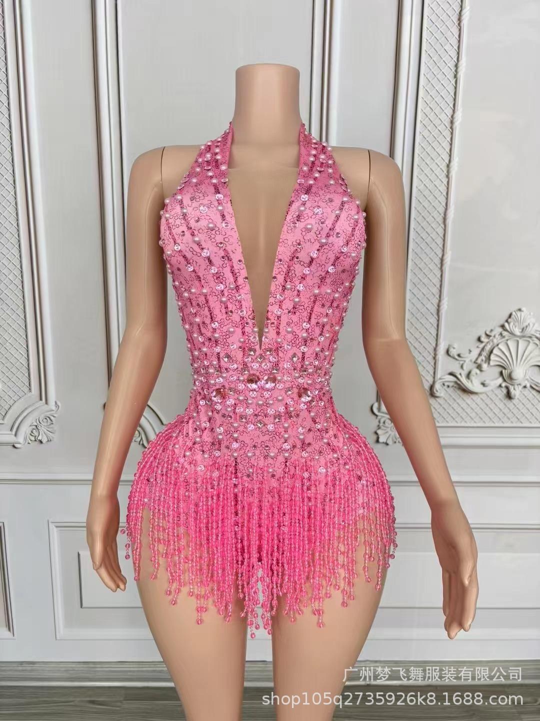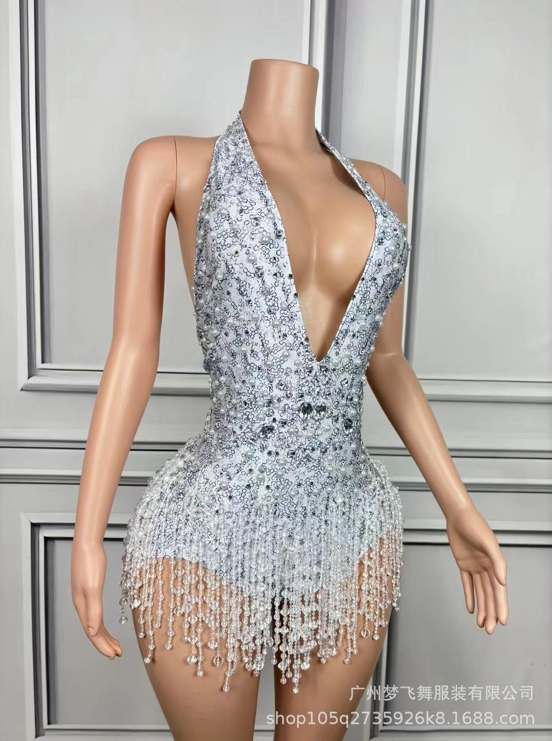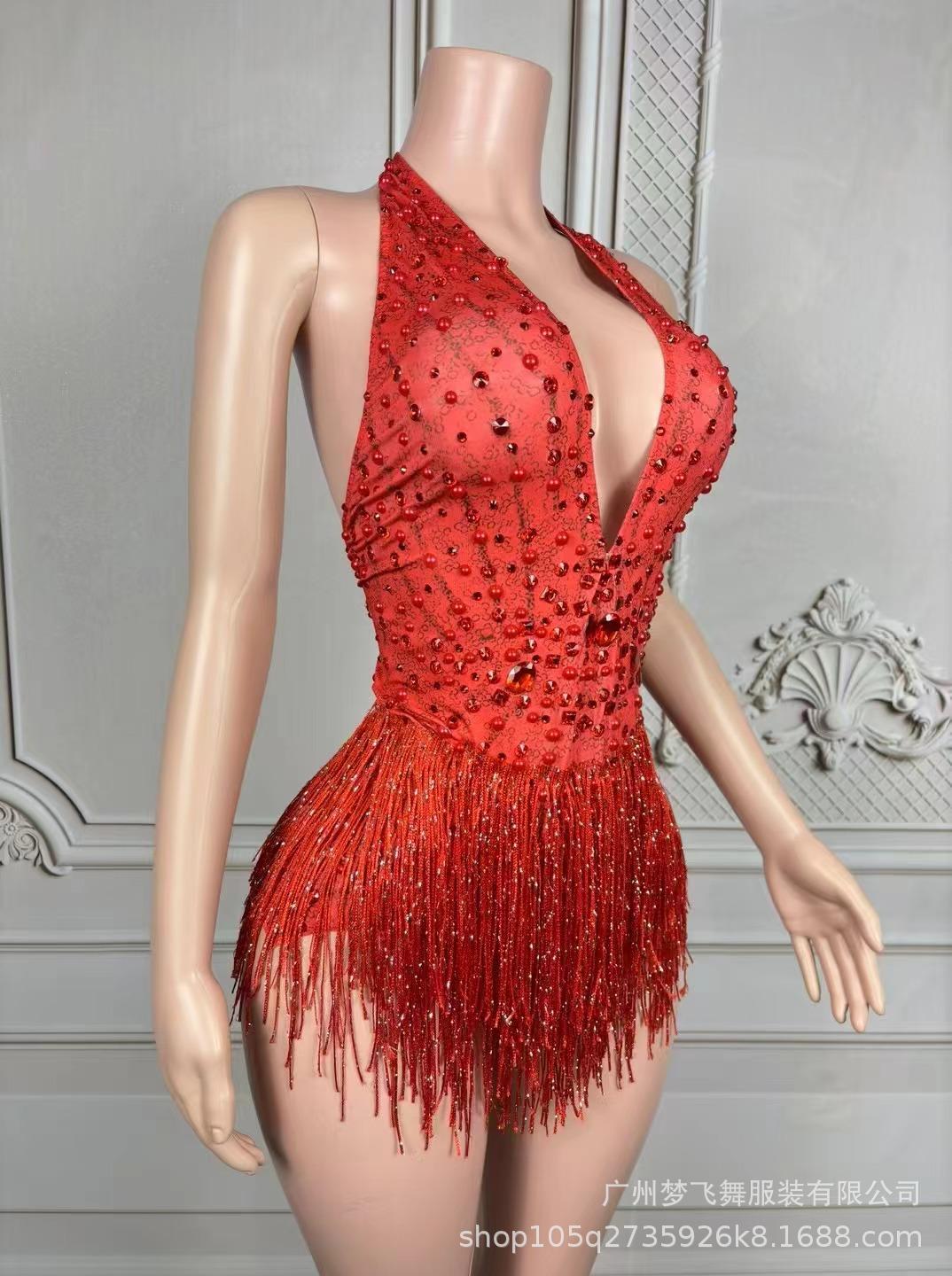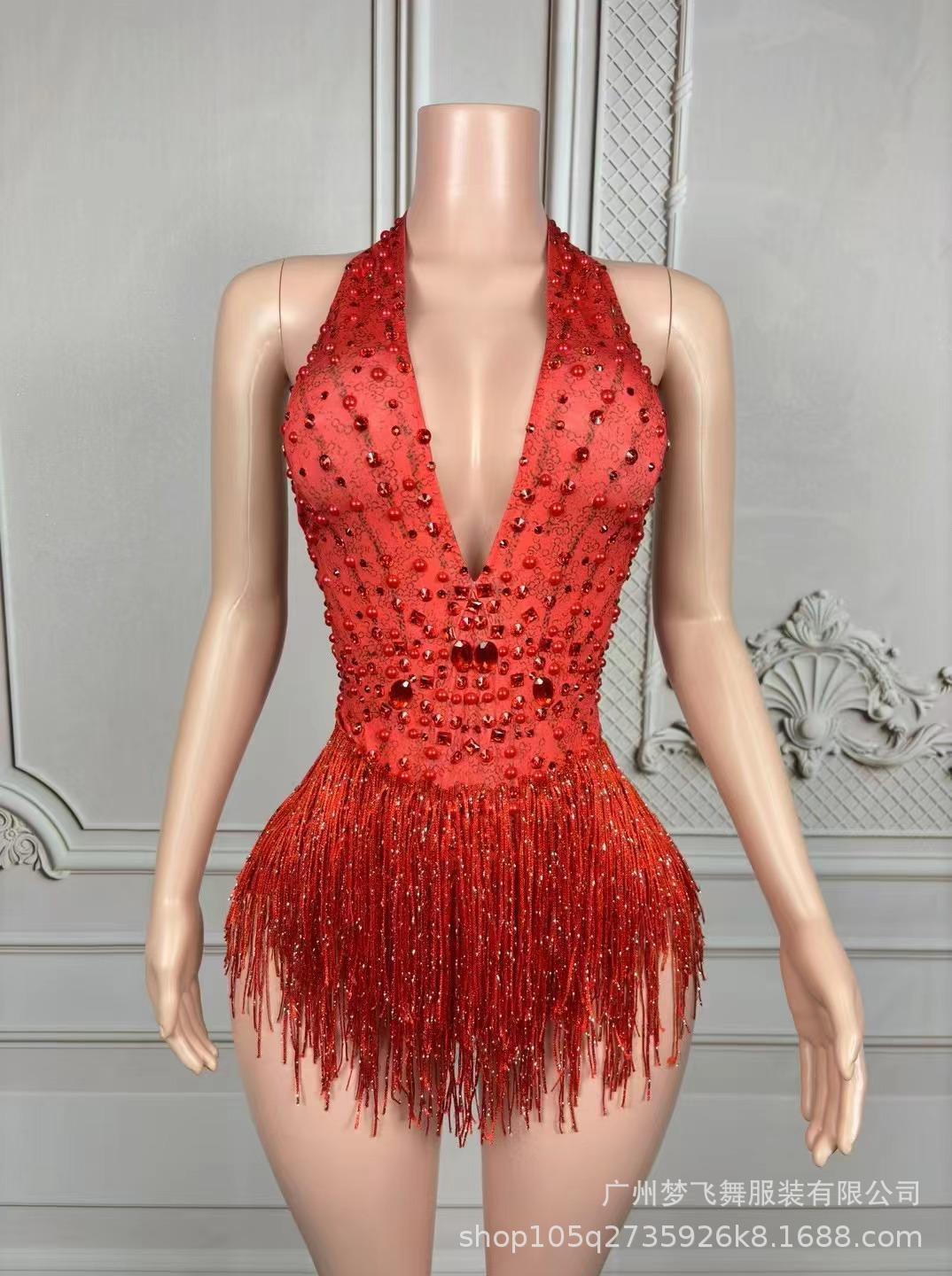 Vestido de Noche Elegante Slim con Cuello Halter y Borlas, Vestido de Gala para Banquete, Cena, Baile, Actuación, Reunión Anual de Empresa, Ropa para Festival de Música