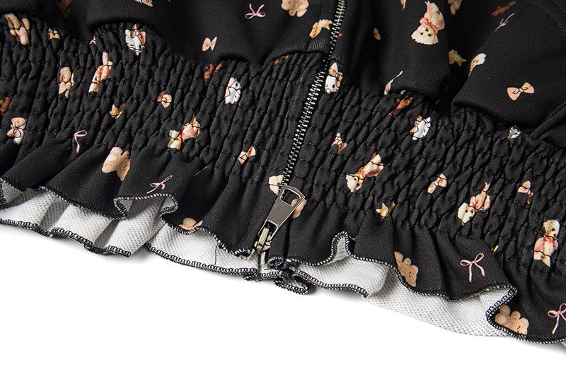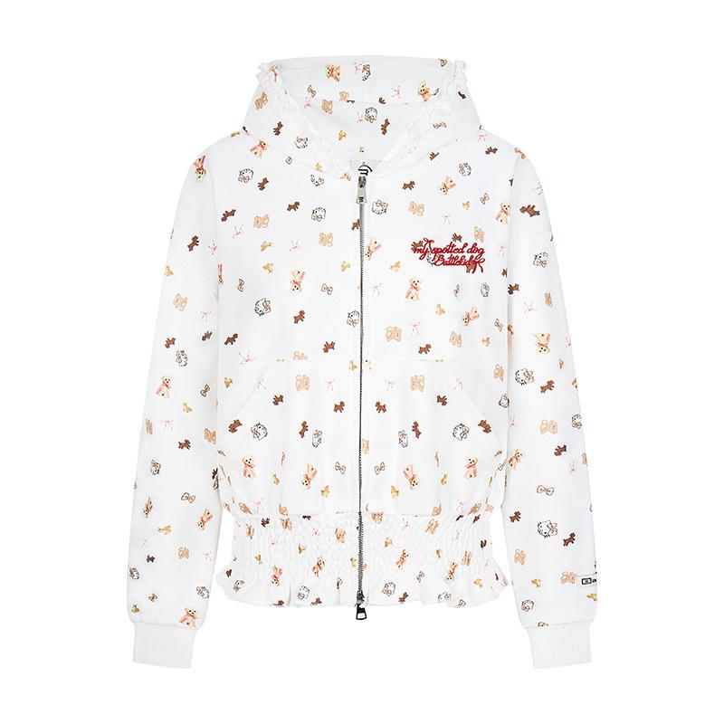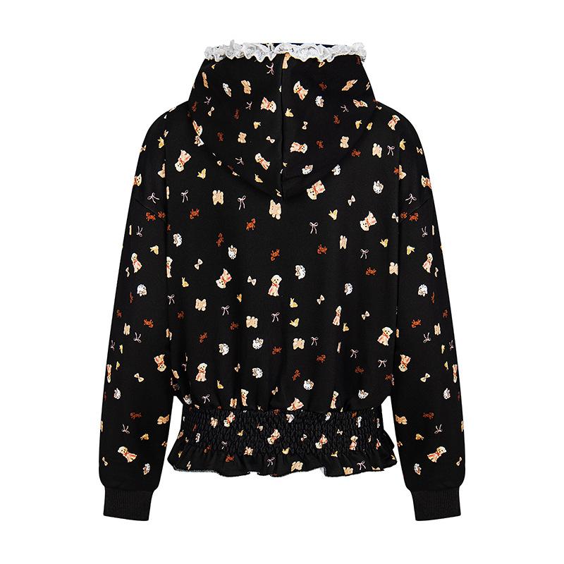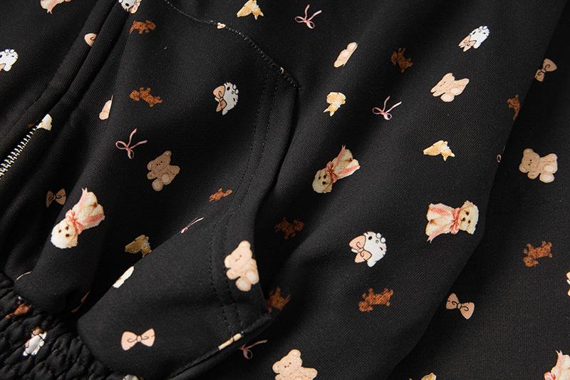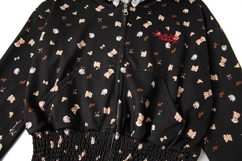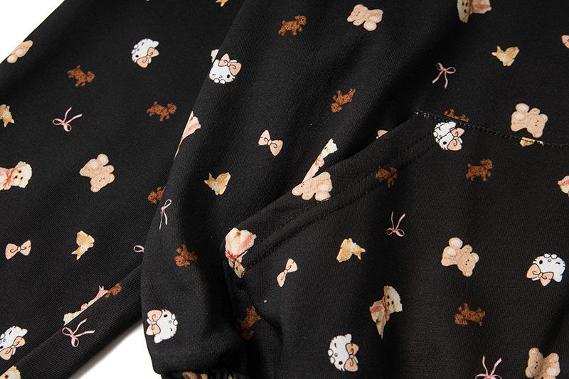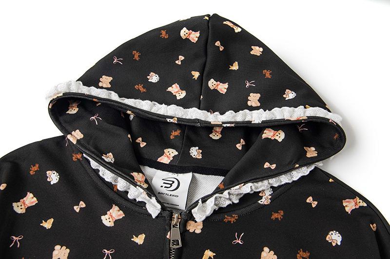 Sudadera con capucha bordada con gatitos y estampado integral retro americano 2025 para mujer, nueva sudadera cárdigan de estilo holgazán para otoño/invierno
