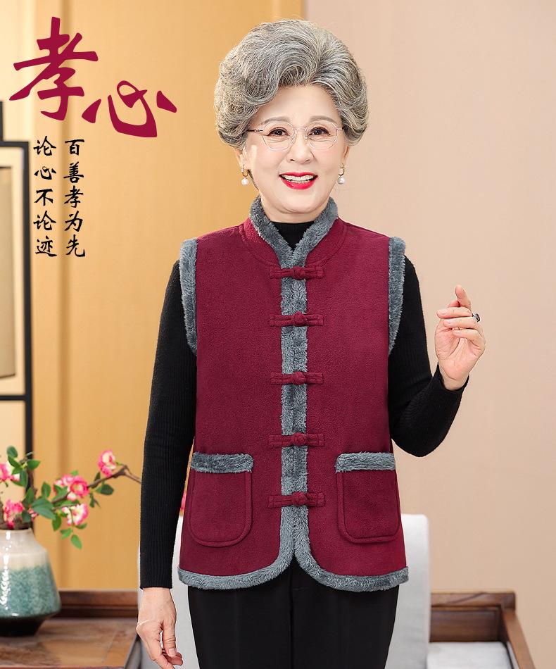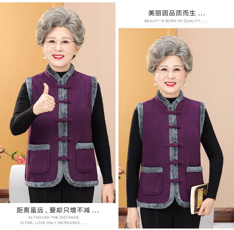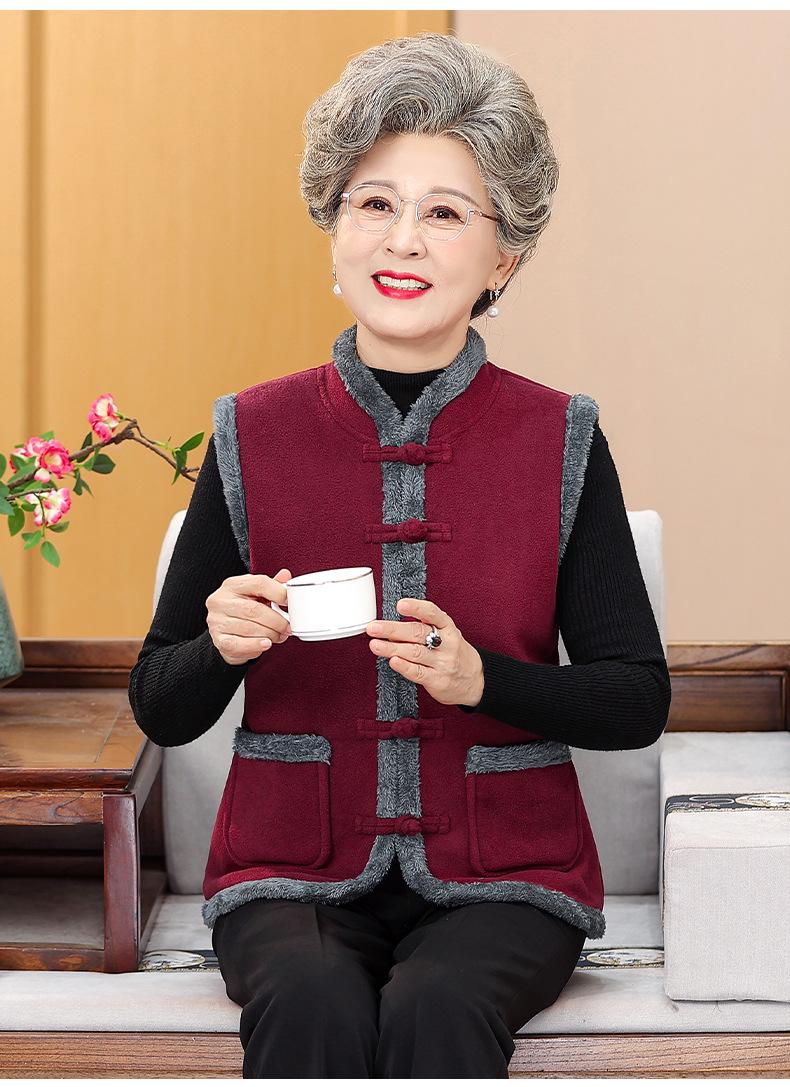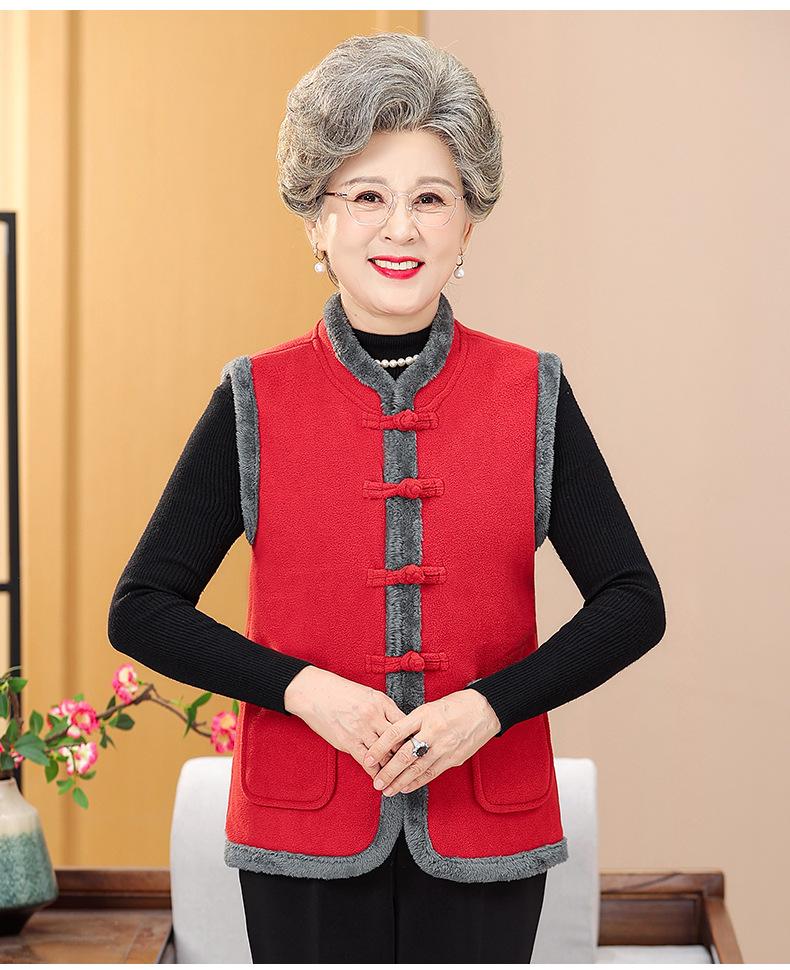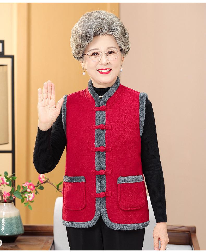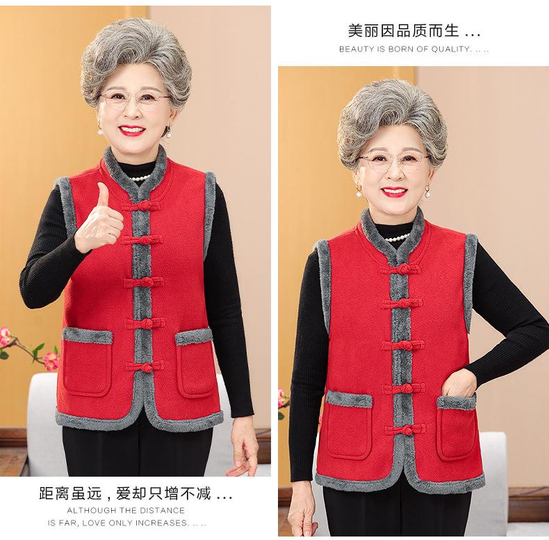 Nuevo Chaleco de Invierno para Mamá de Mediana Edad Estilo Chino Cuello Alto Ropa para Mujeres de Mediana Edad y Ancianas Chaqueta sin Mangas Chaleco Acolchado con Forro Polar Ropa Exterior de Invierno
