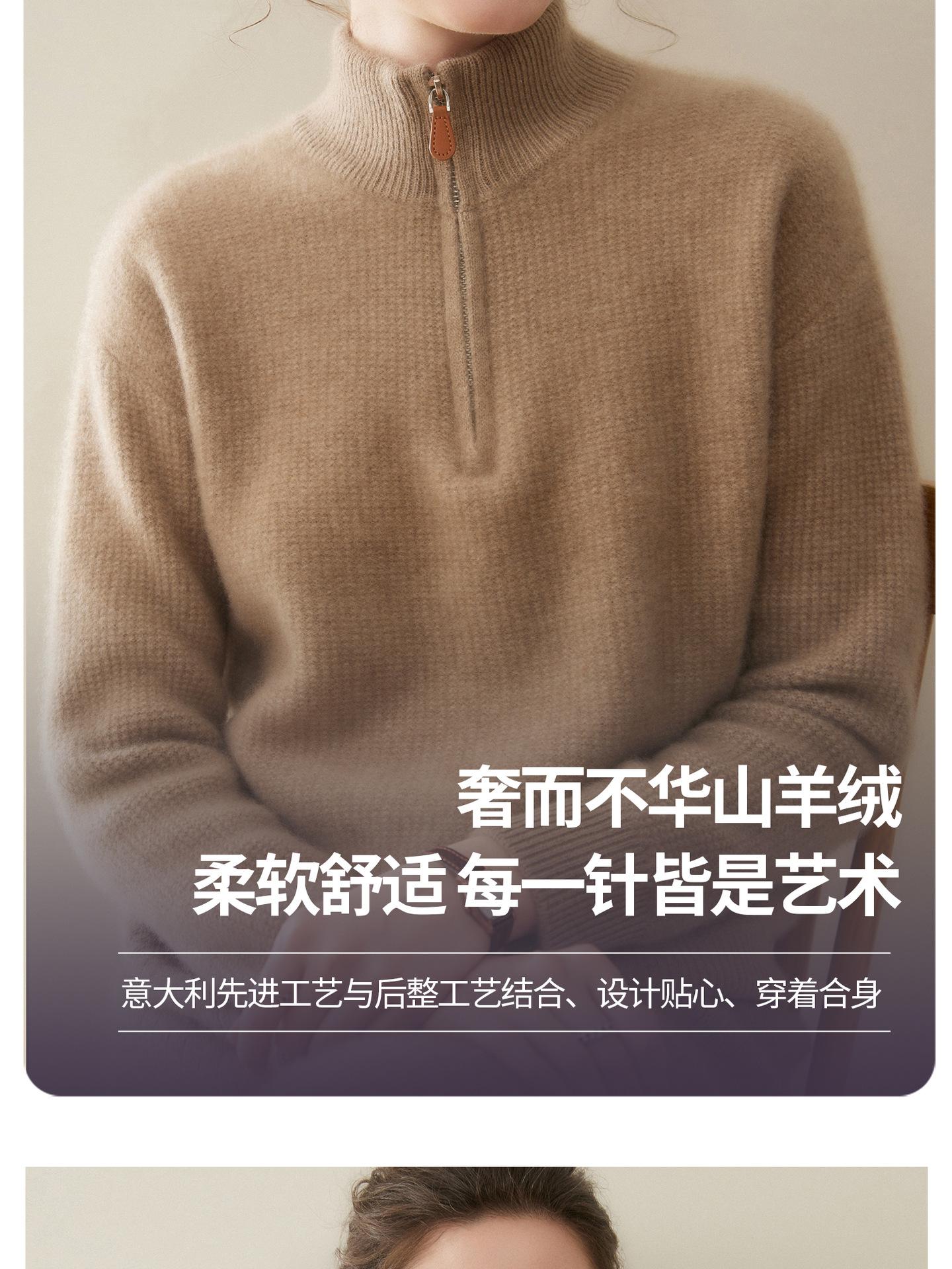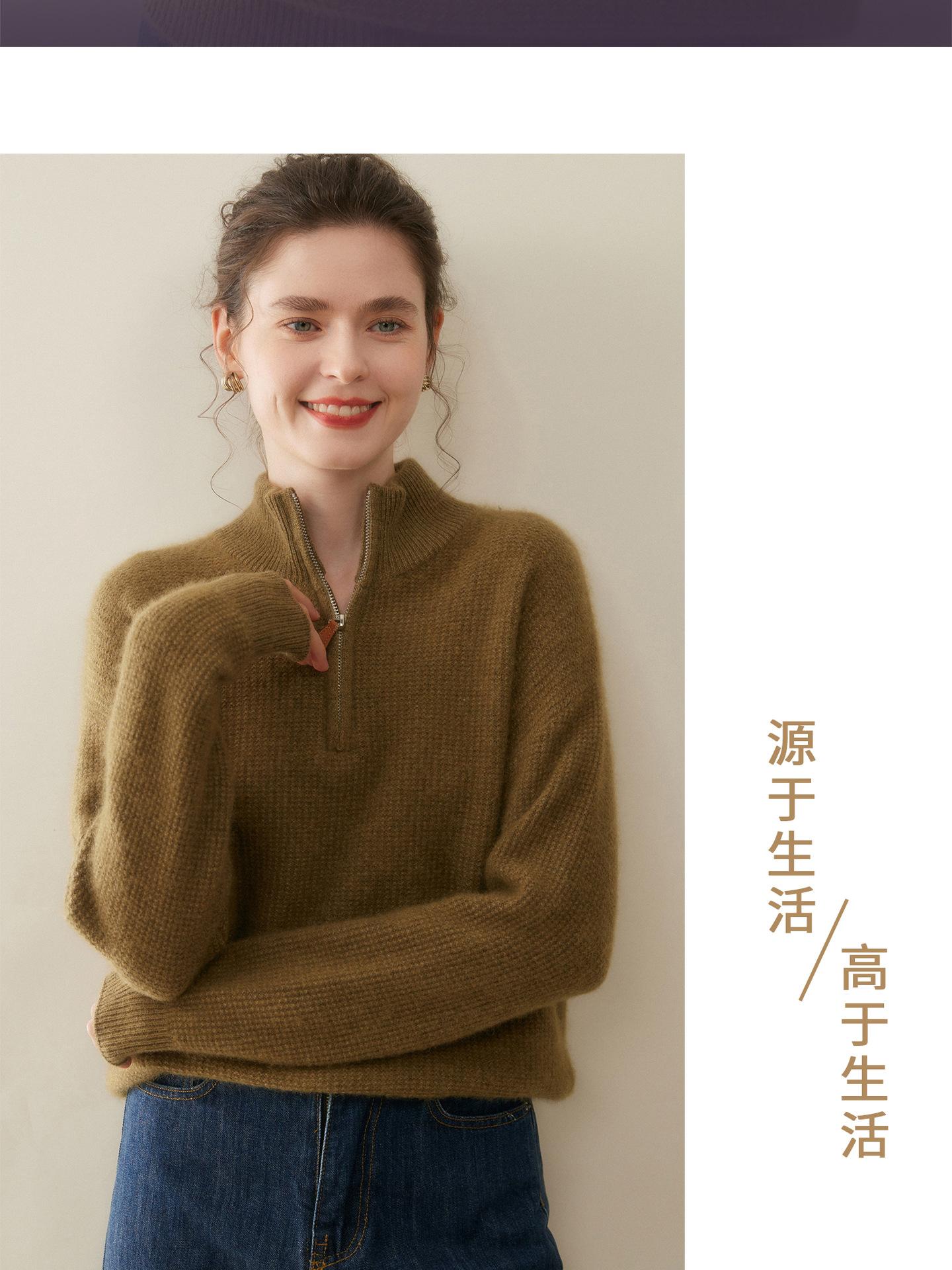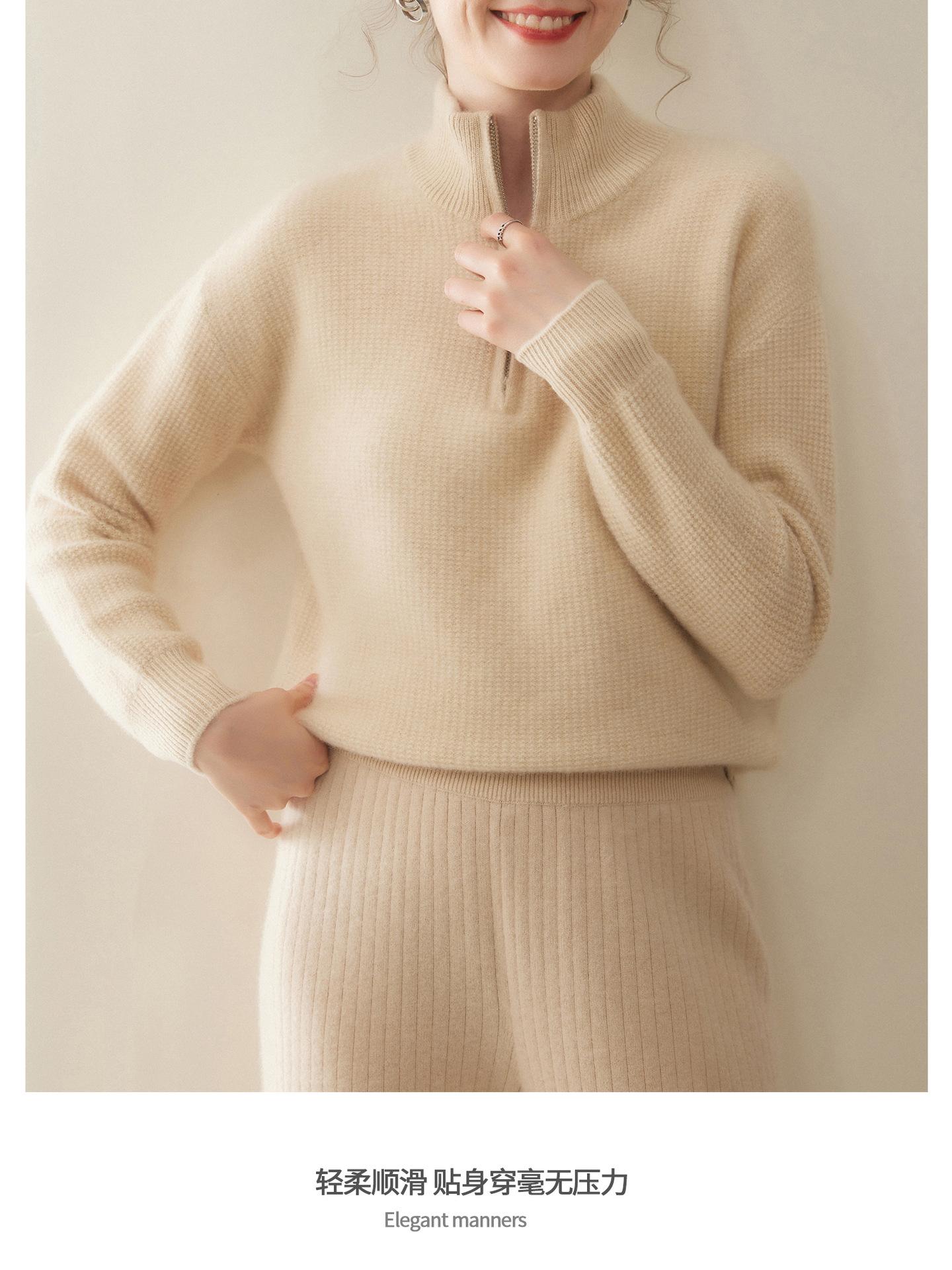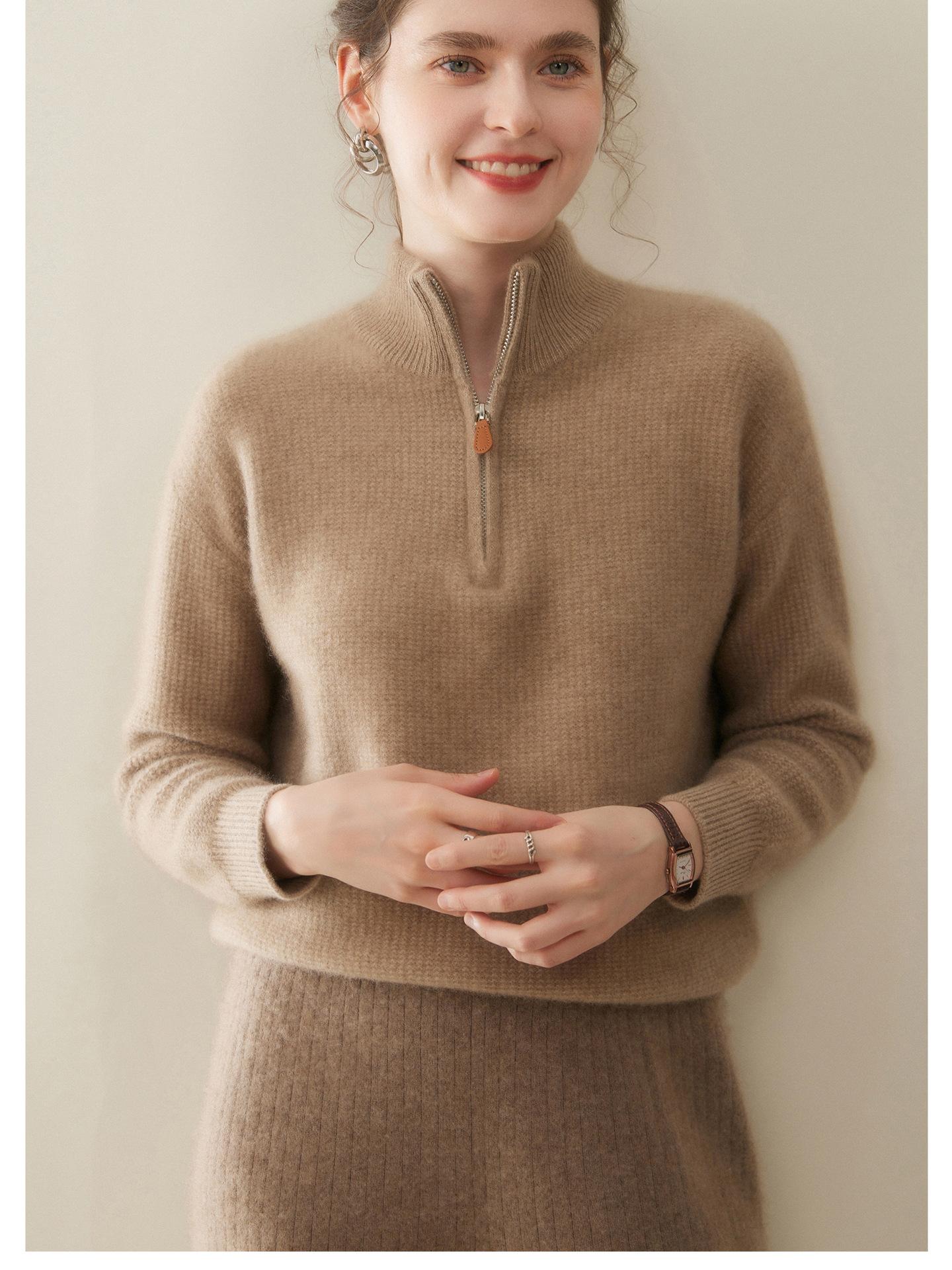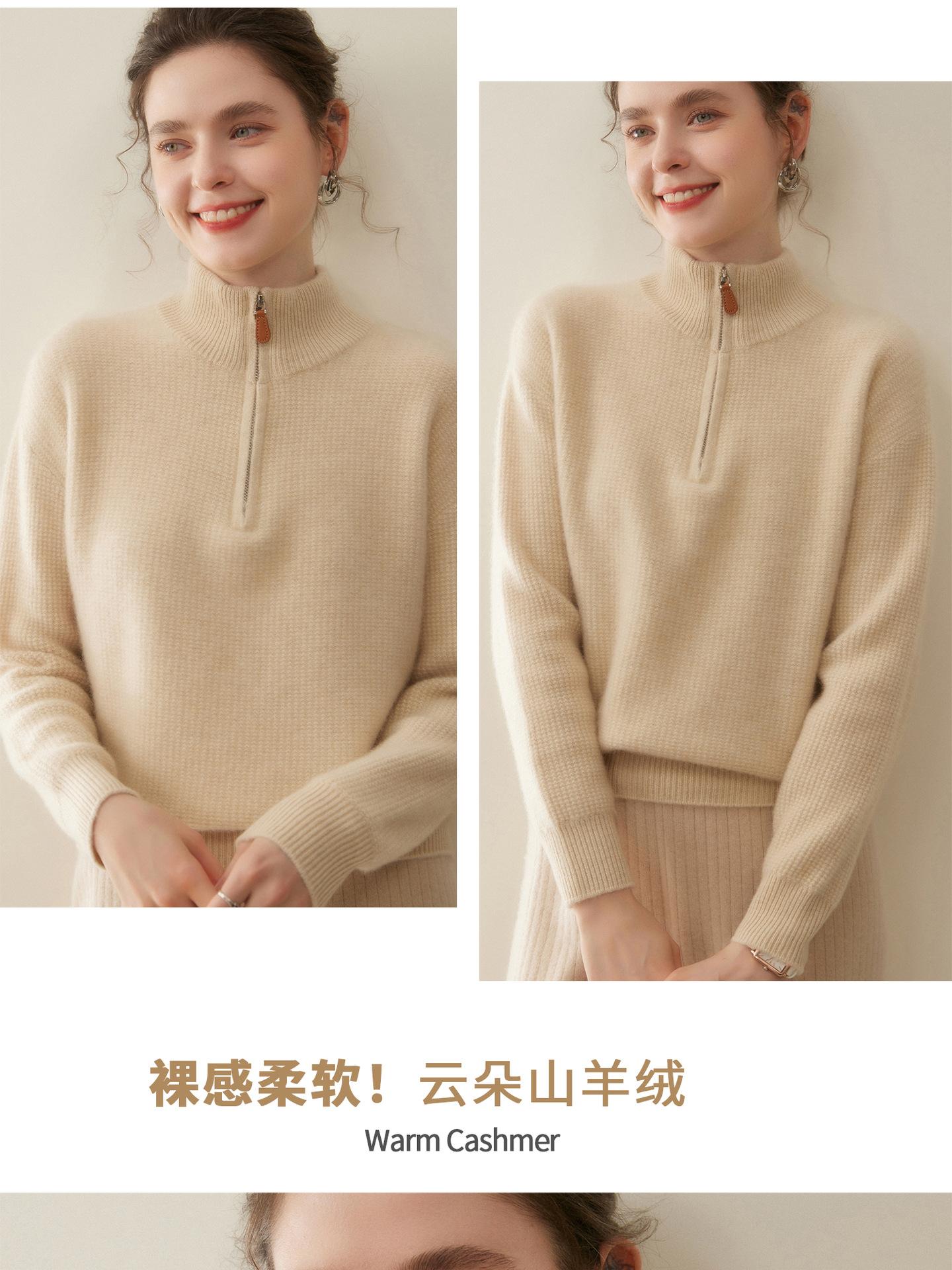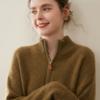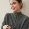 Suéter de Cachemira de Media Cremallera para Mujer Otoño 2025 Nuevo Cuello Alto Grueso Suelto Jersey de Punto Venta al por Mayor