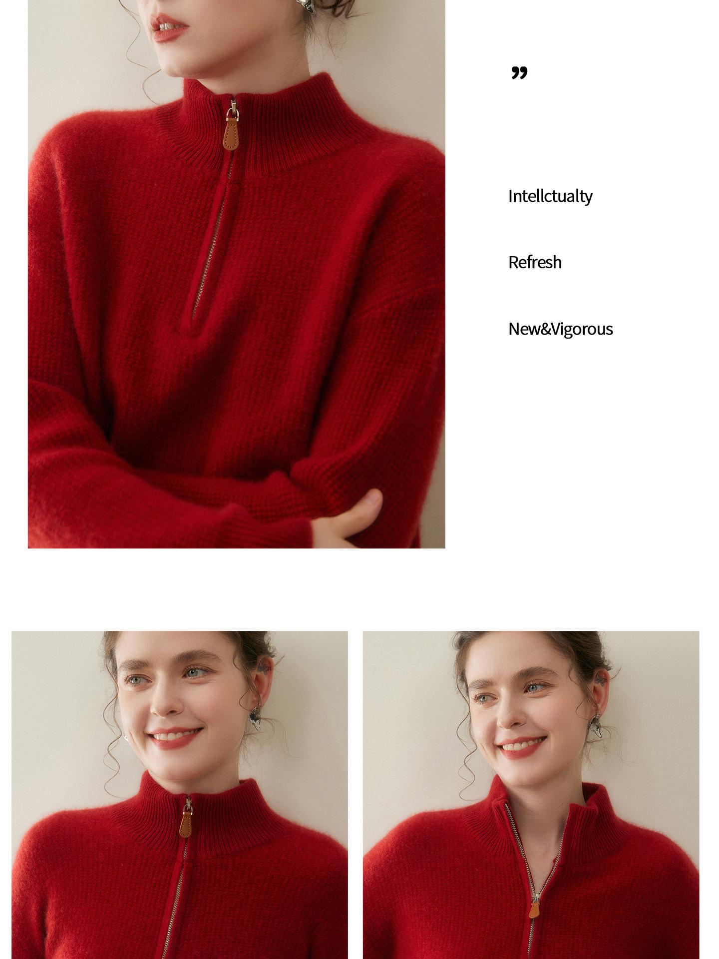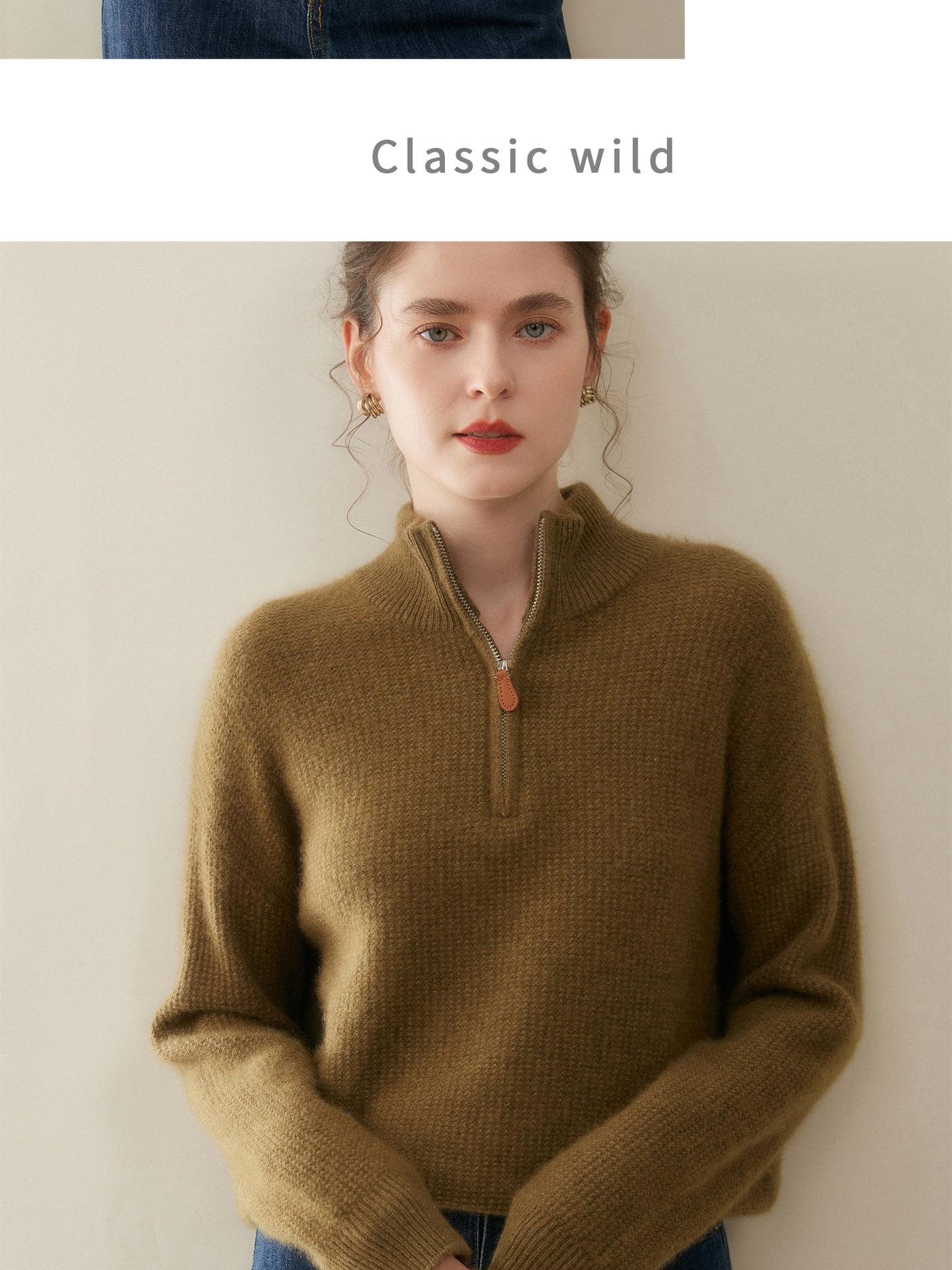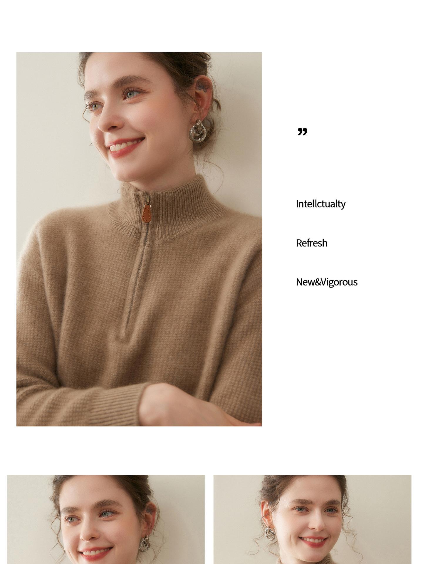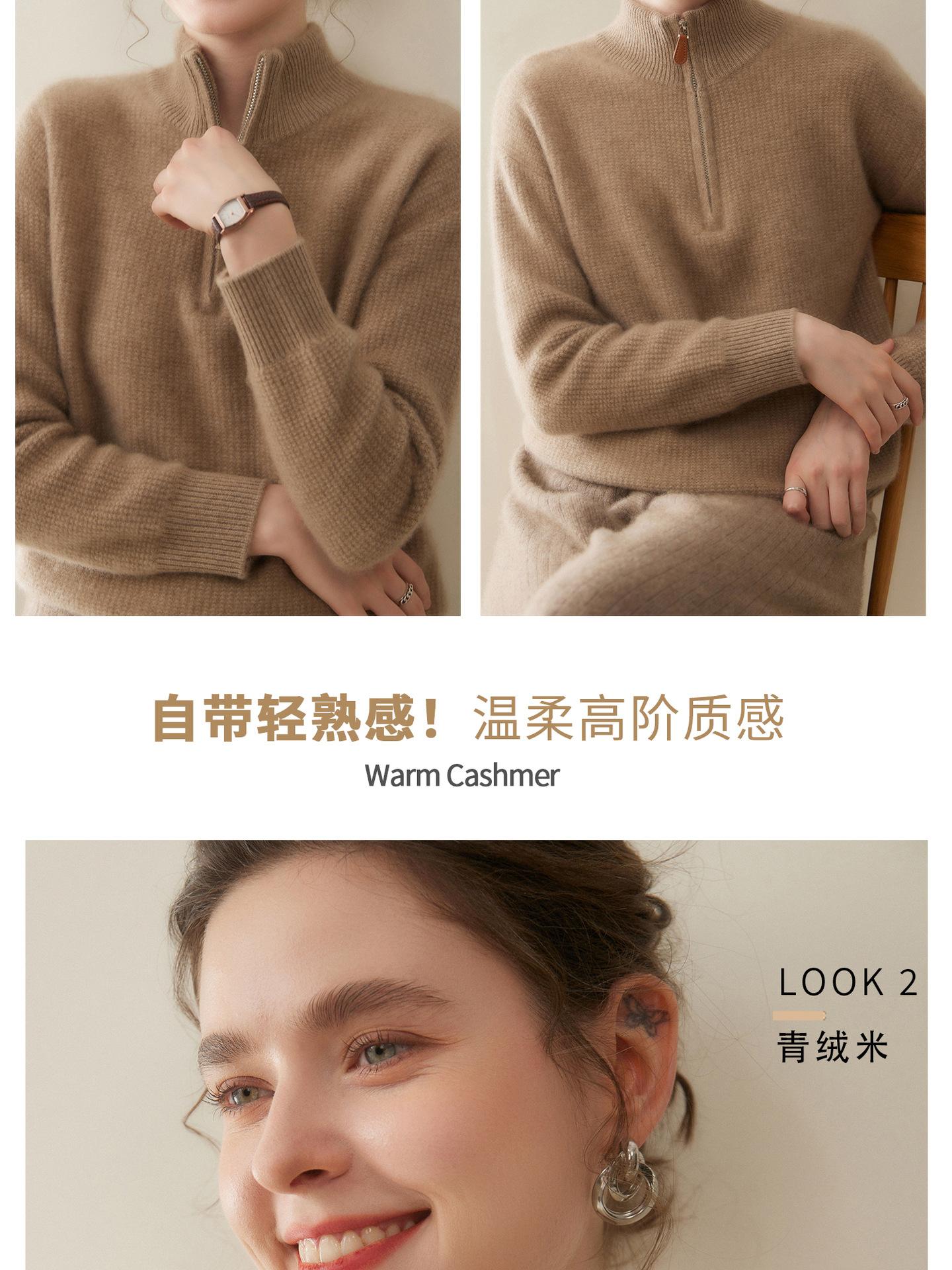 Suéter de Cachemira de Media Cremallera para Mujer Otoño 2025 Nuevo Cuello Alto Grueso Suelto Jersey de Punto Venta al por Mayor