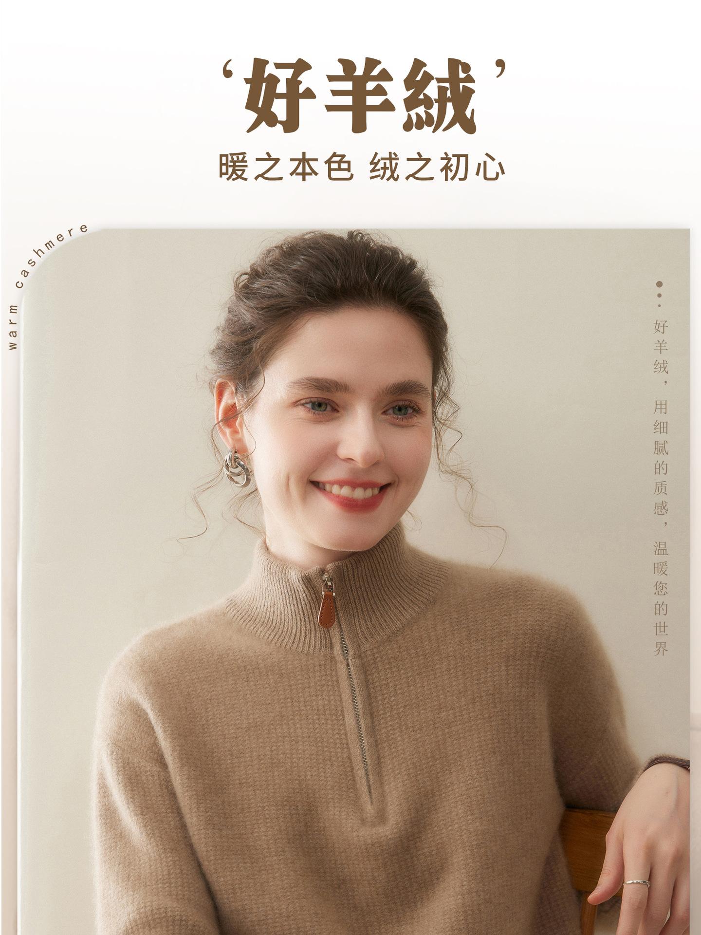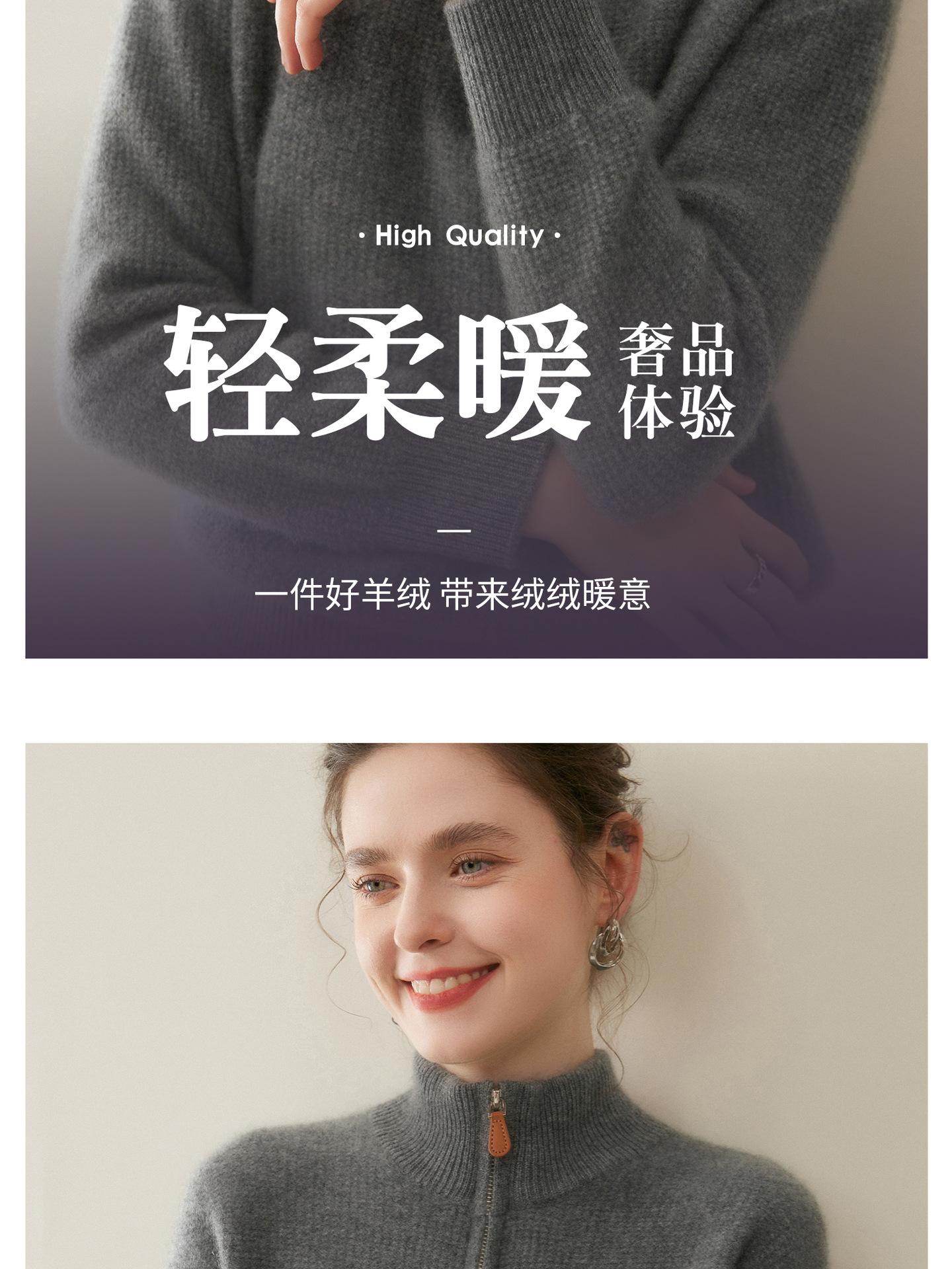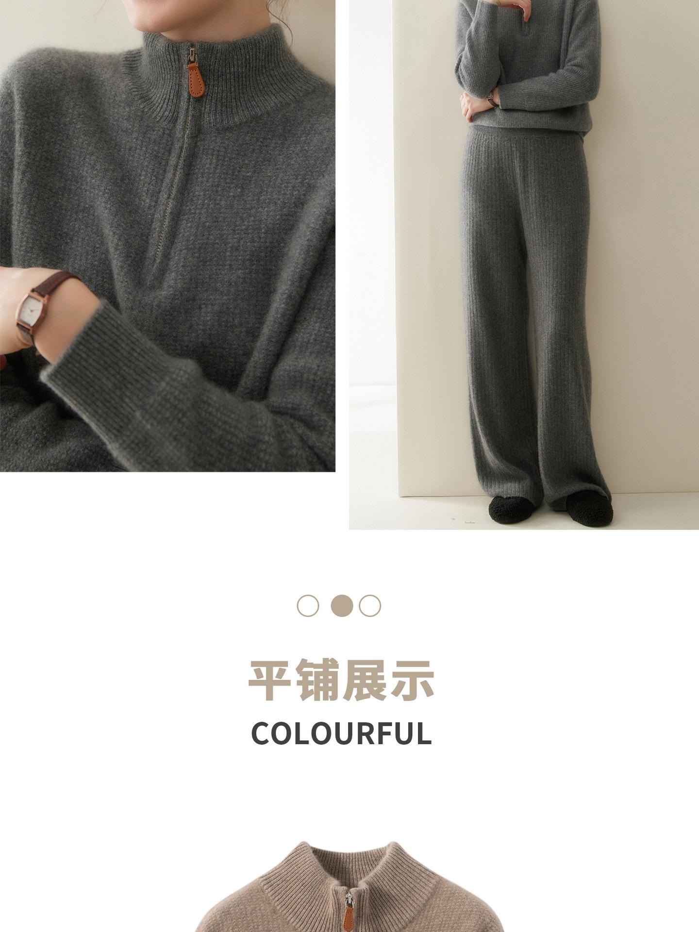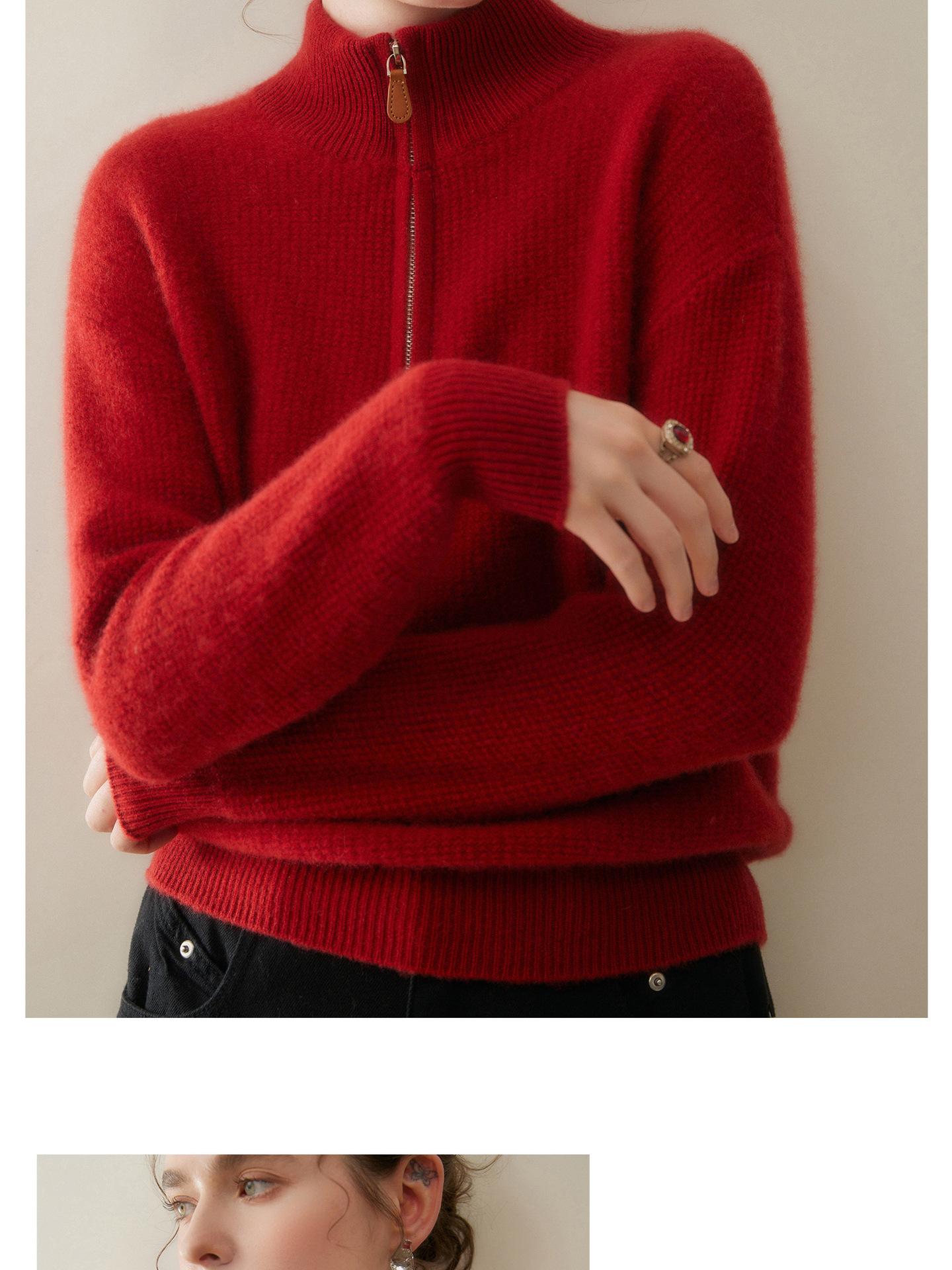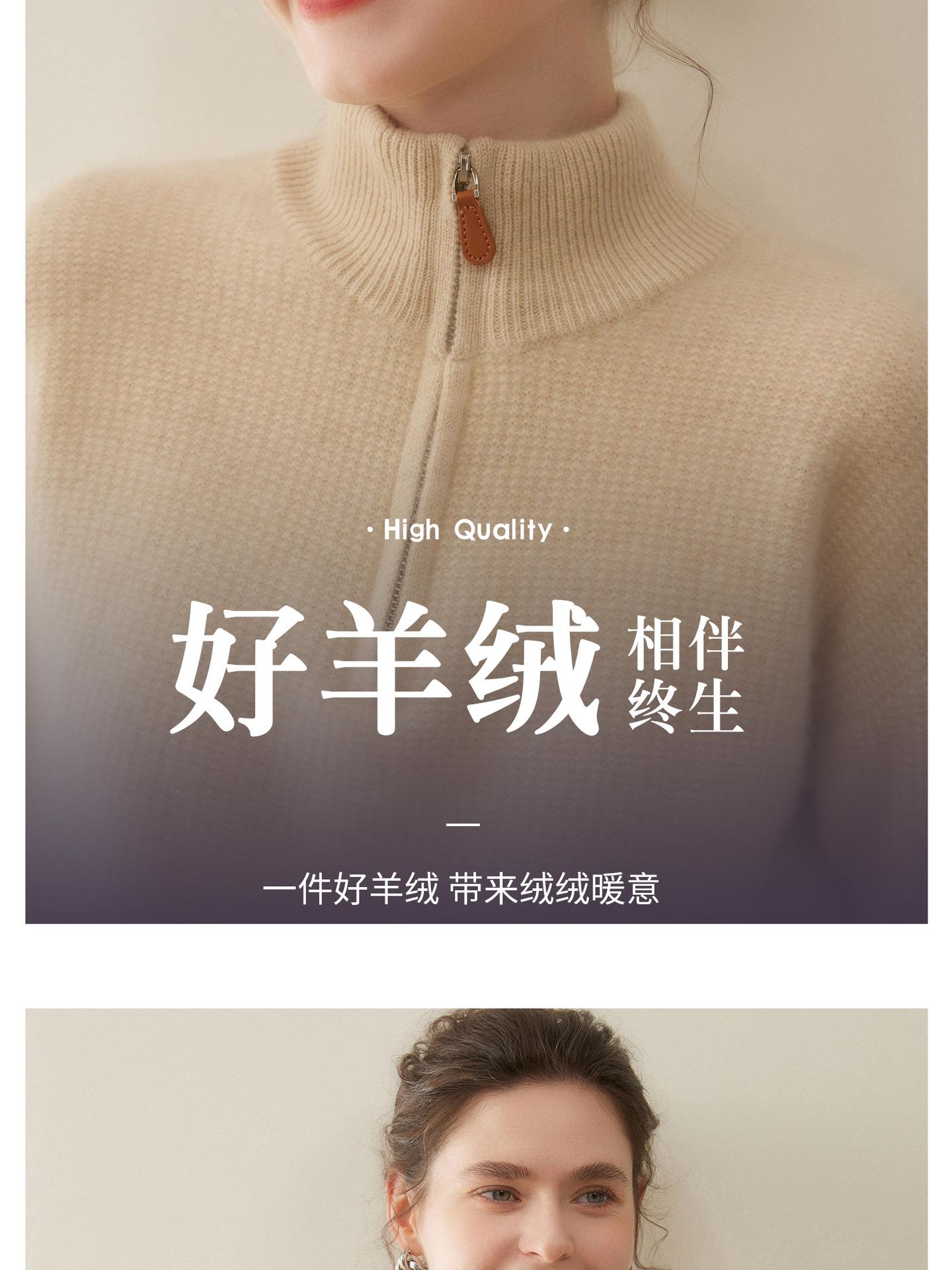 Suéter de Cachemira de Media Cremallera para Mujer Otoño 2025 Nuevo Cuello Alto Grueso Suelto Jersey de Punto Venta al por Mayor