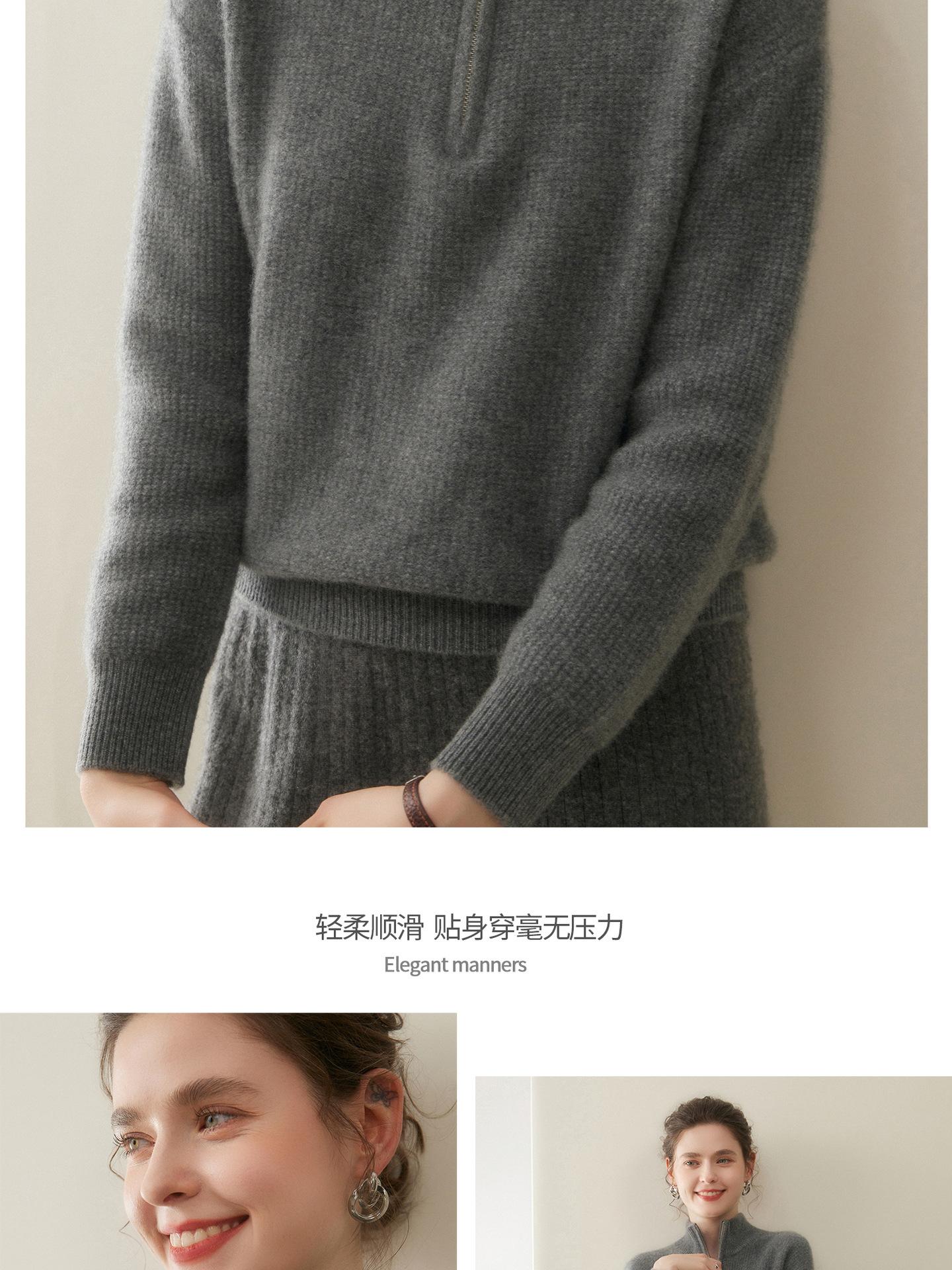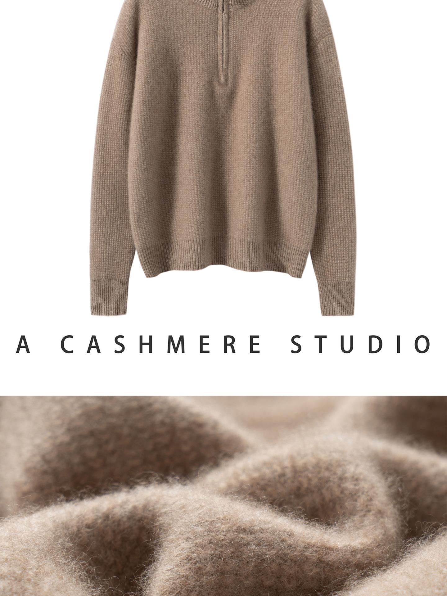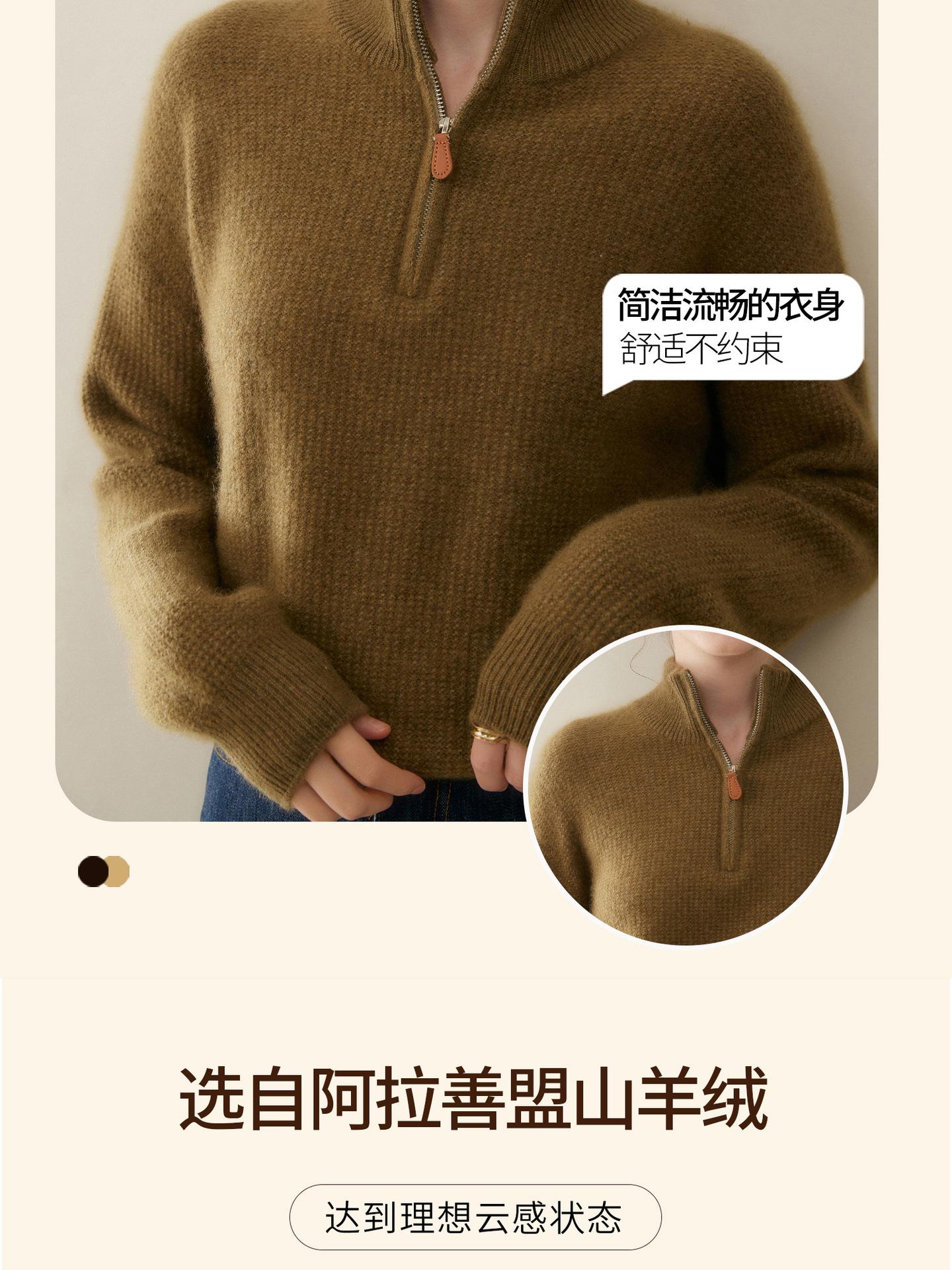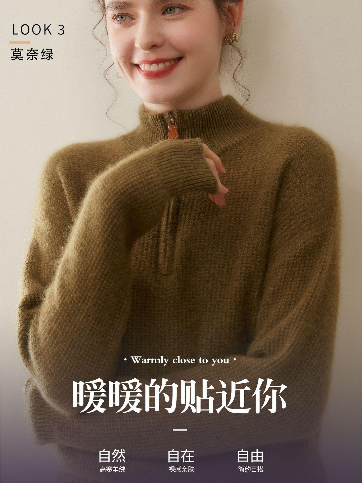 Suéter de Cachemira de Media Cremallera para Mujer Otoño 2025 Nuevo Cuello Alto Grueso Suelto Jersey de Punto Venta al por Mayor