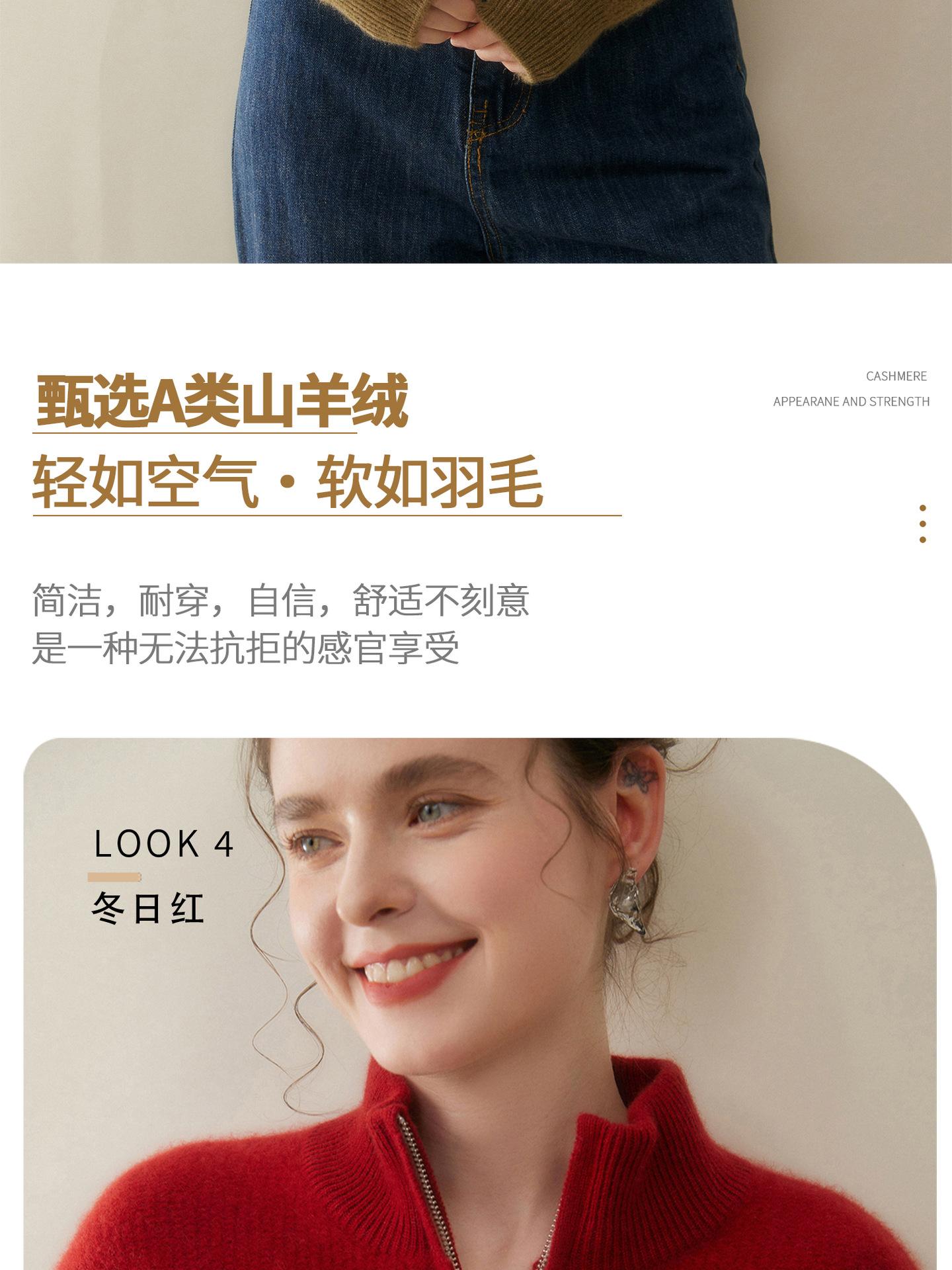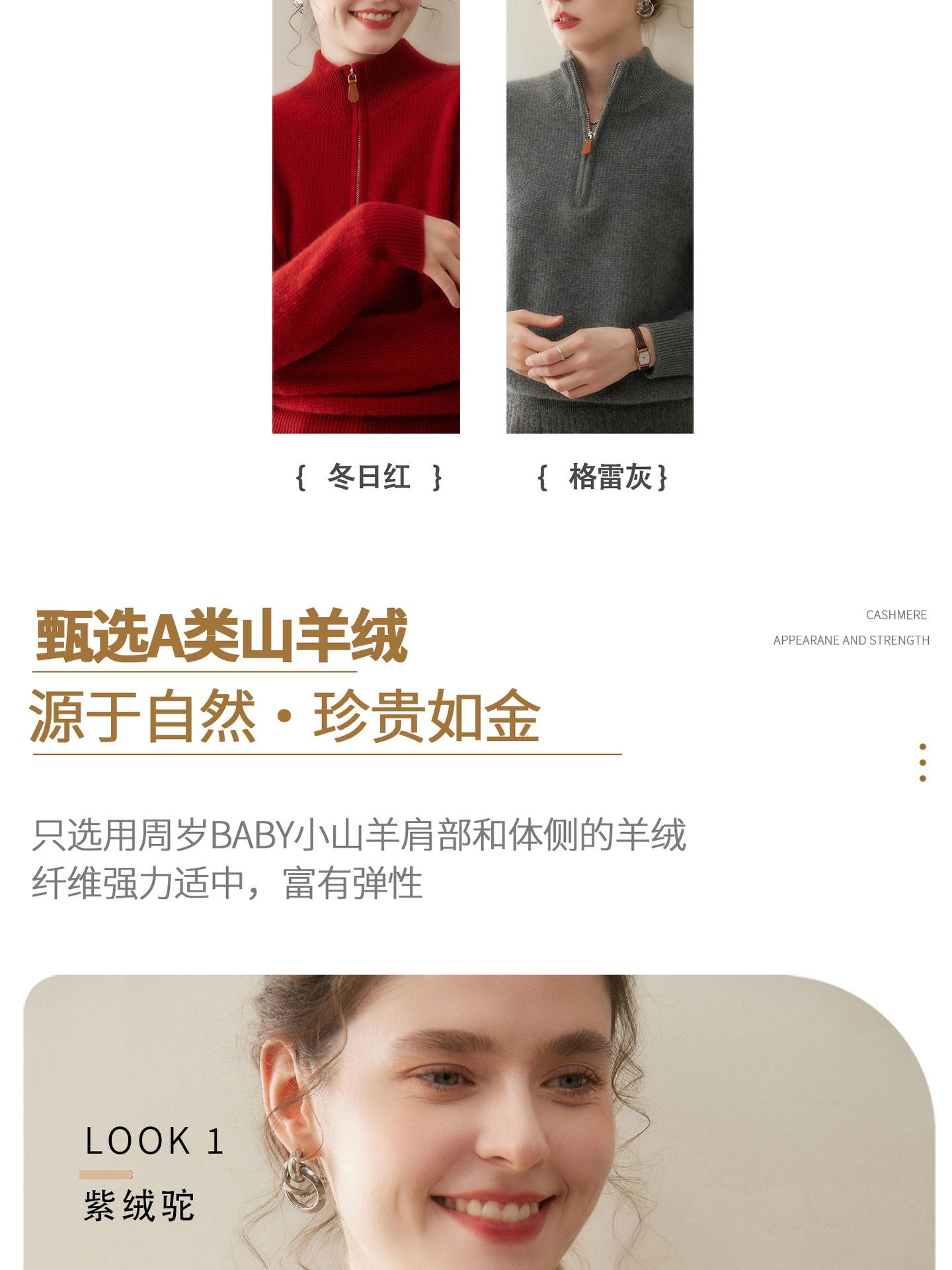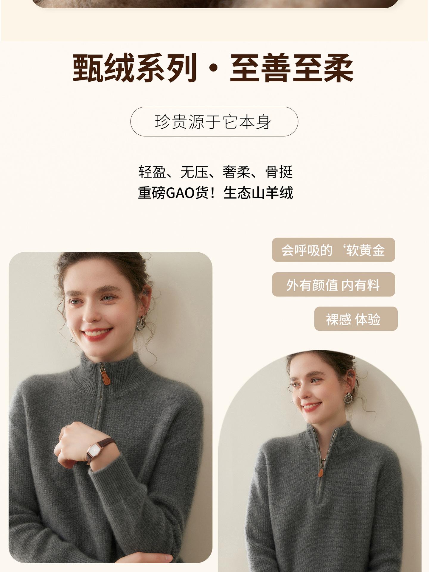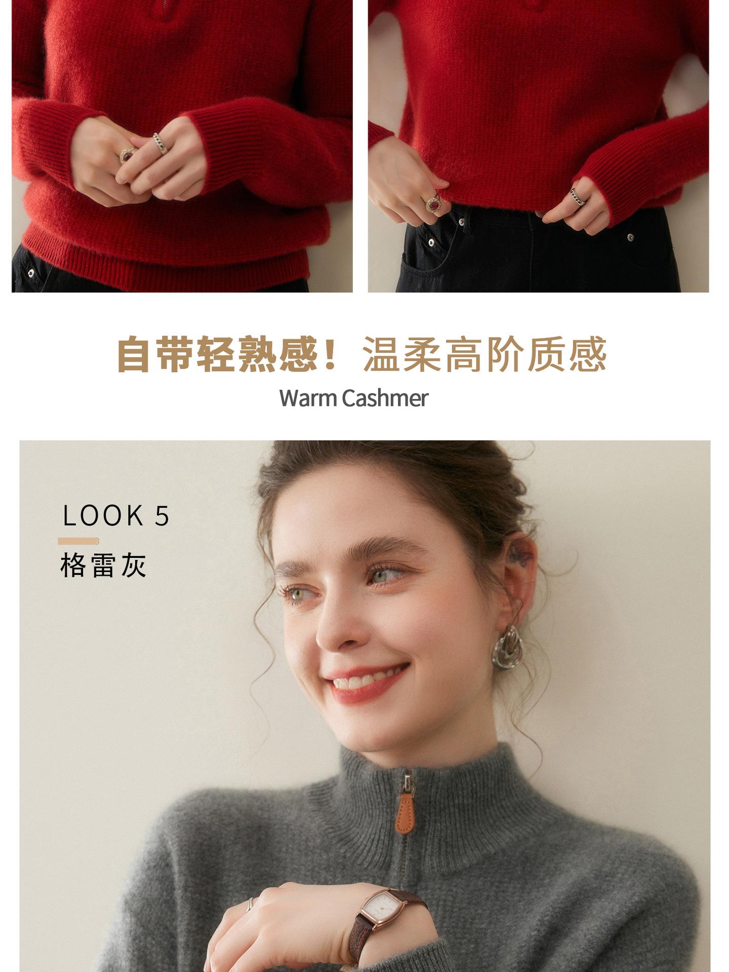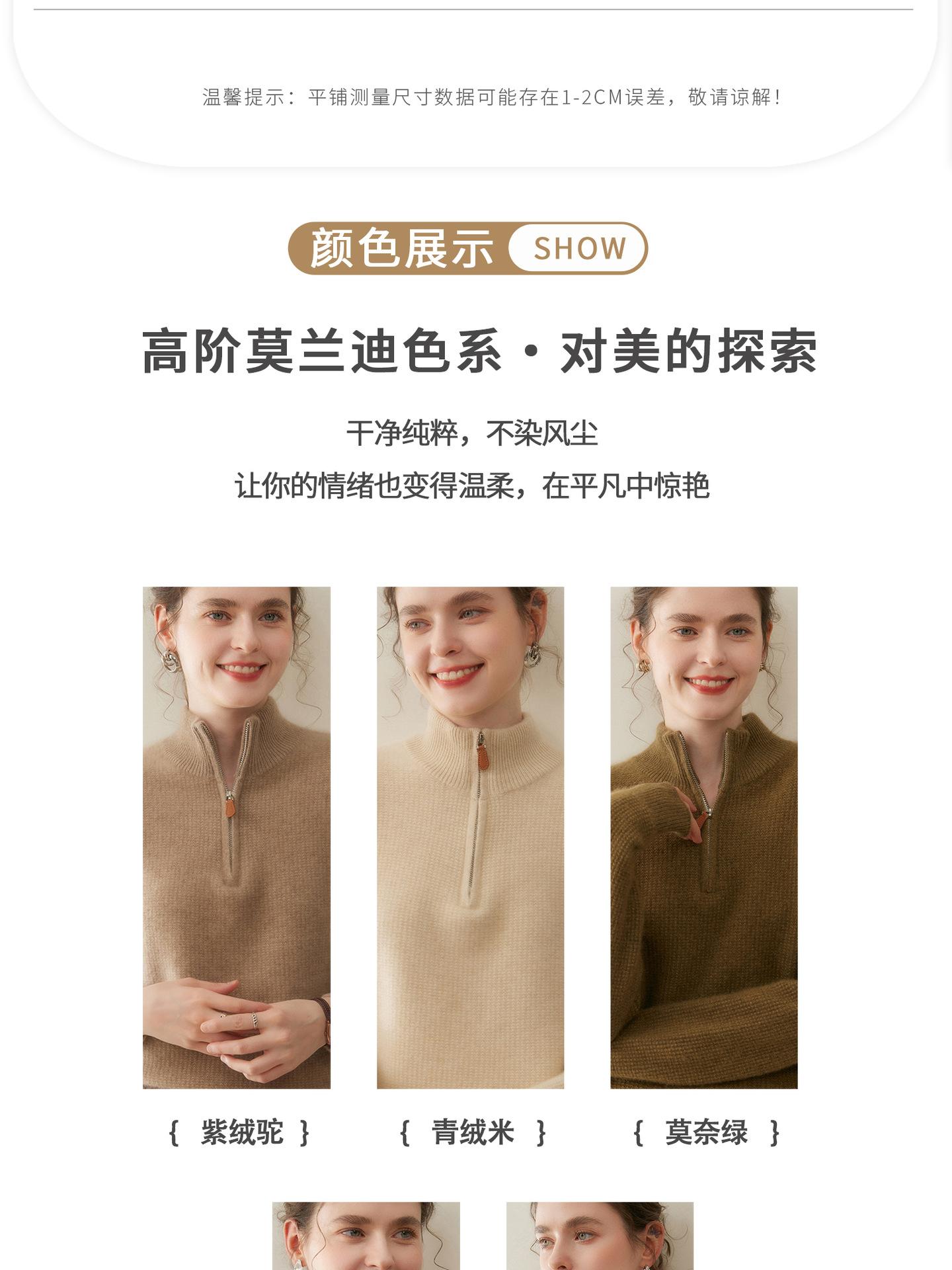 Suéter de Cachemira de Media Cremallera para Mujer Otoño 2025 Nuevo Cuello Alto Grueso Suelto Jersey de Punto Venta al por Mayor