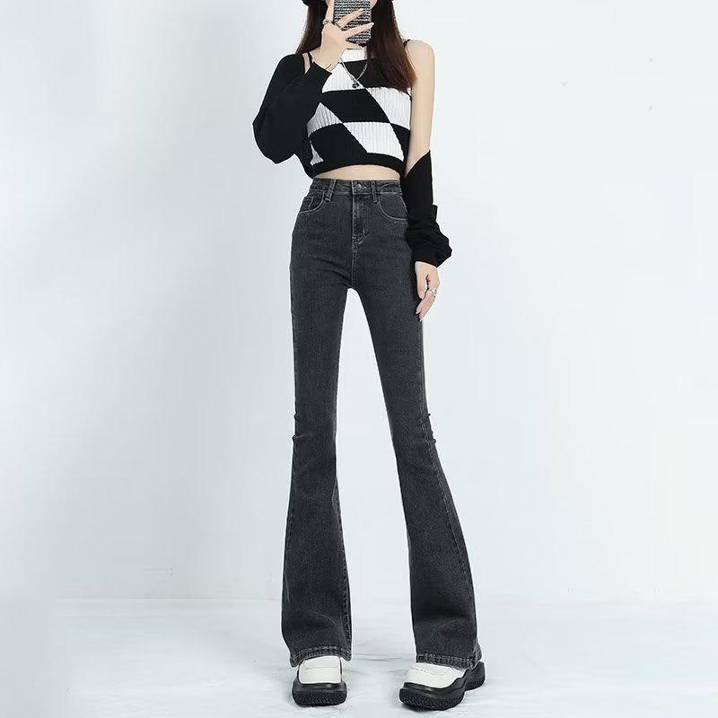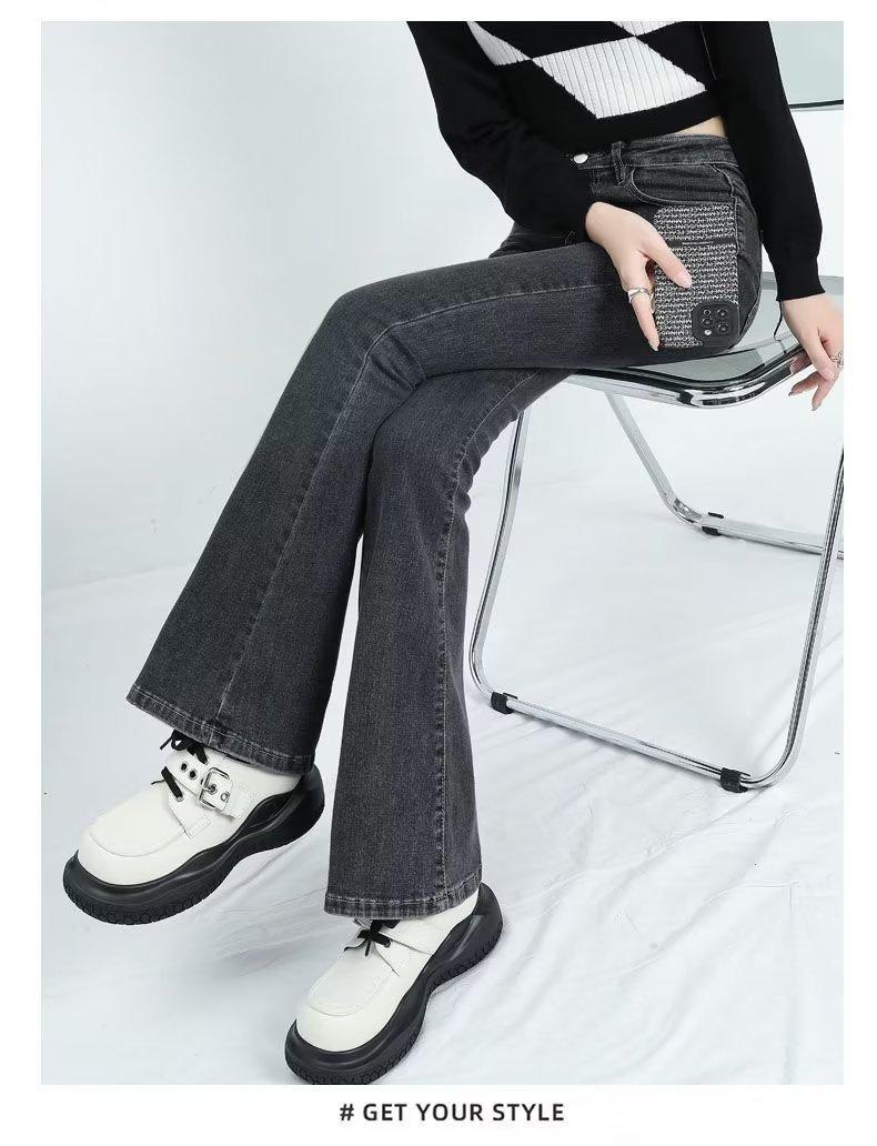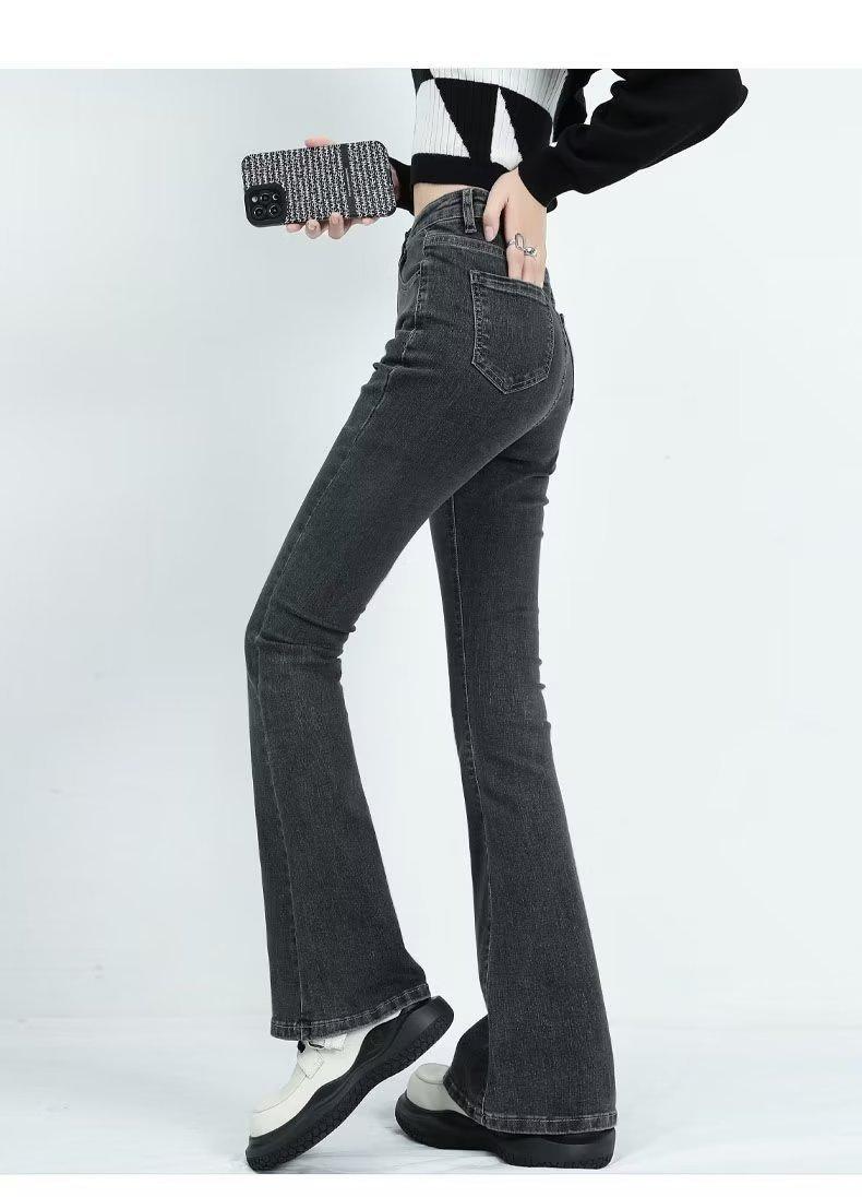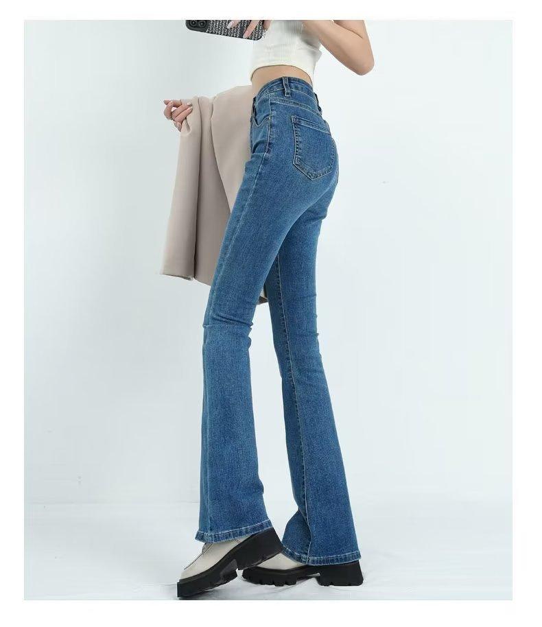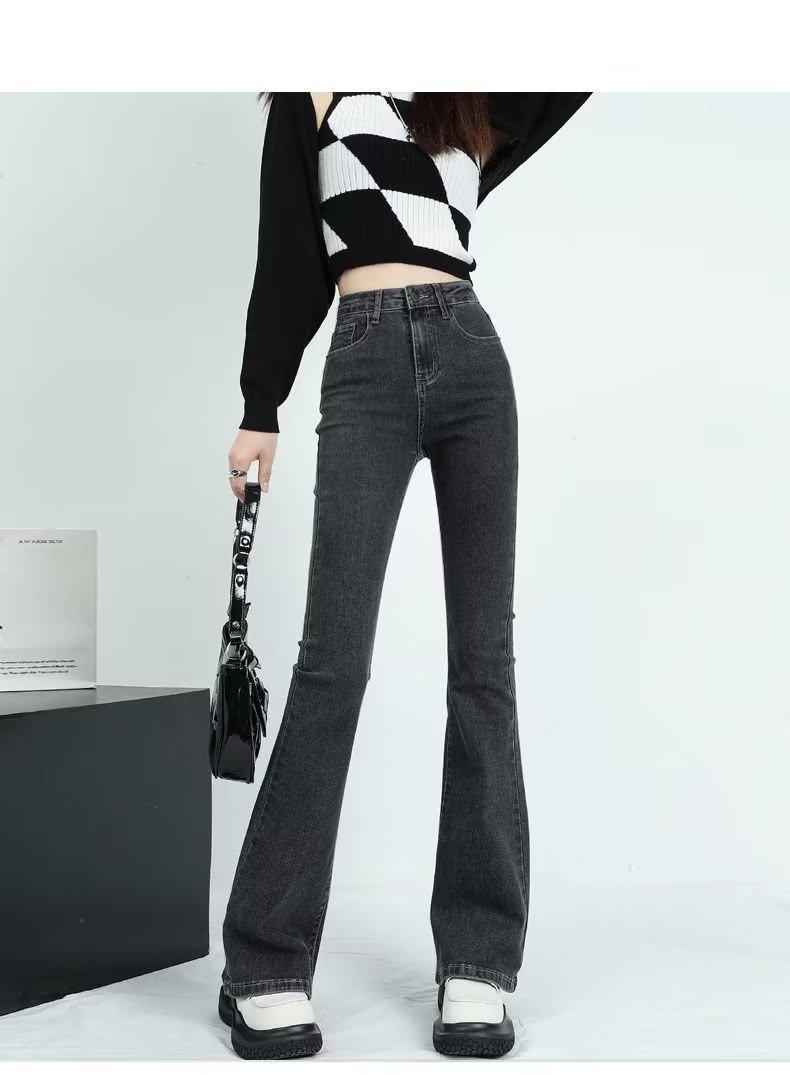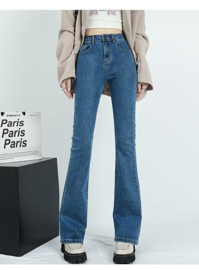 Jeans Micro-acampanados de Cintura Alta Color Claro para Mujer Otoño 2024 Nuevo Ajustado Elástico Ins Estilo Coreano Estilo Chica Caliente Micro-trompeta
