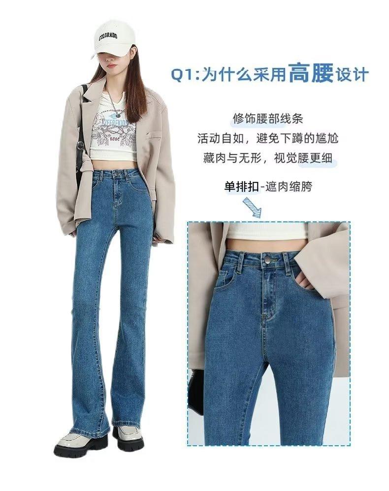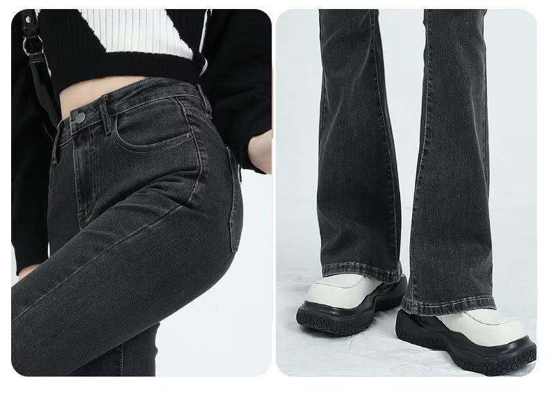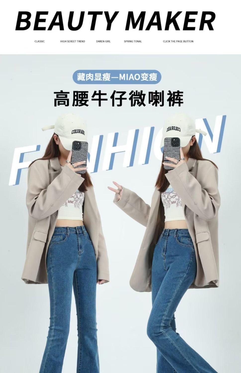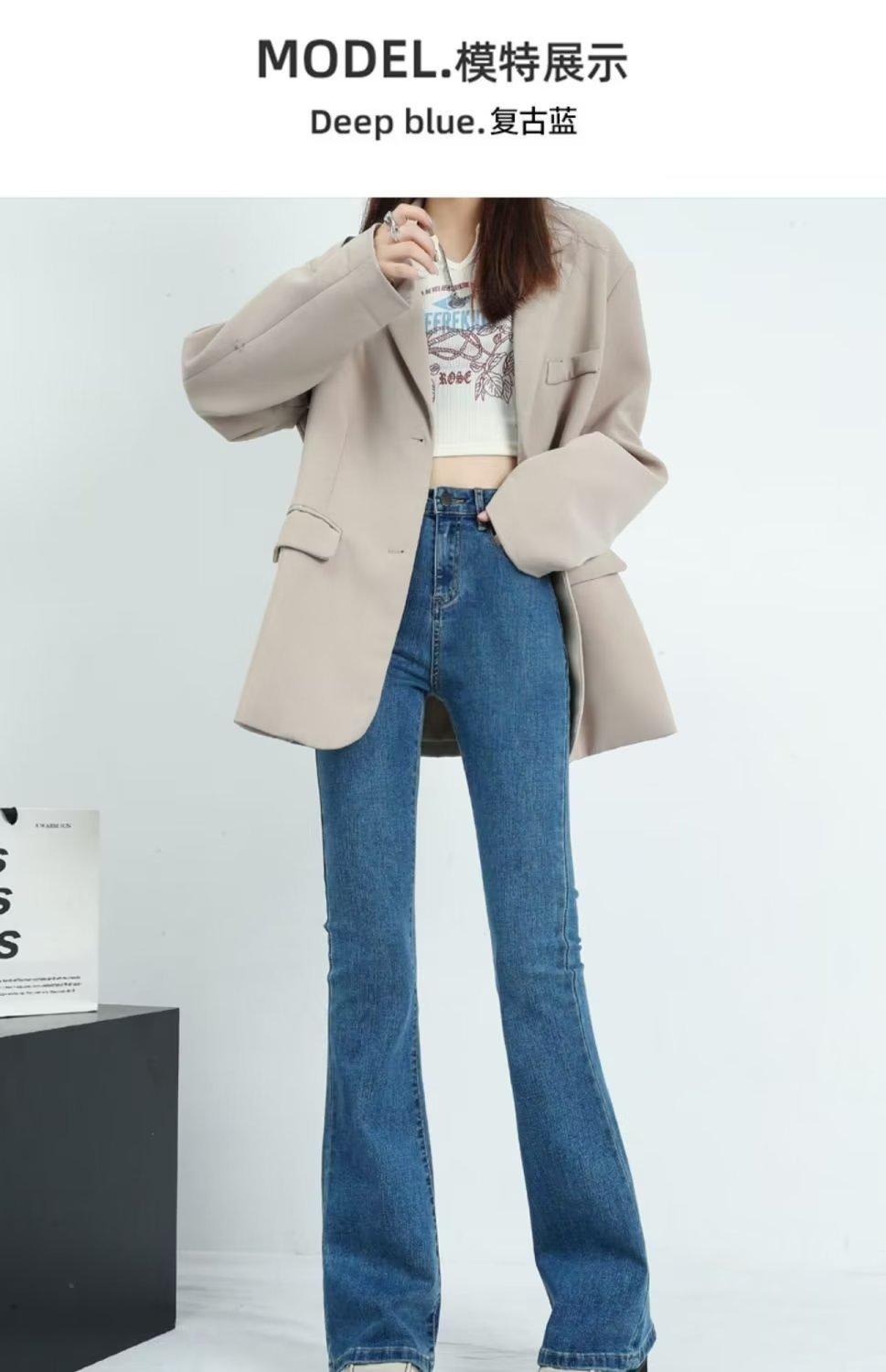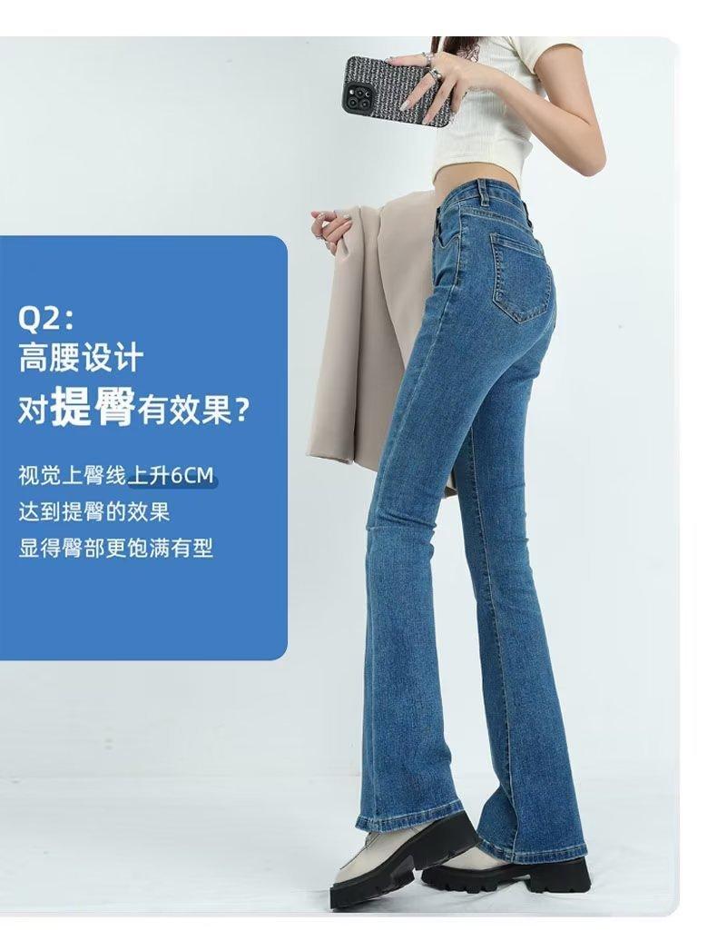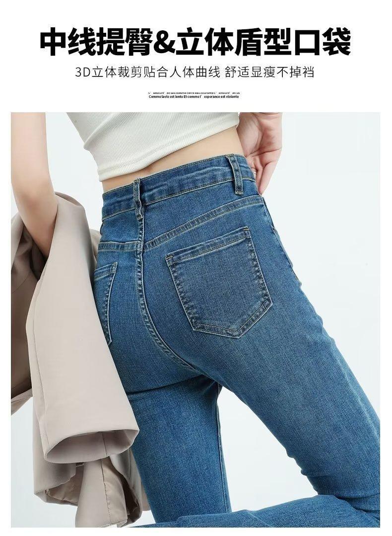Jeans Micro-acampanados de Cintura Alta Color Claro para Mujer Otoño 2024 Nuevo Ajustado Elástico Ins Estilo Coreano Estilo Chica Caliente Micro-trompeta