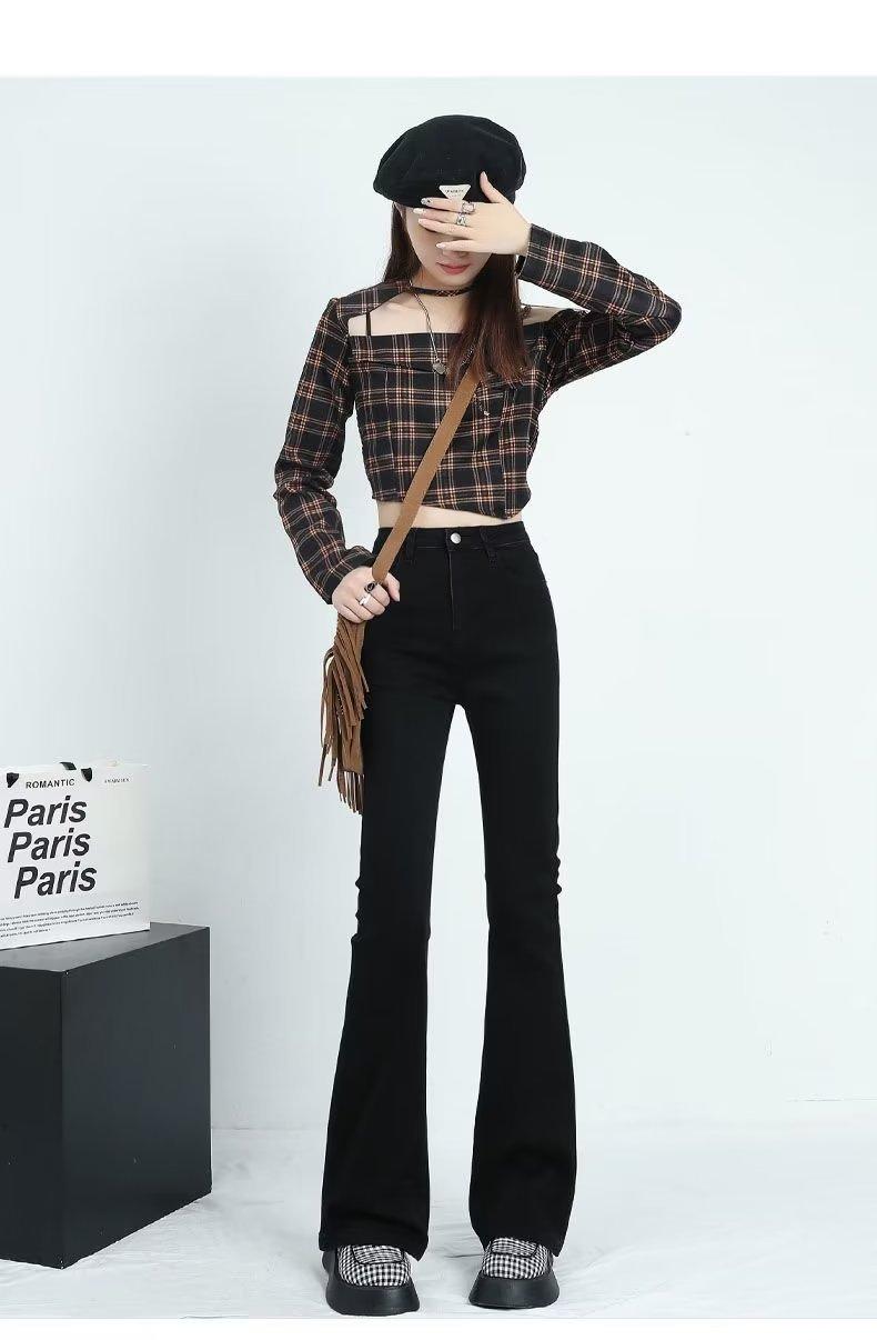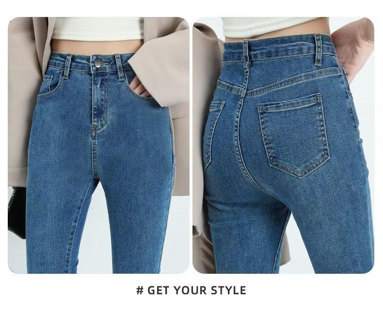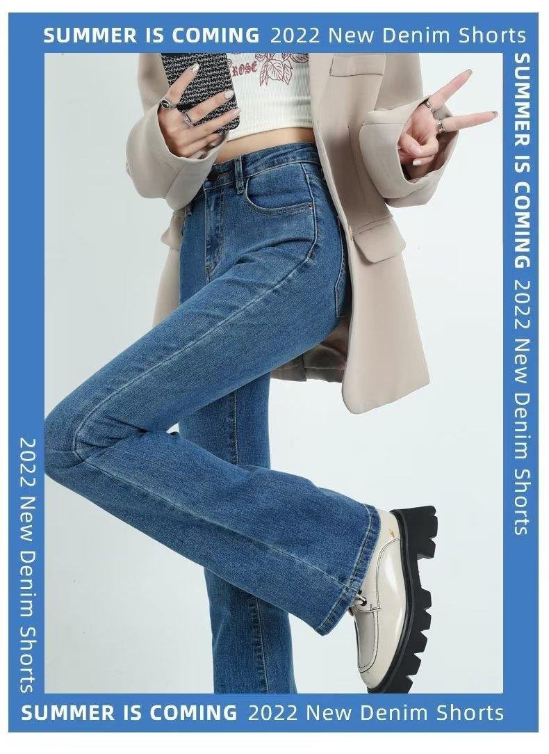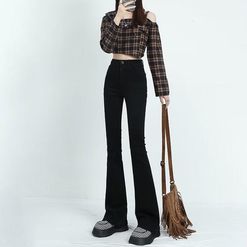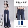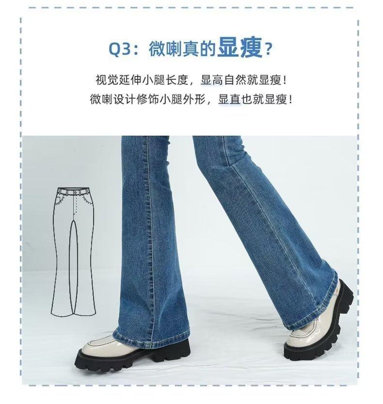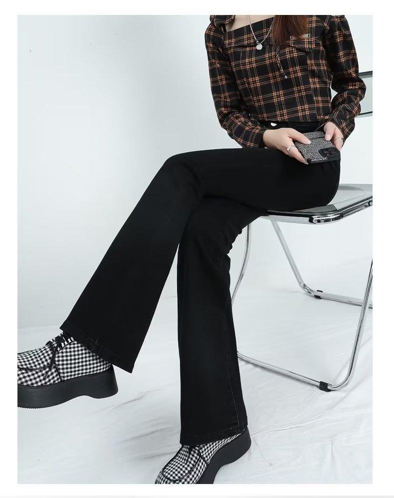 Jeans Micro-acampanados de Cintura Alta Color Claro para Mujer Otoño 2024 Nuevo Ajustado Elástico Ins Estilo Coreano Estilo Chica Caliente Micro-trompeta