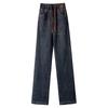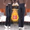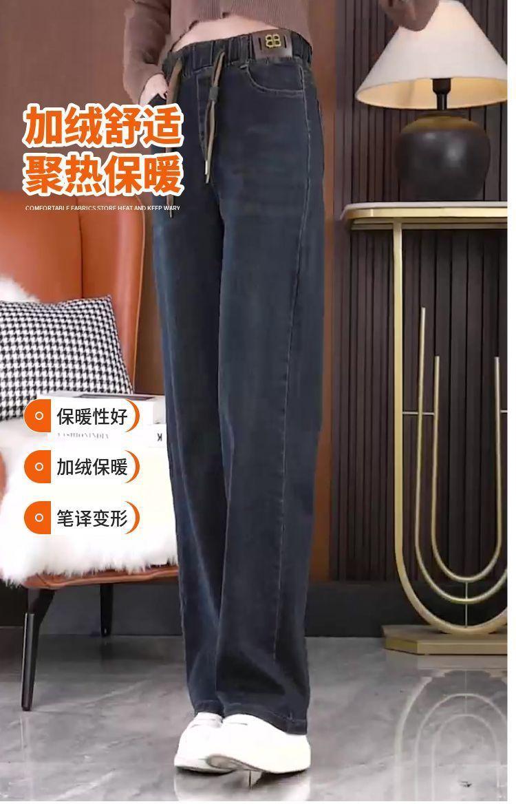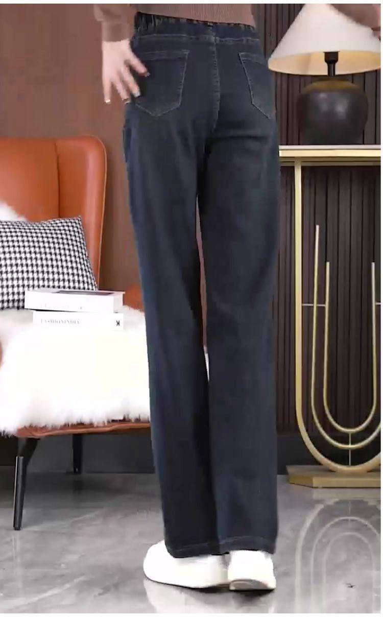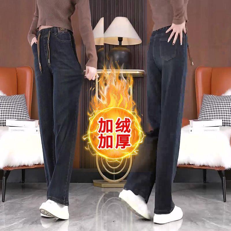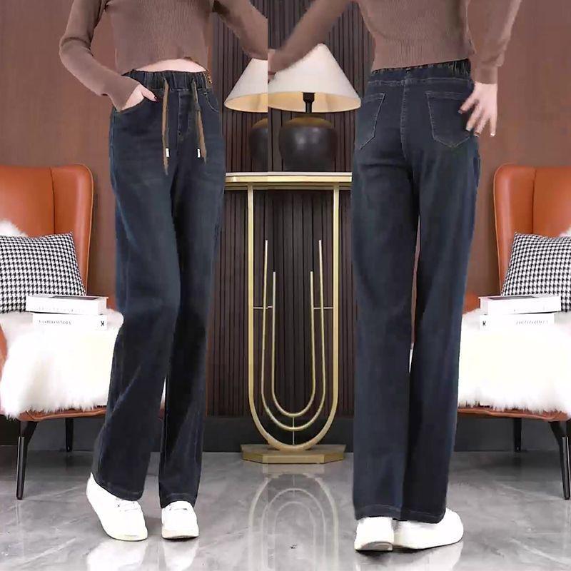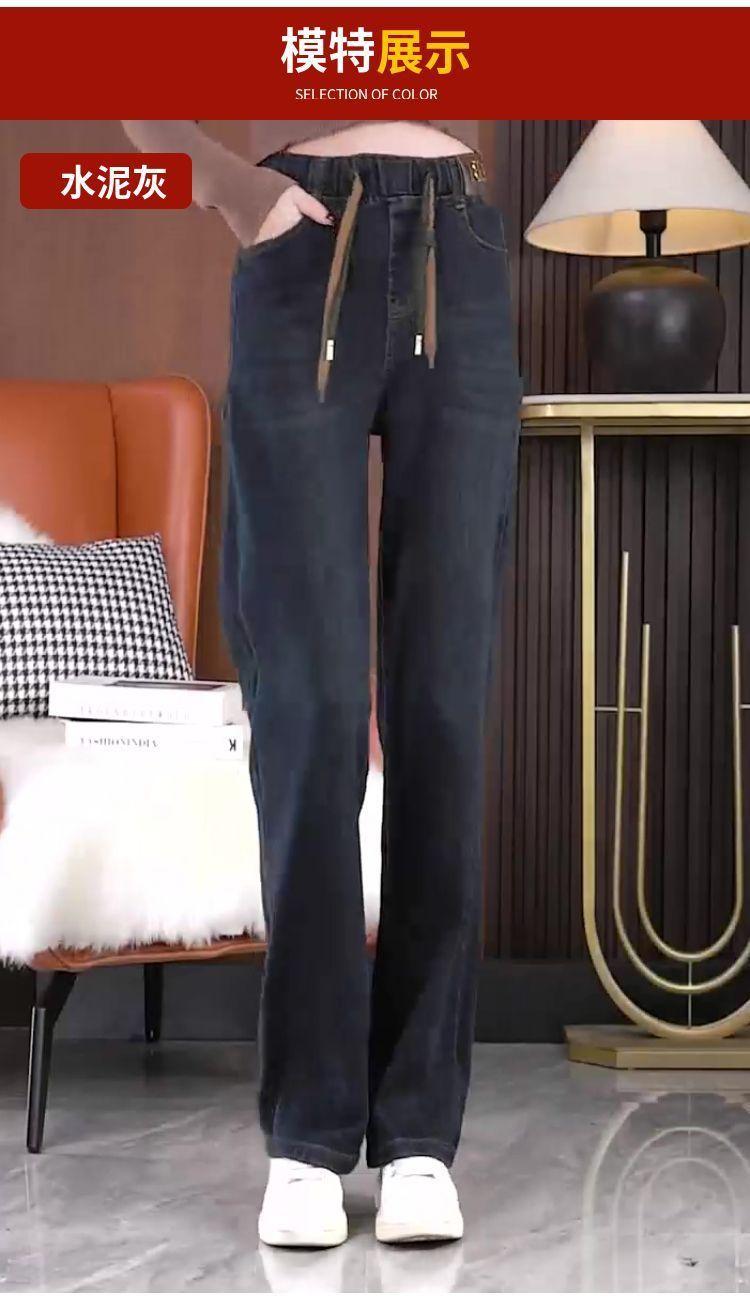 Jeans de mujer gris cemento con forro polar, cintura elástica, corte ajustado, 2025 nuevos, elásticos, de cintura alta, holgados, adelgazantes, de pierna recta, pantalones largos
