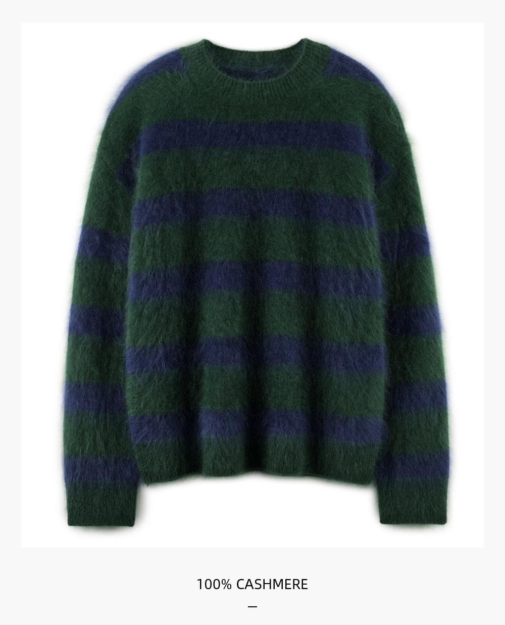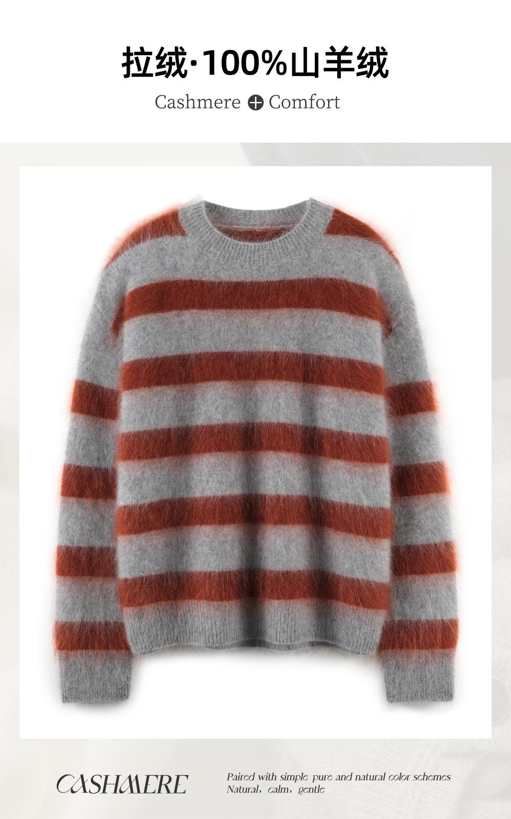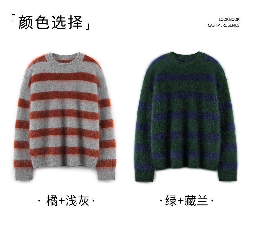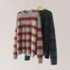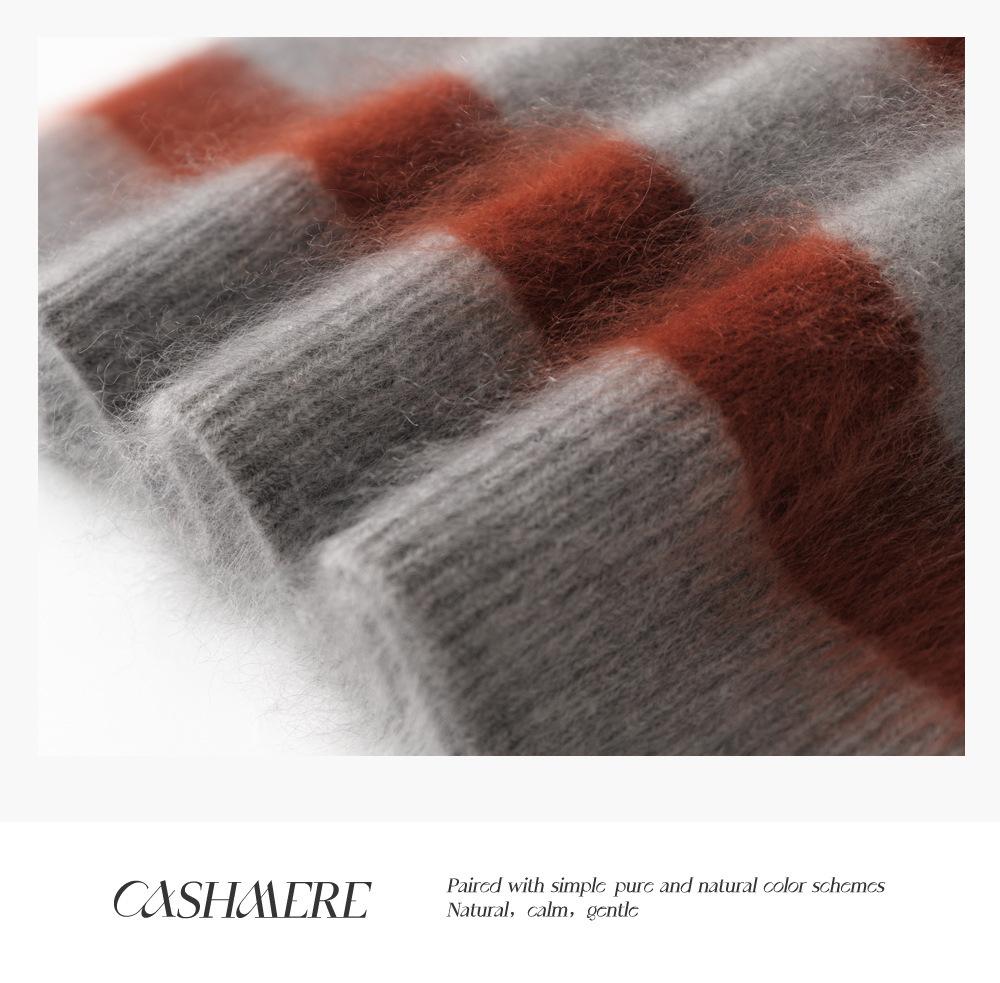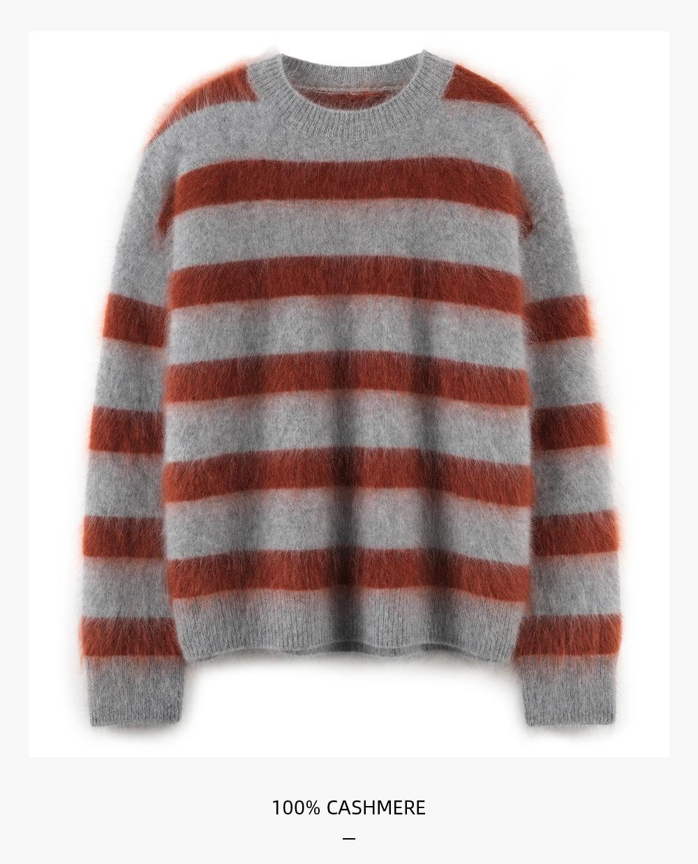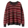 Tejido de Cachemira Puro Casual Versátil Suéter Holgado Bloque de Color Suéter de Cachemira para Mujer Jersey Simple de Rayas Cuello Redondo