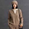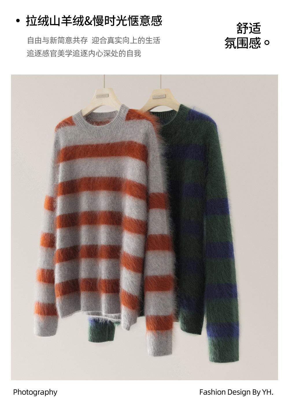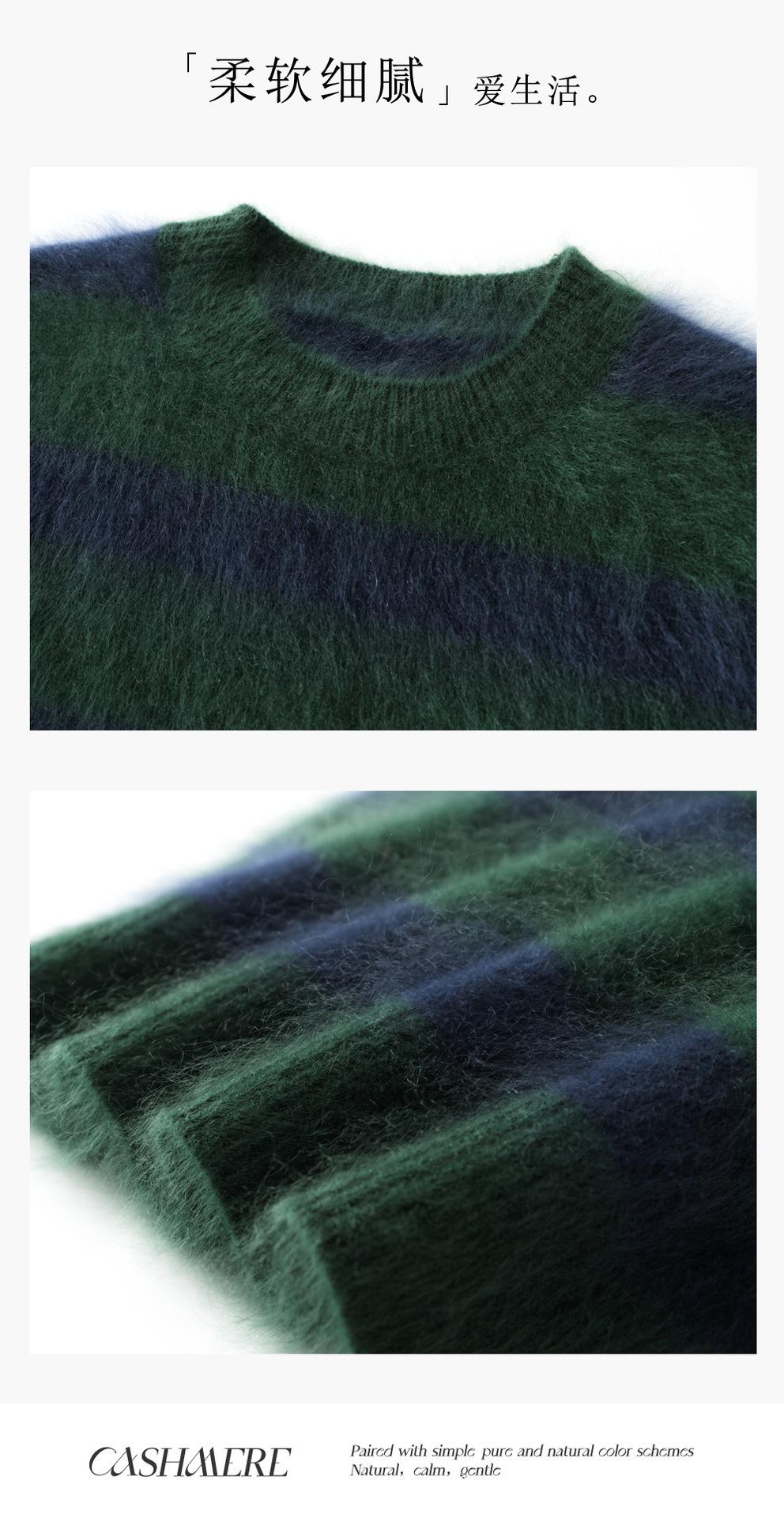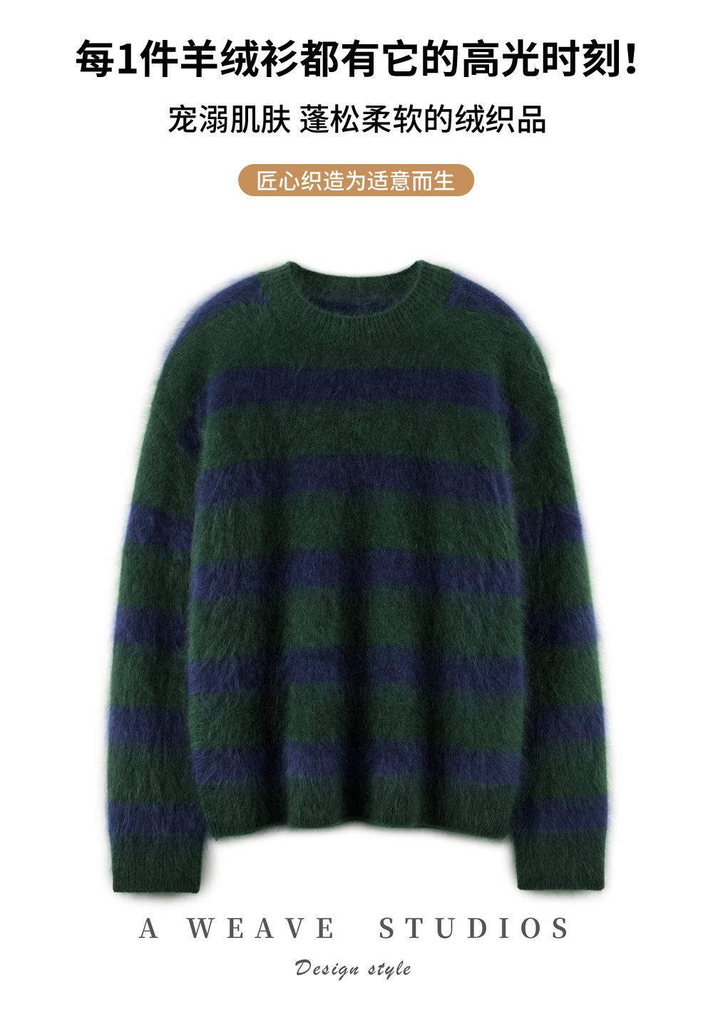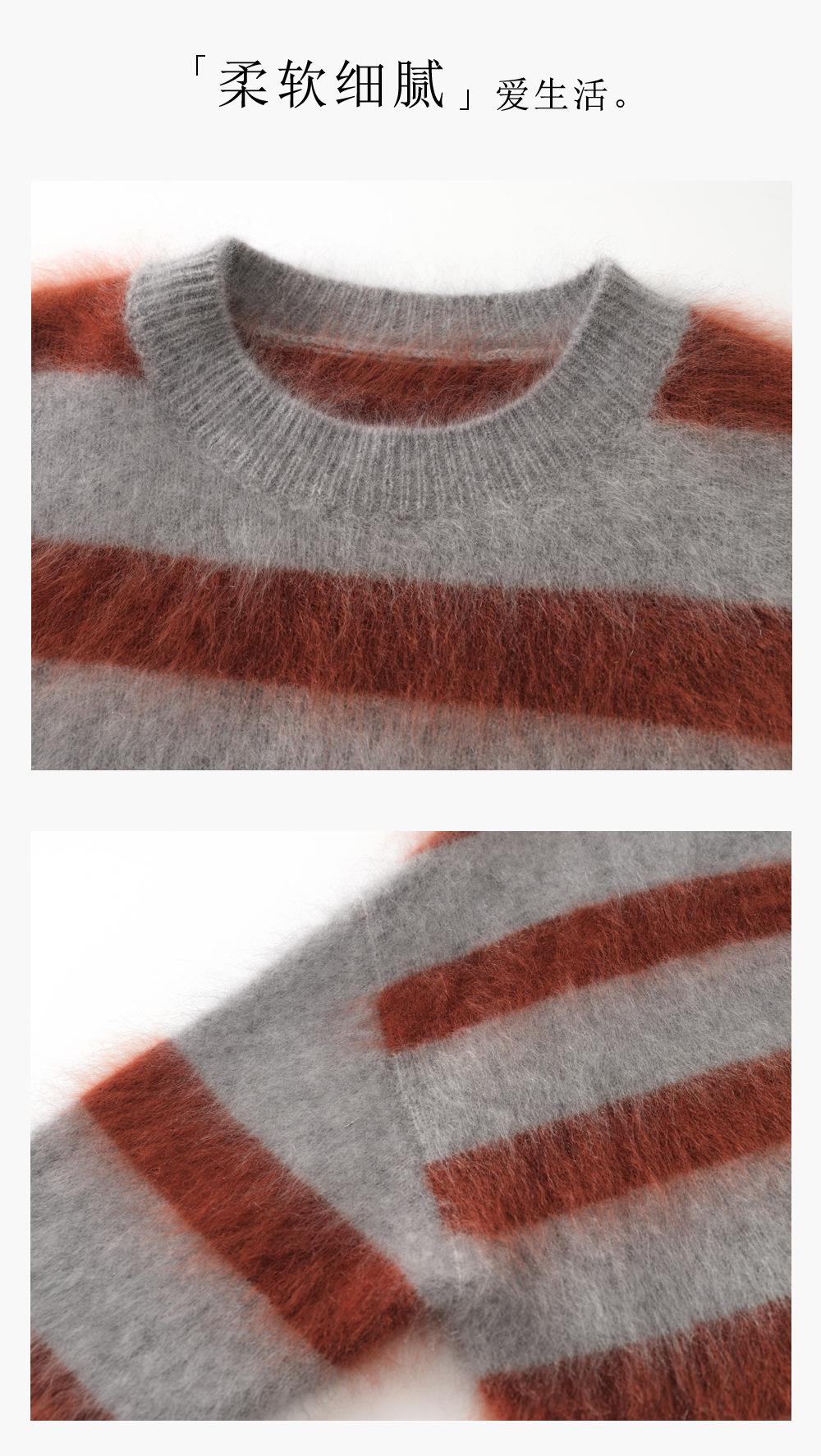 Tejido de Cachemira Puro Casual Versátil Suéter Holgado Bloque de Color Suéter de Cachemira para Mujer Jersey Simple de Rayas Cuello Redondo