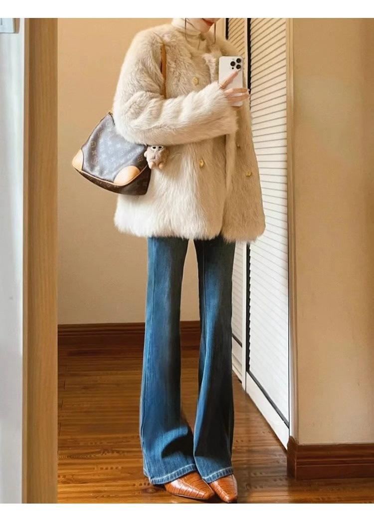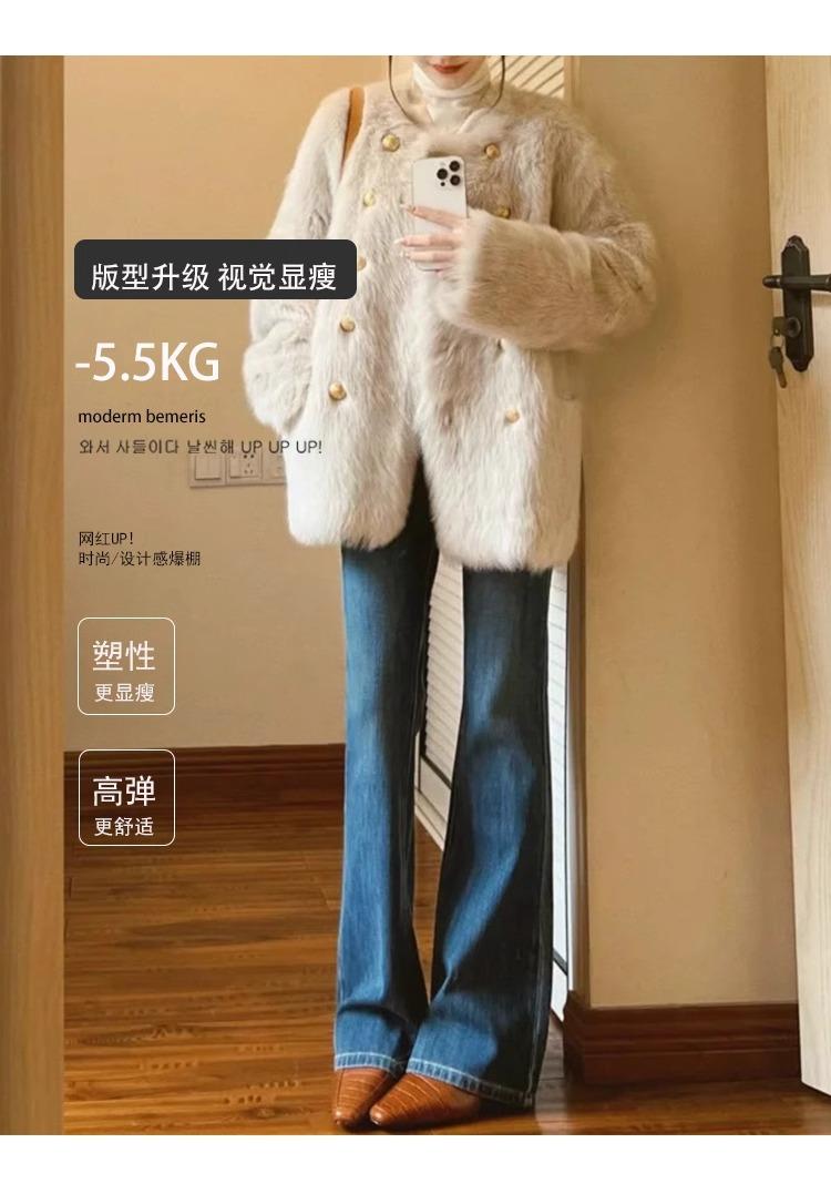 Jeans retro microacampanados mujer otoño 2025 nuevos elásticos de talle alto adelgazantes talla grande gordita mm pantalones acampanados de herradura
