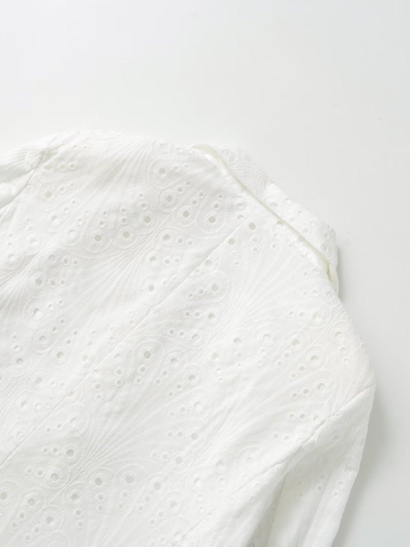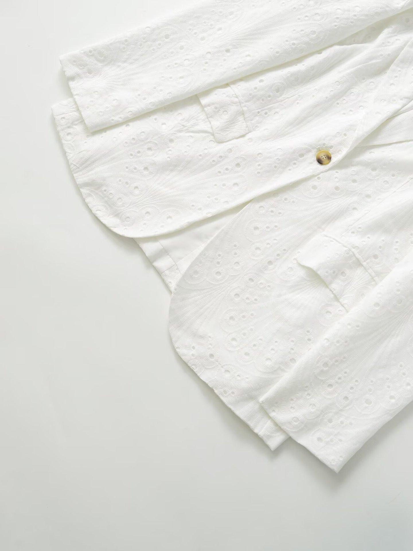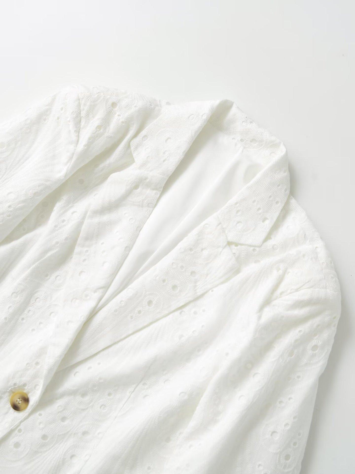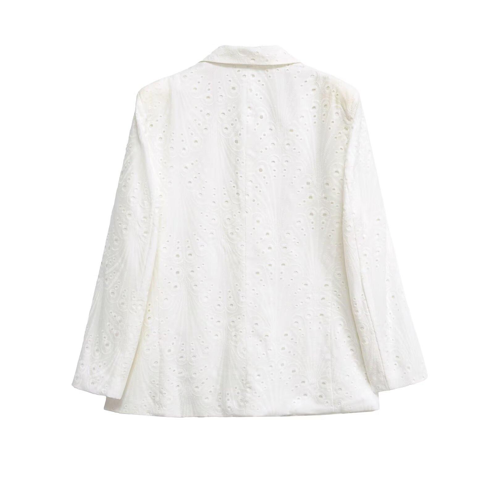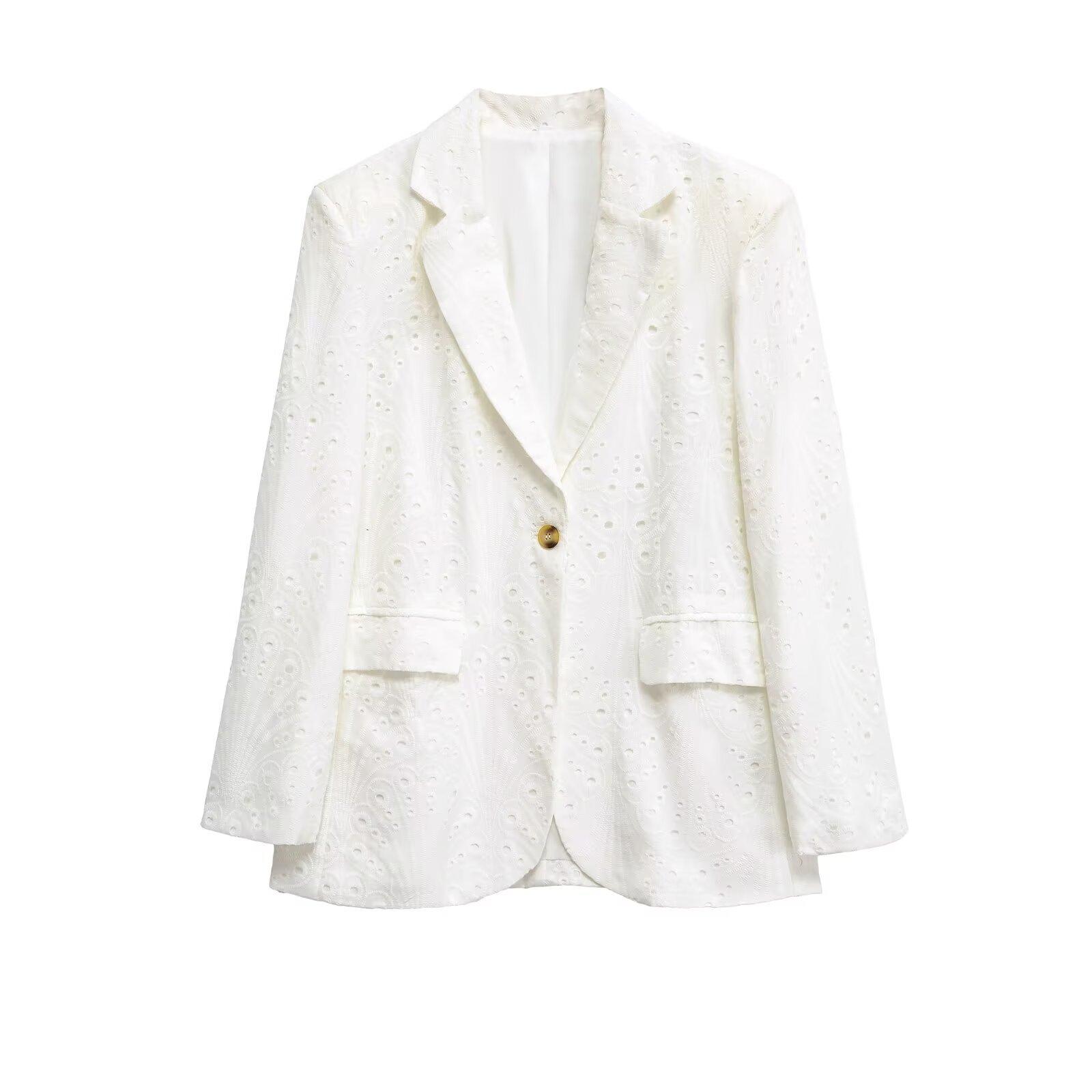 Ropa de Mujer Transfronteriza al por Mayor 2025 Otoño Nuevo Estilo Europeo y Americano Moda Casual Bordado Calado Abrigo de un Solo Botón