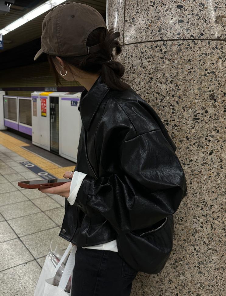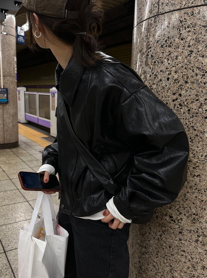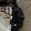 Estilo blogger INS temperamento coreano chaqueta abrigo de cuero PU corto para mujer suelta versátil chaqueta de motociclista top 89045