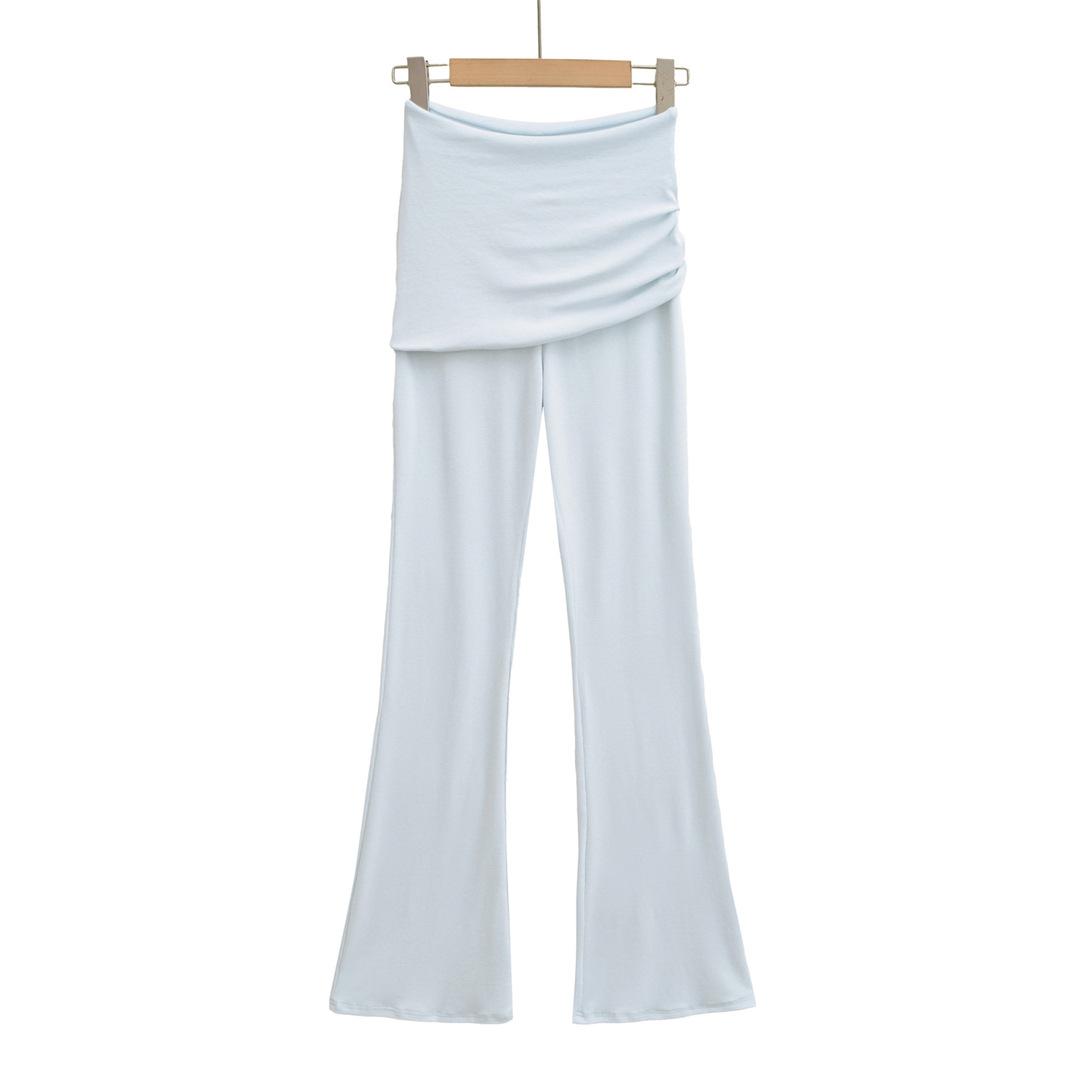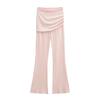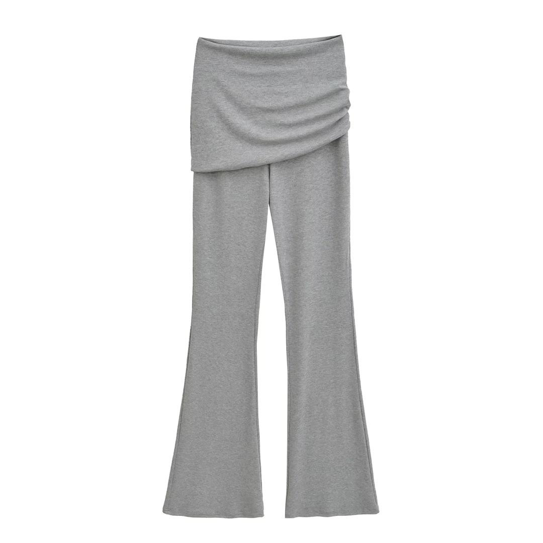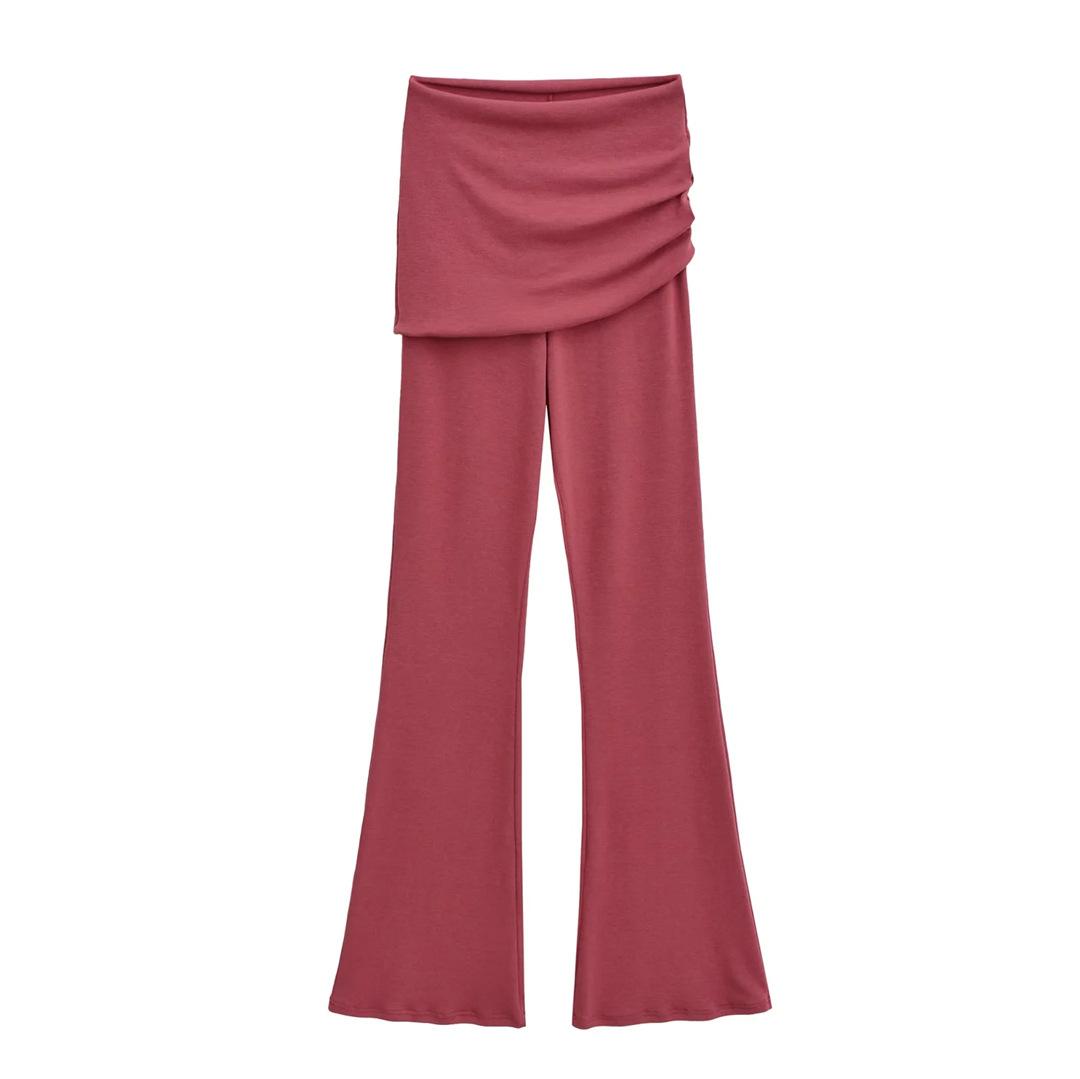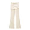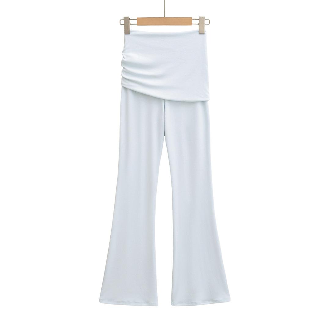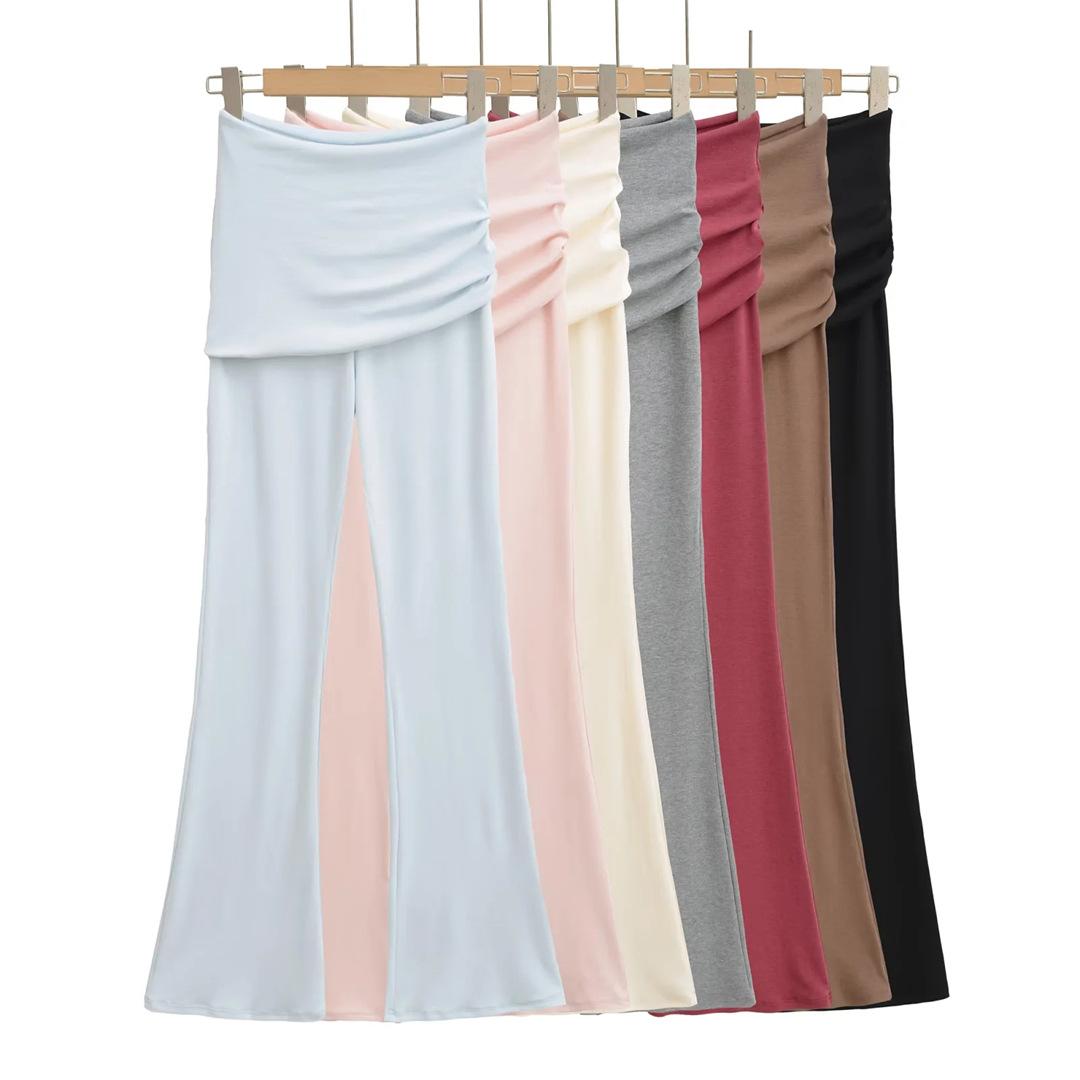 Americano Retro Deseo Puro Chica Caliente Cintura Baja Fruncido Elástico Ajustado Bodycon Pantalones Casuales Sexy Micro Acampanados Pantalones Largos Mujer Color Sólido