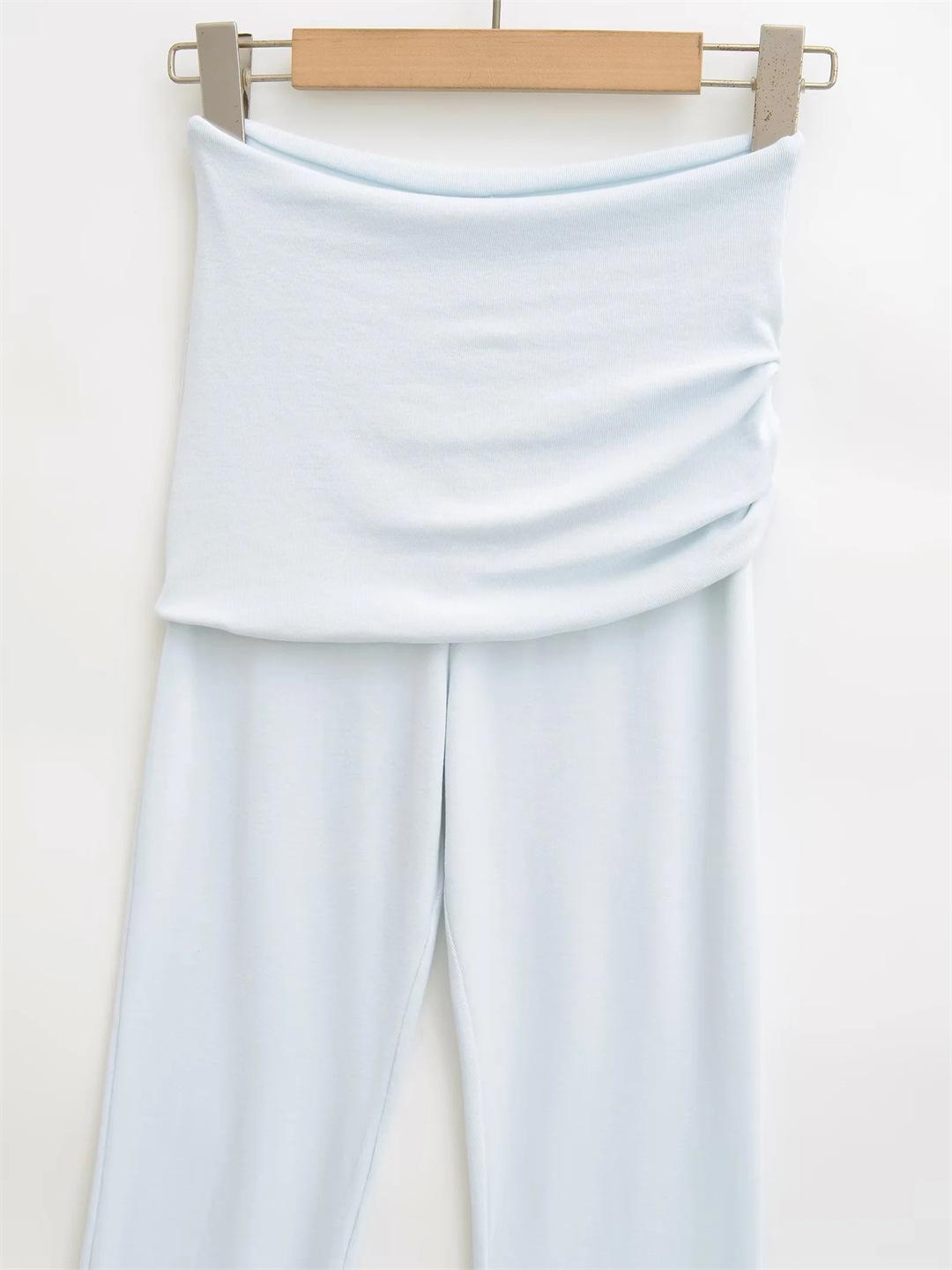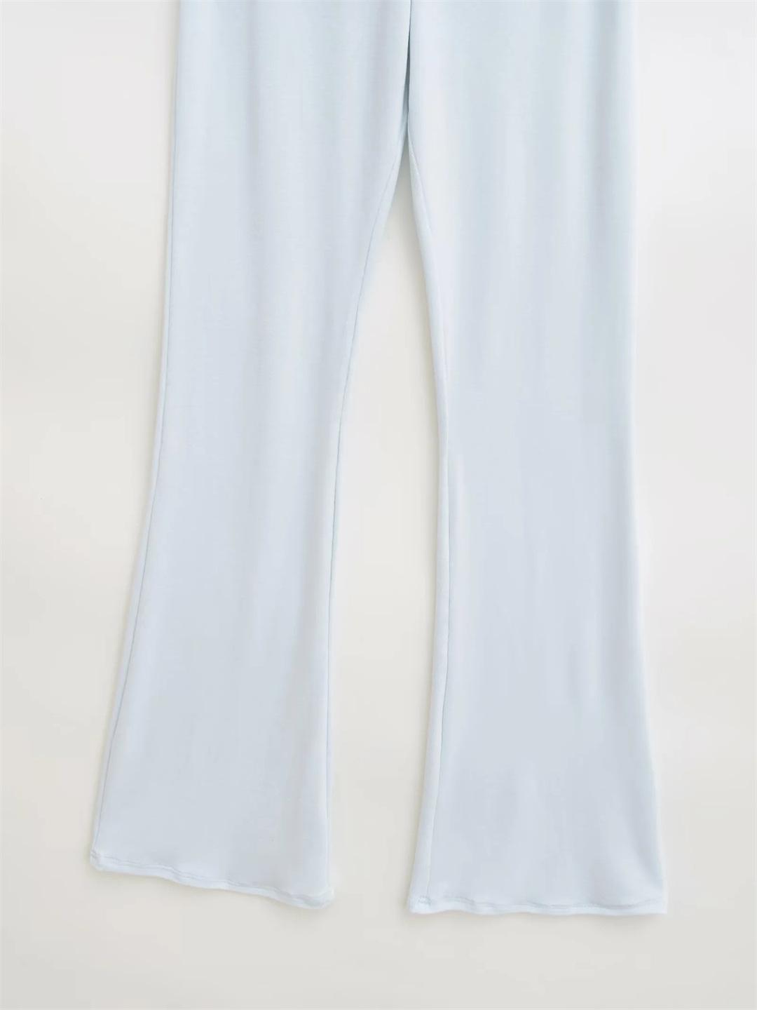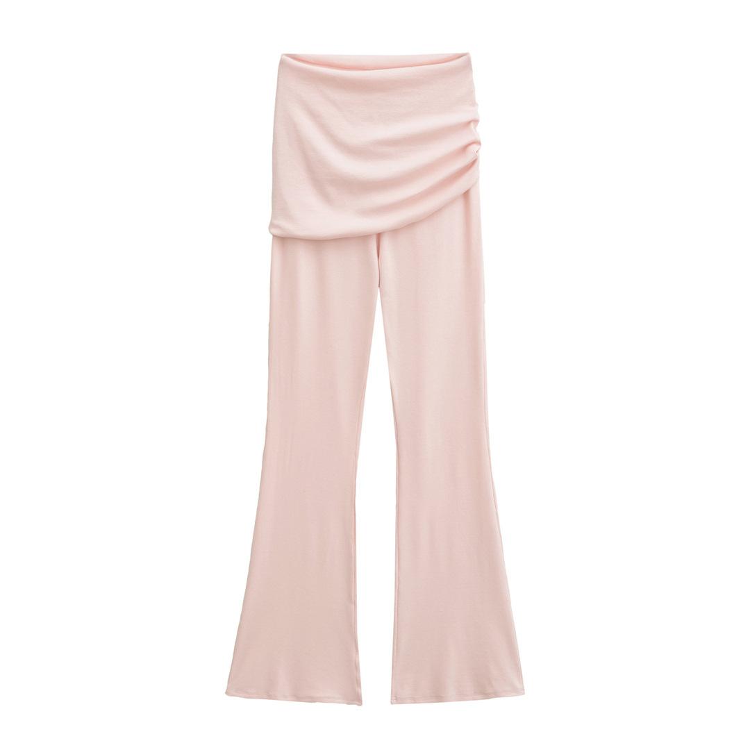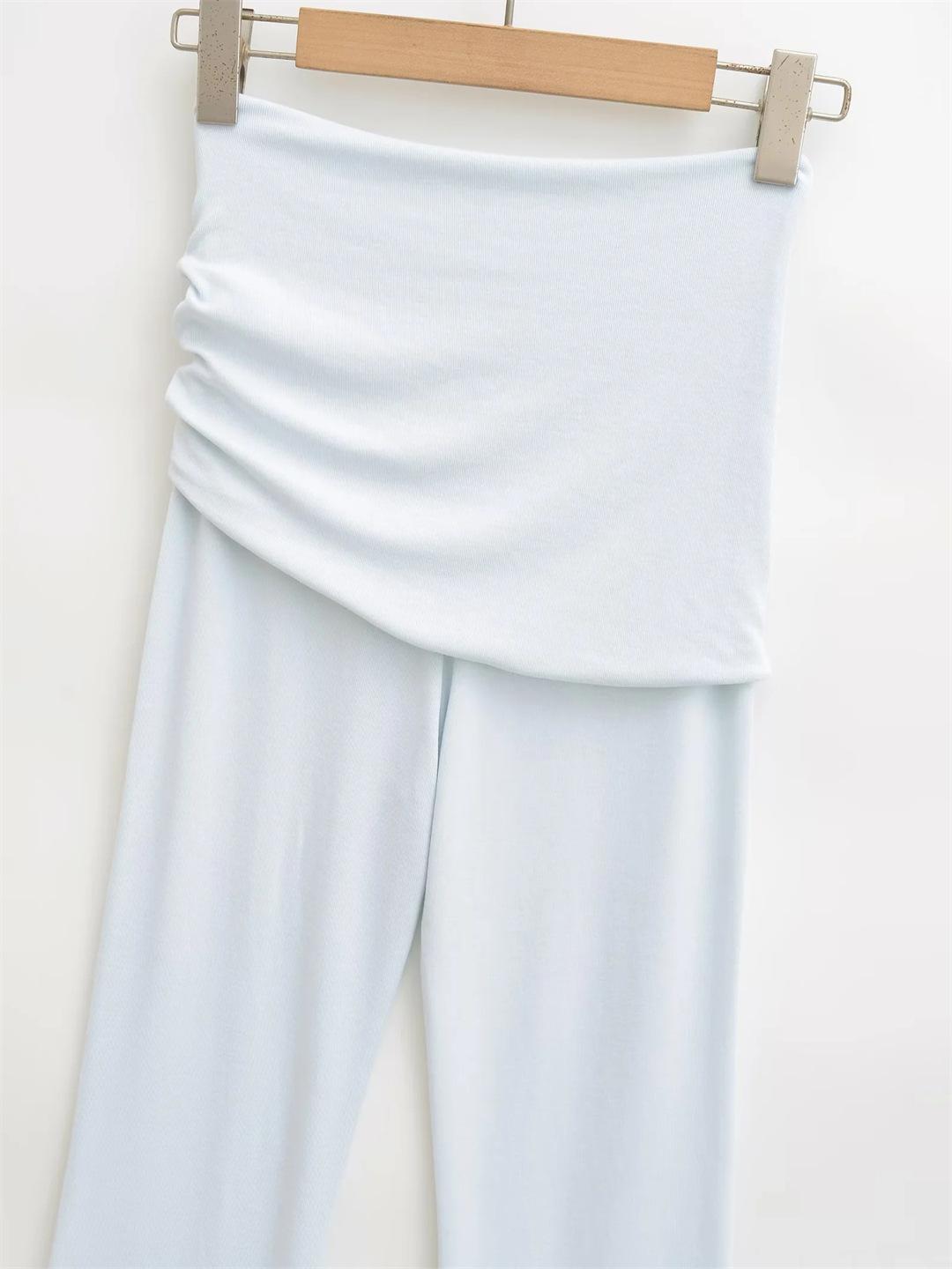 Americano Retro Deseo Puro Chica Caliente Cintura Baja Fruncido Elástico Ajustado Bodycon Pantalones Casuales Sexy Micro Acampanados Pantalones Largos Mujer Color Sólido