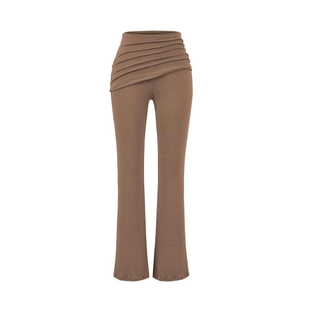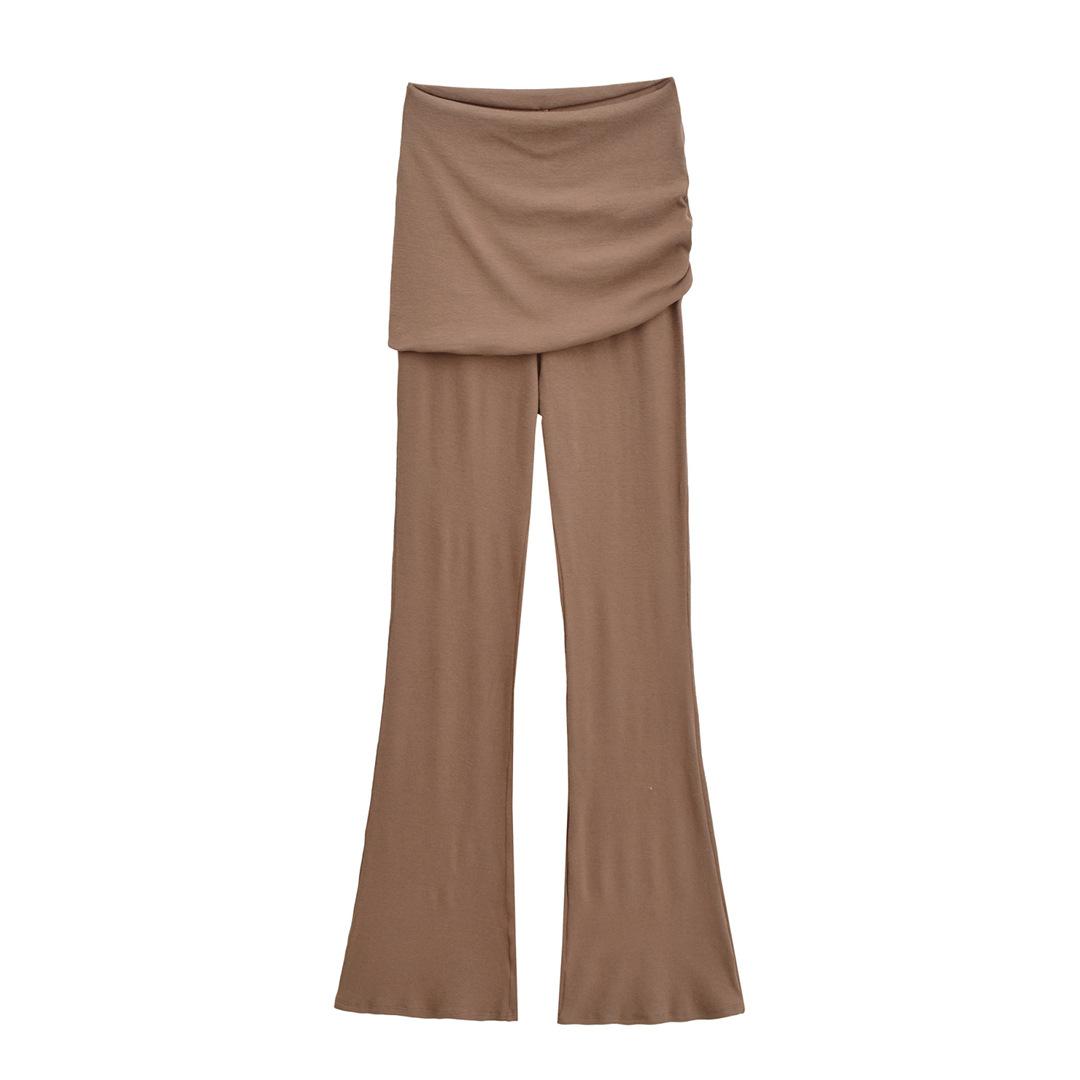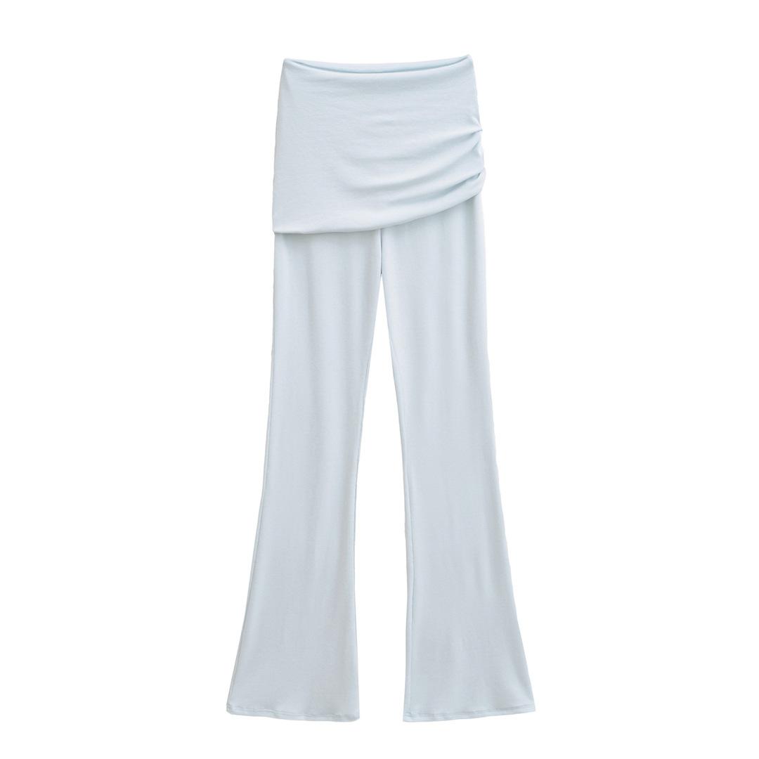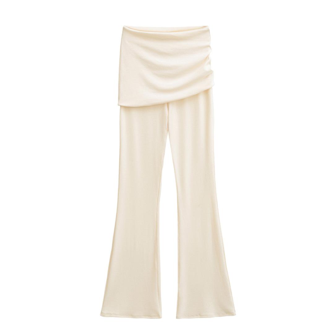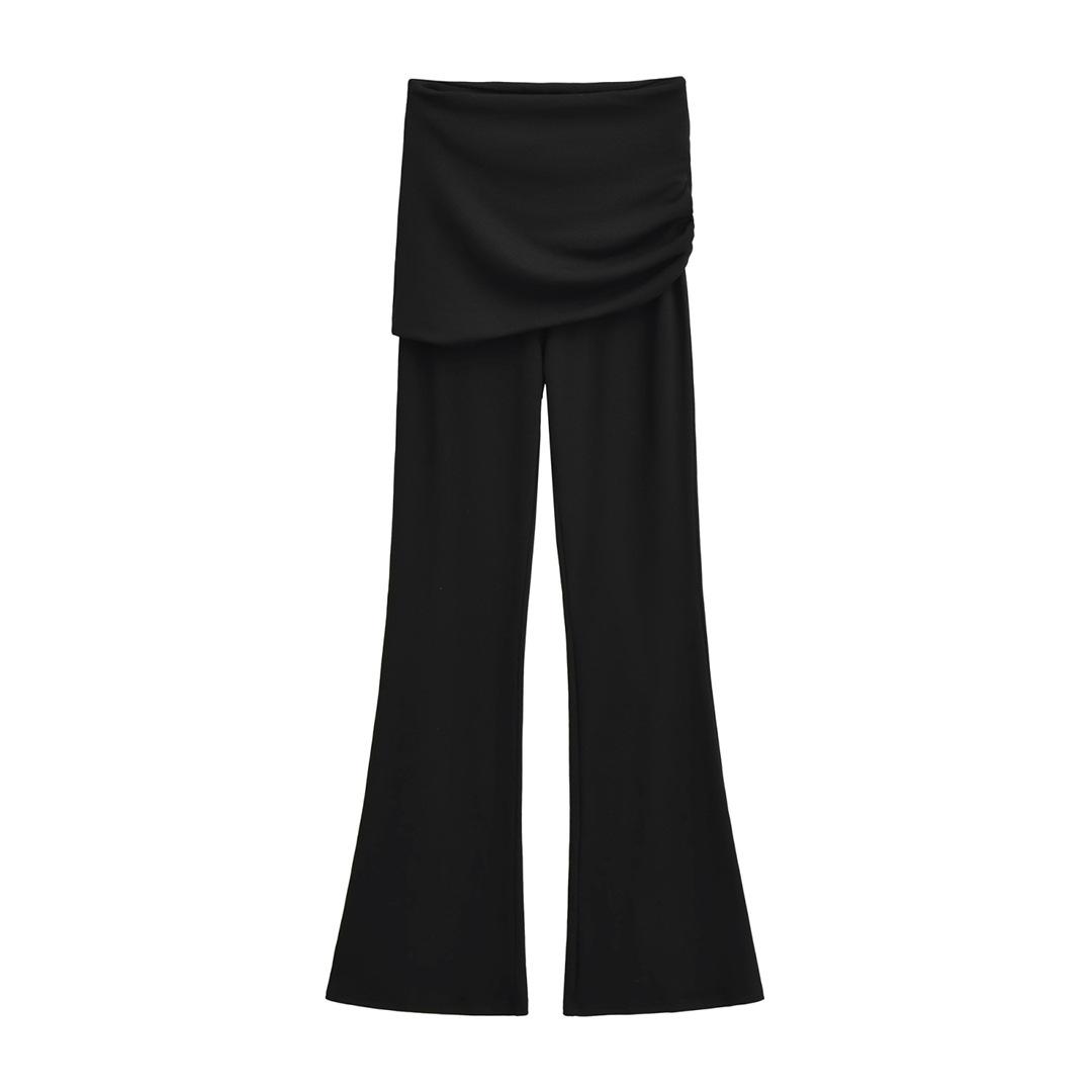 Americano Retro Deseo Puro Chica Caliente Cintura Baja Fruncido Elástico Ajustado Bodycon Pantalones Casuales Sexy Micro Acampanados Pantalones Largos Mujer Color Sólido